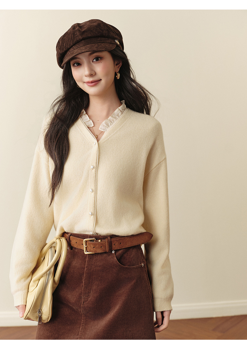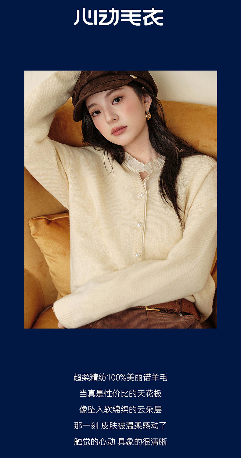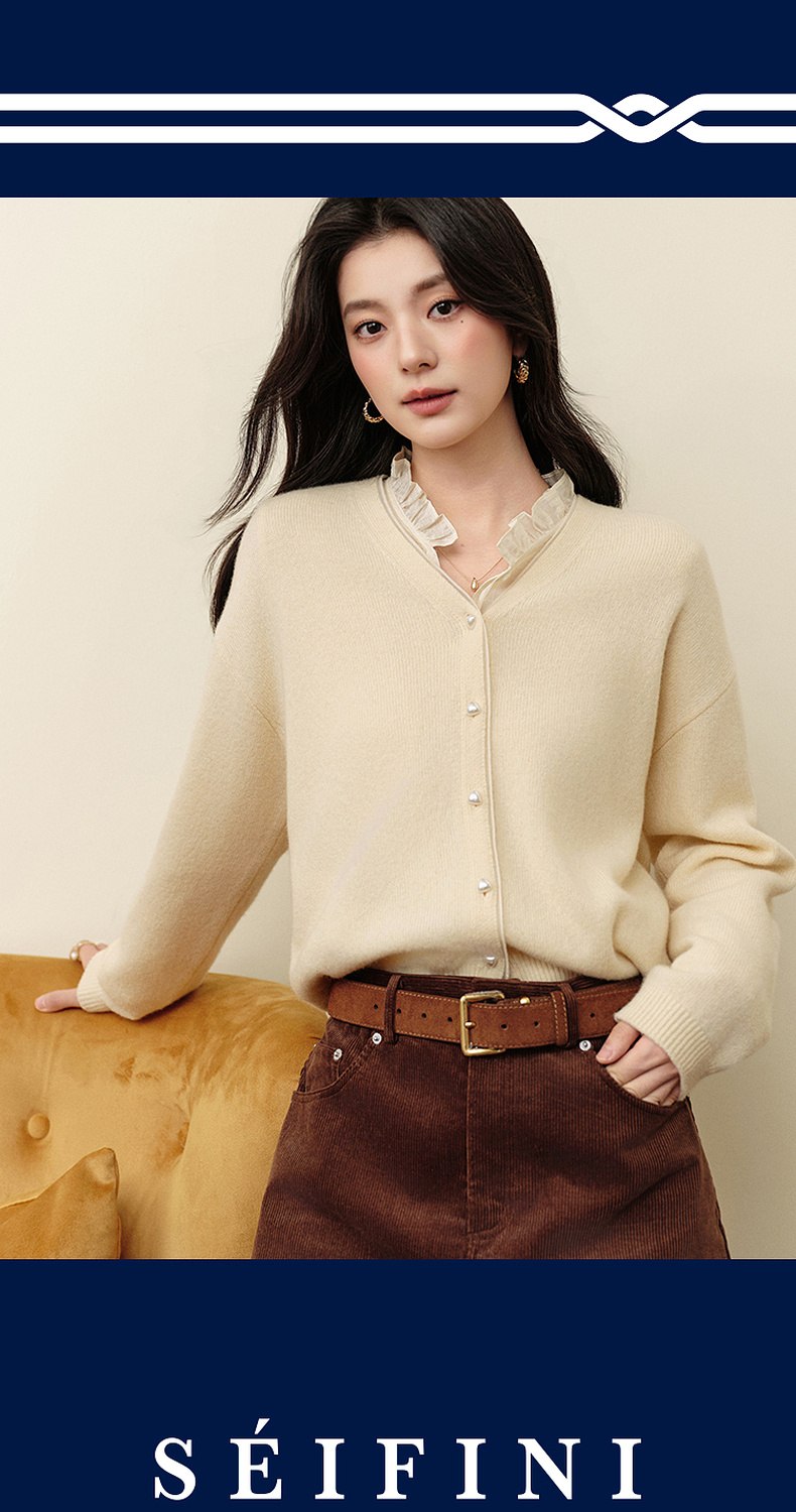 【严选】诗凡黎绵羊毛绞花针织开衫2025秋新款老钱风软糯休闲百搭毛衣外套7G8132031