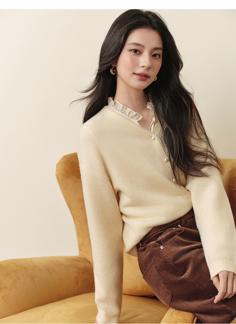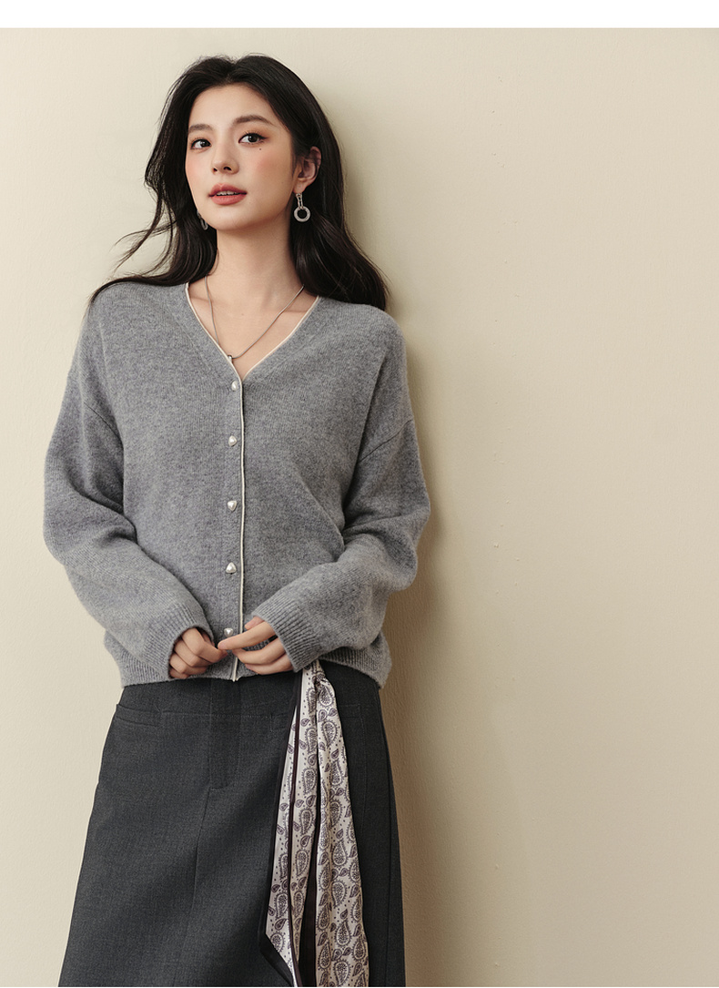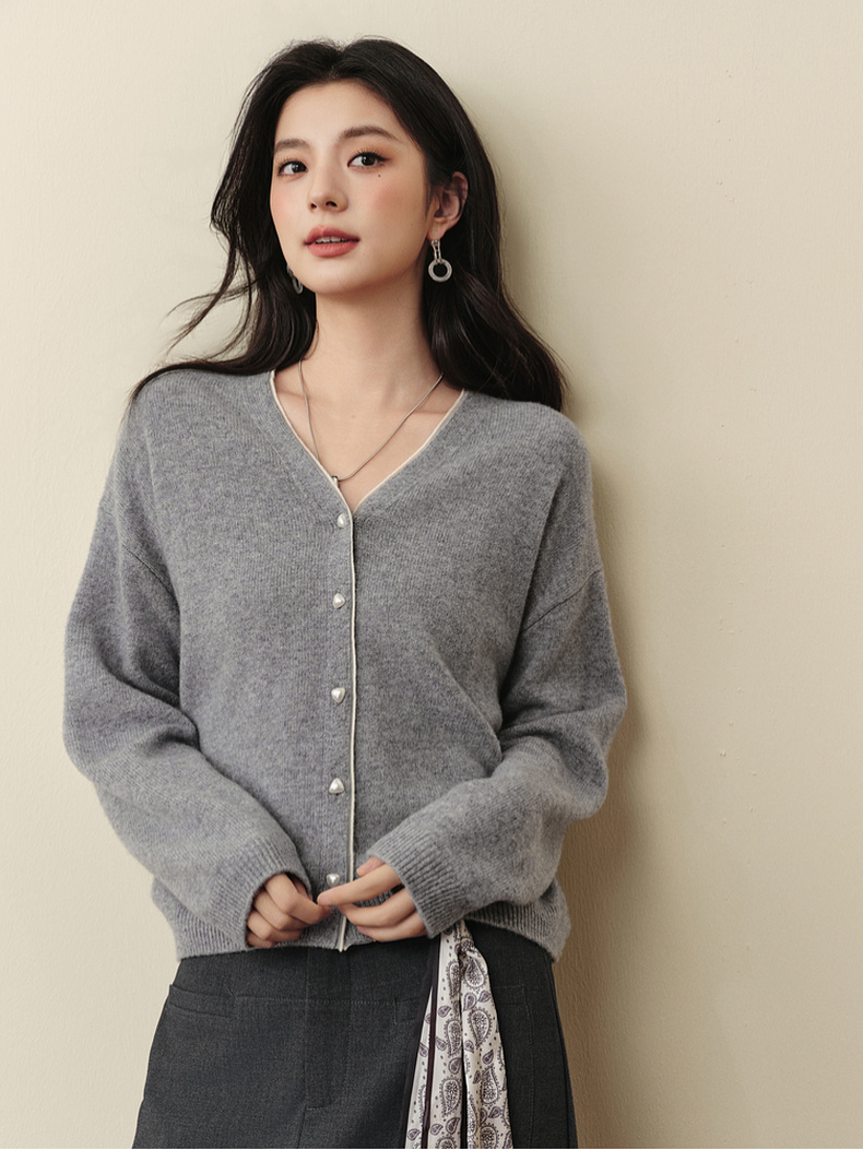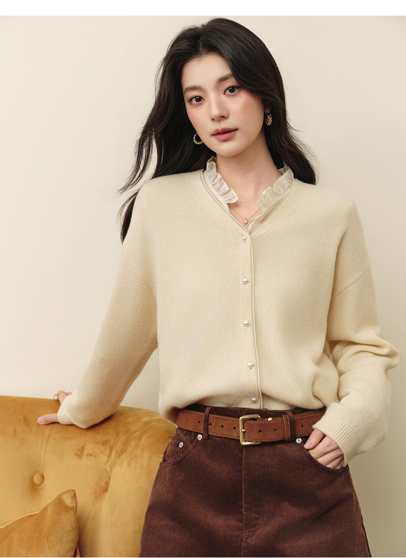 【严选】诗凡黎绵羊毛绞花针织开衫2025秋新款老钱风软糯休闲百搭毛衣外套7G8132031