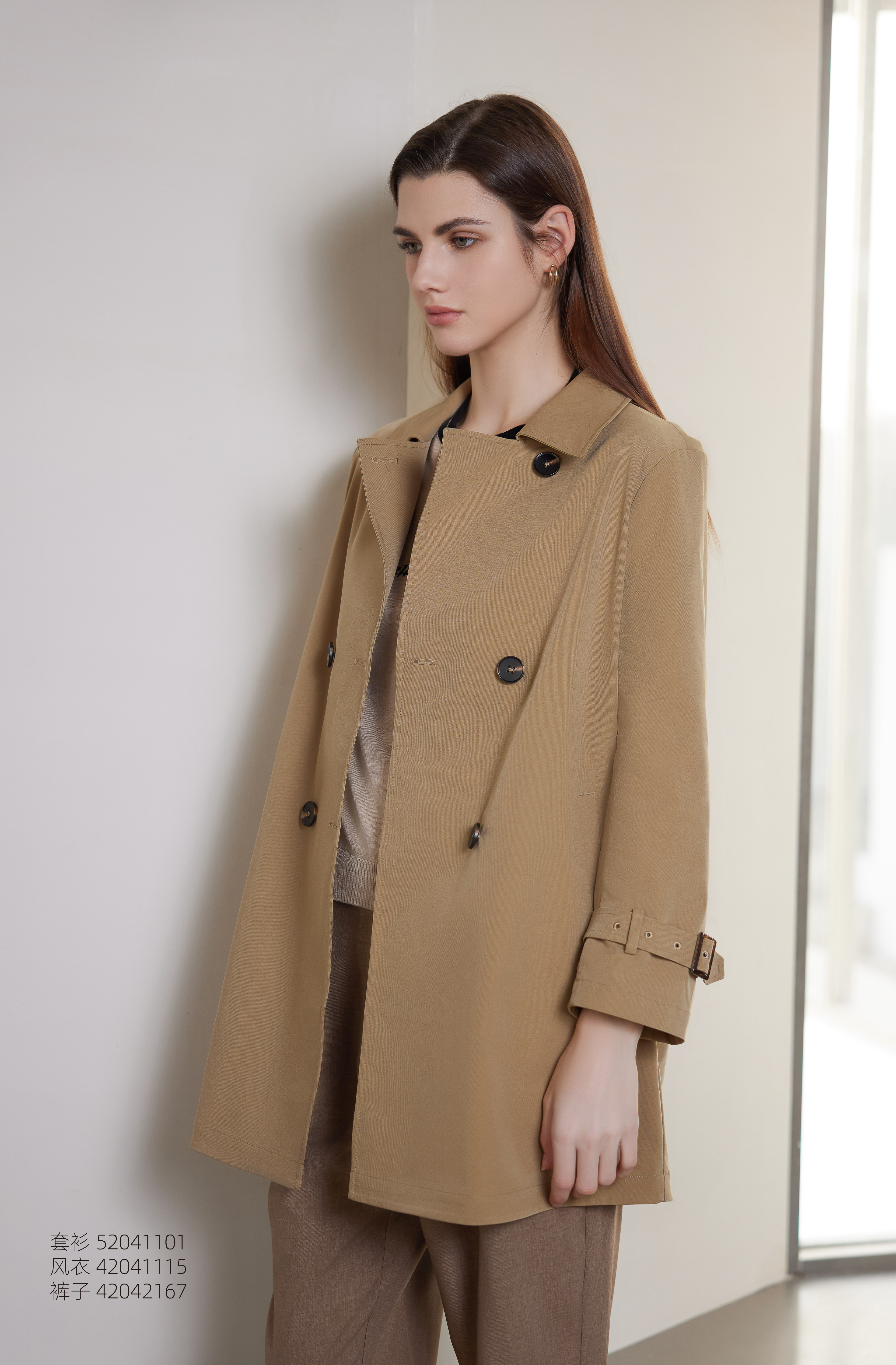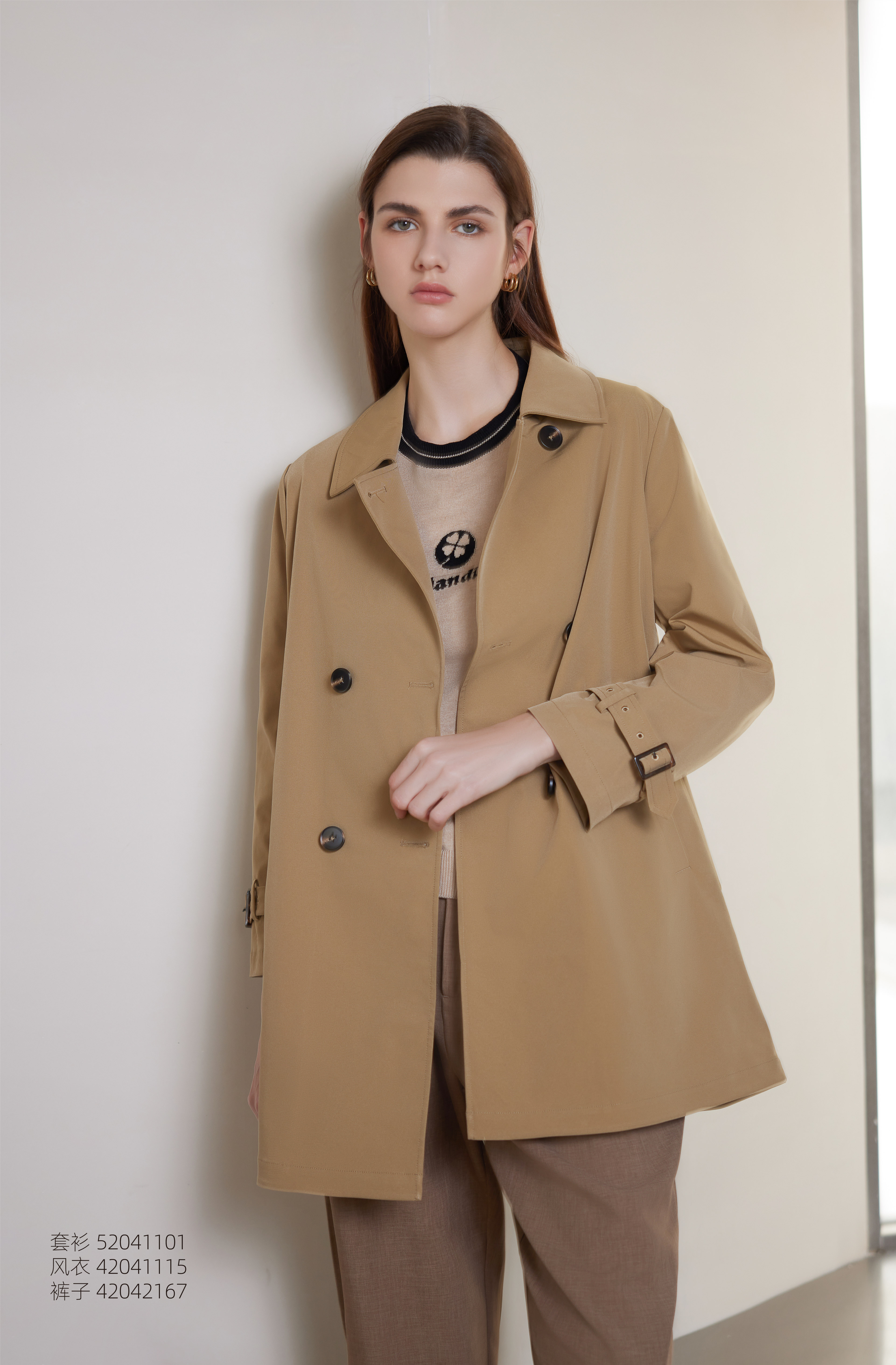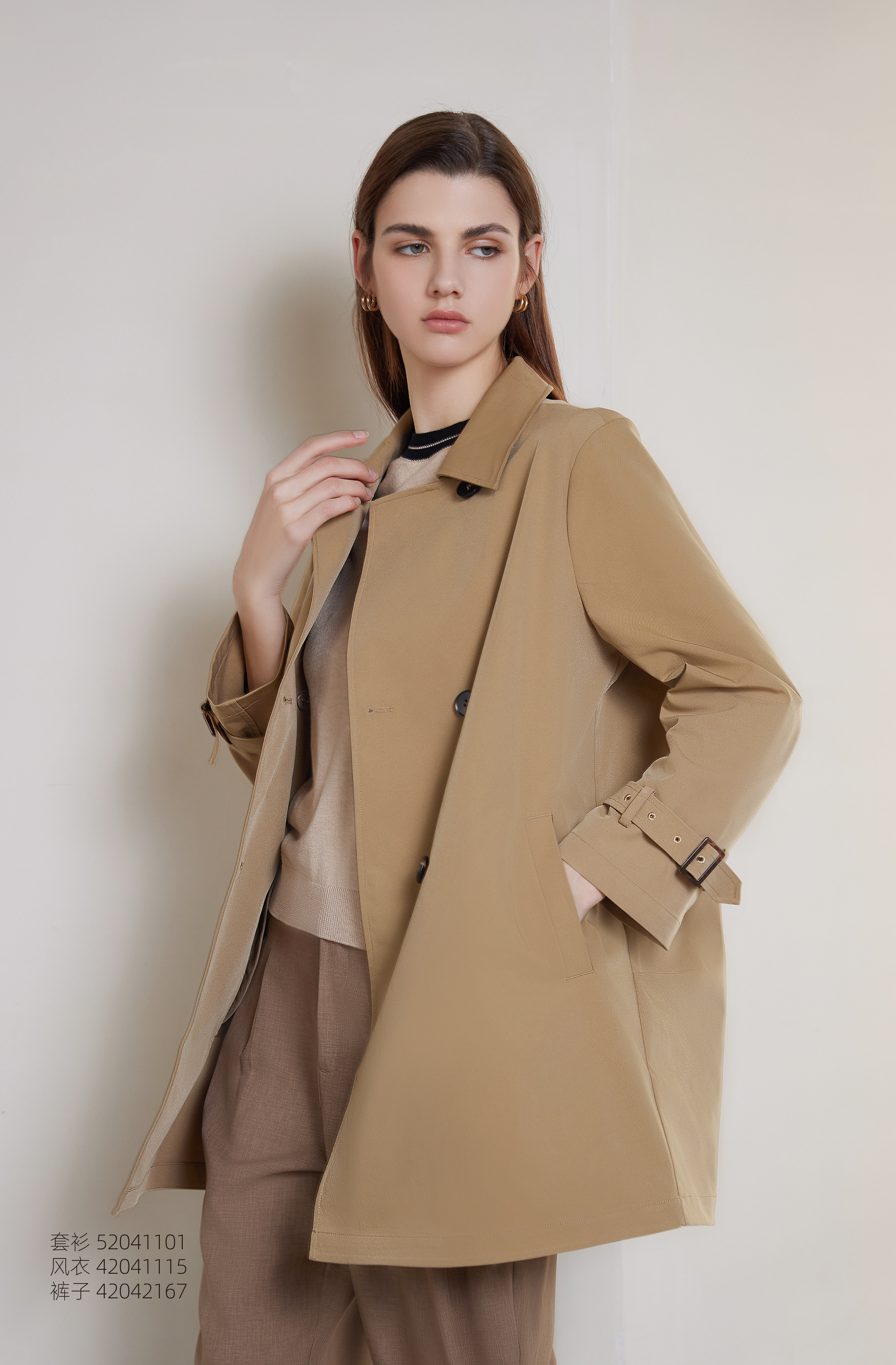 女装春夏新款中长款风衣双排扣防风外套时尚百搭适合多场合穿着