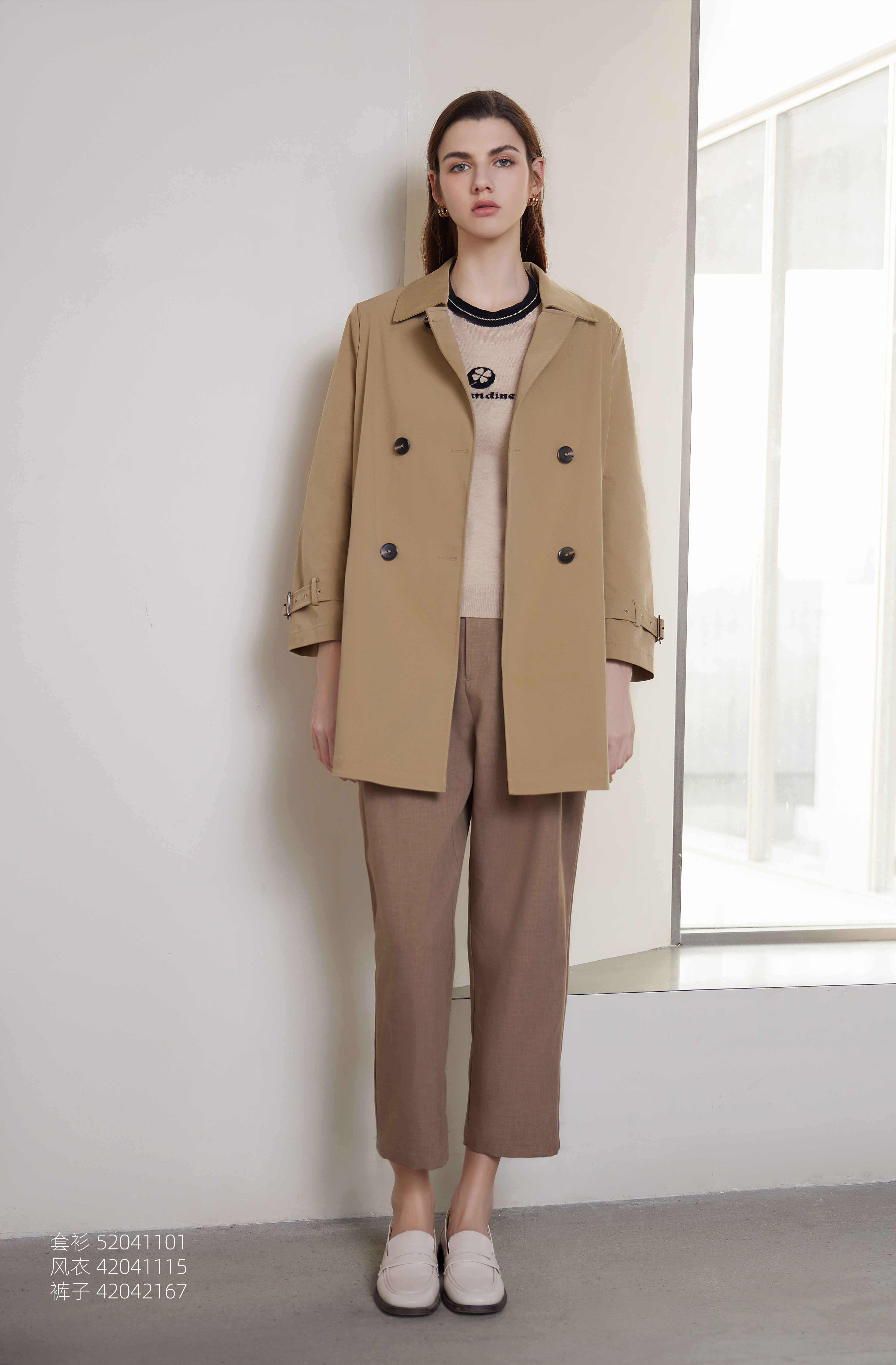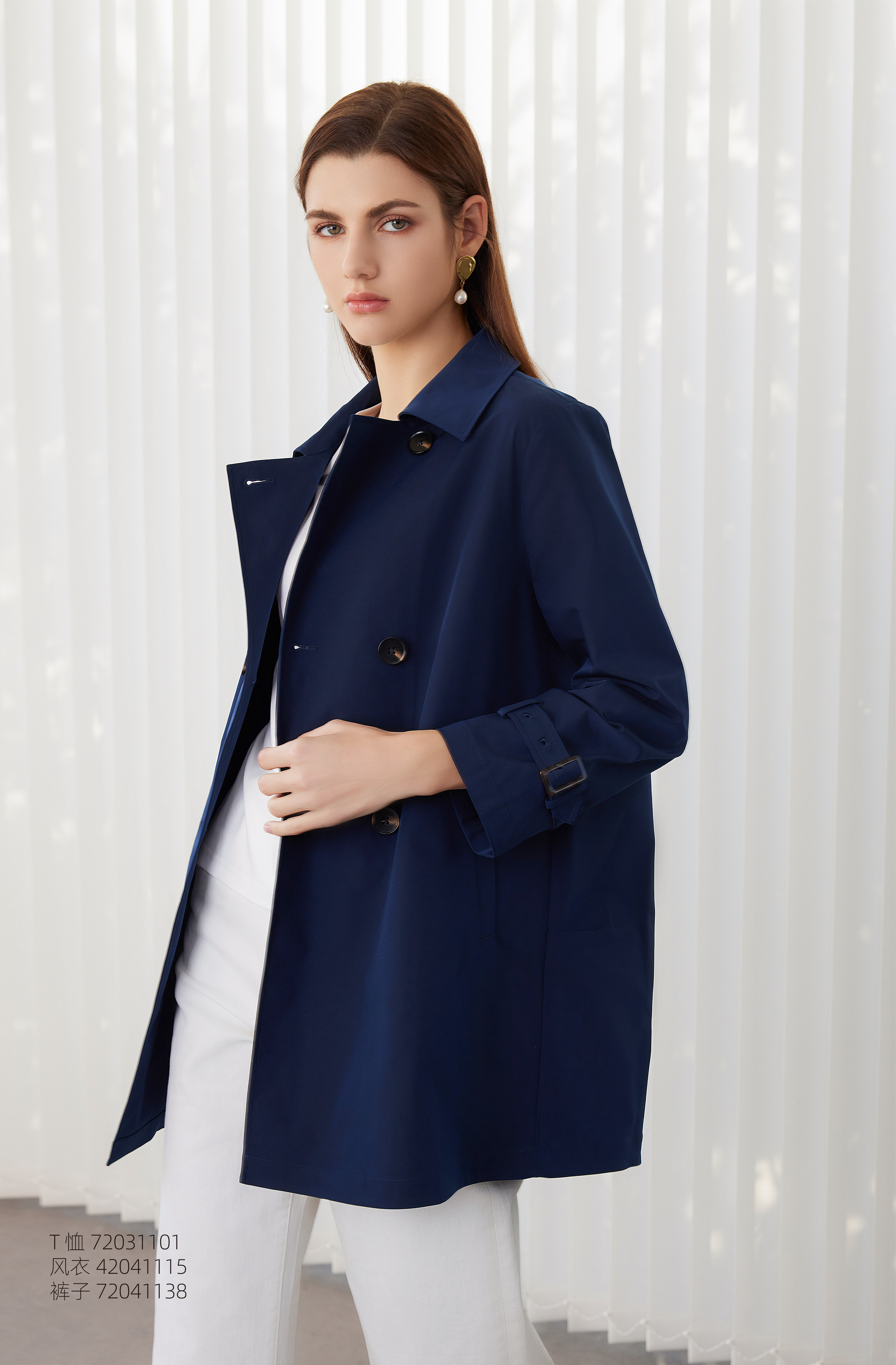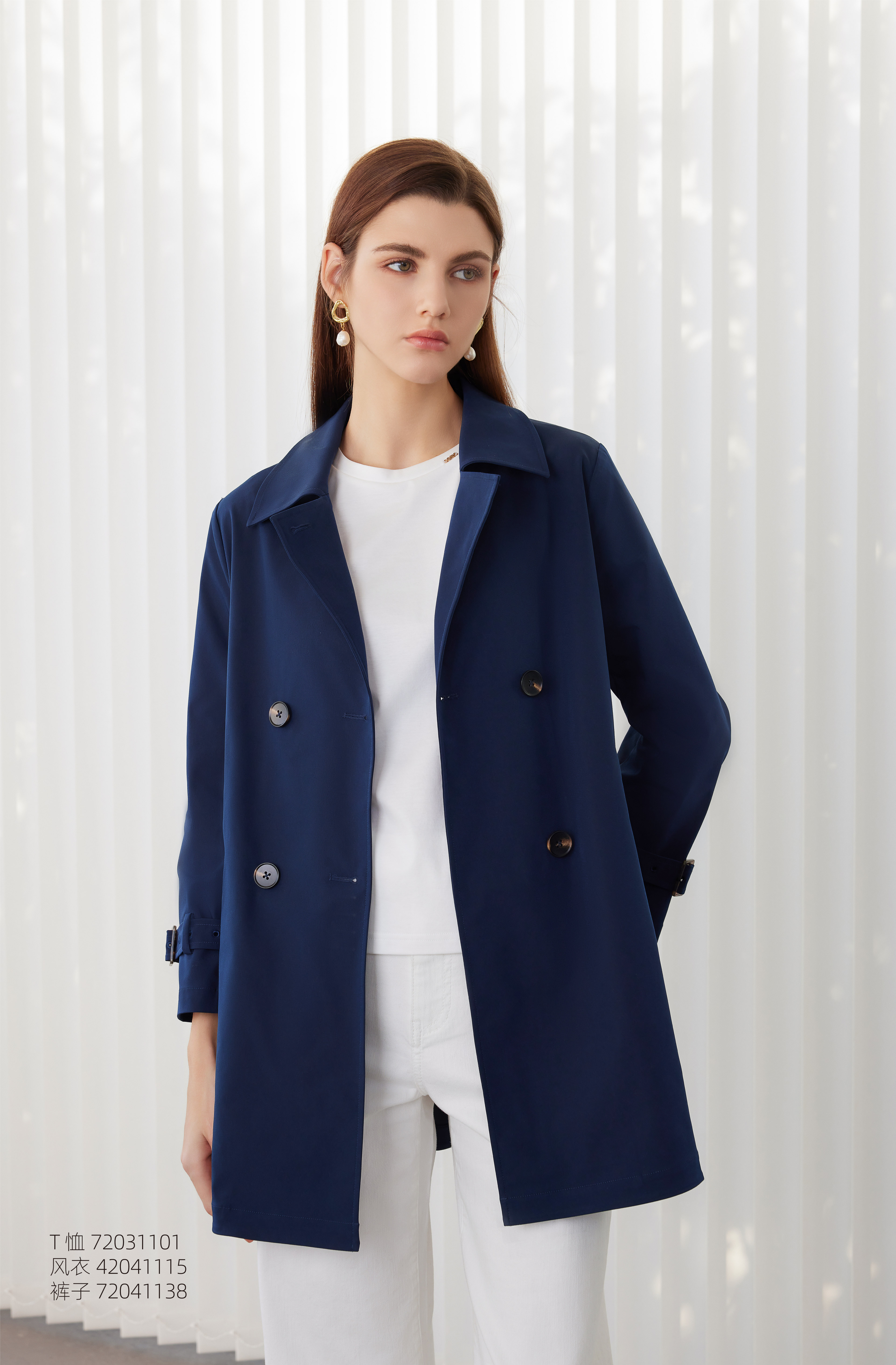 女装春夏新款中长款风衣双排扣防风外套时尚百搭适合多场合穿着