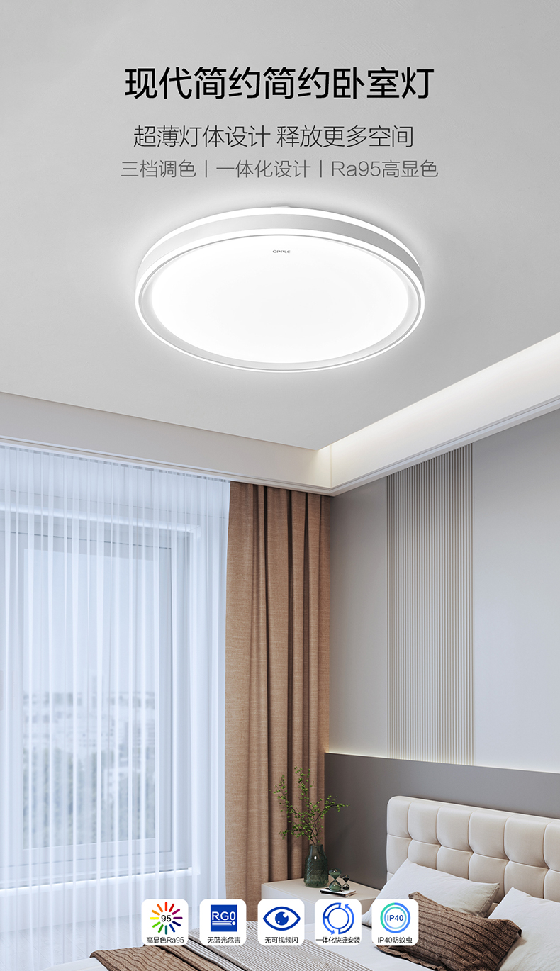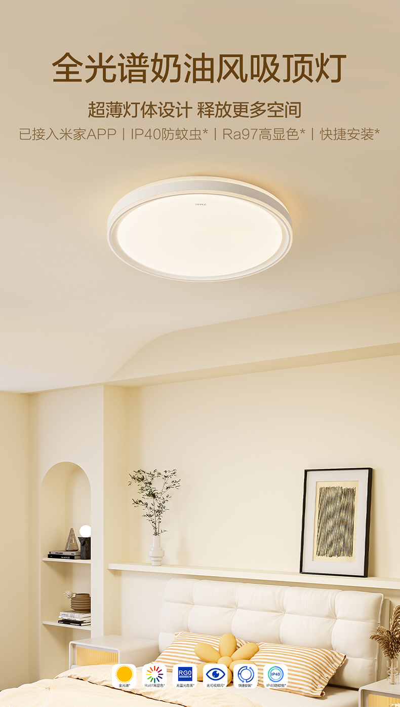 爆款🔥OPPLE欧普照明全光谱护眼LED卧室吸顶灯高显指书房儿童智能灯饰灯具品见