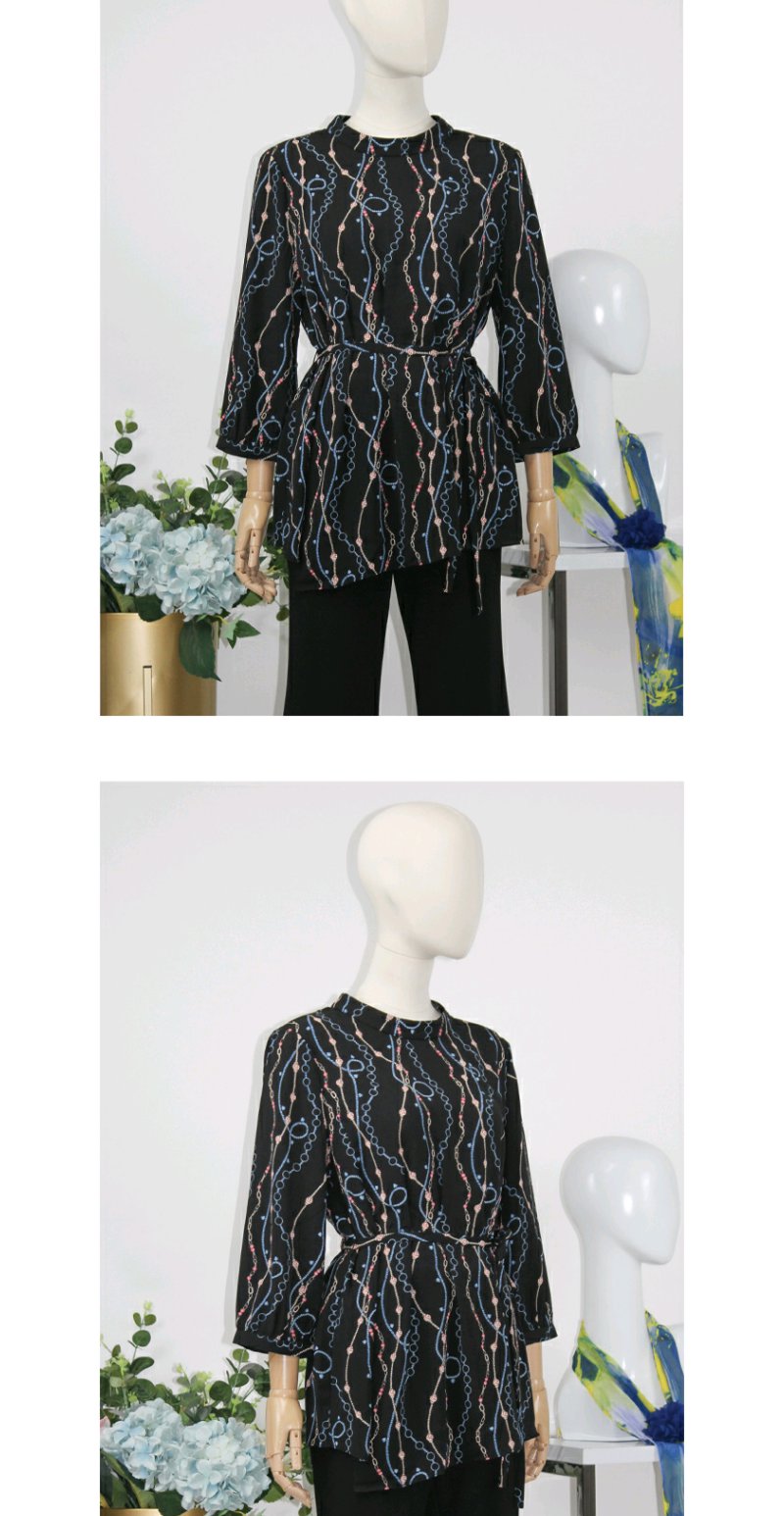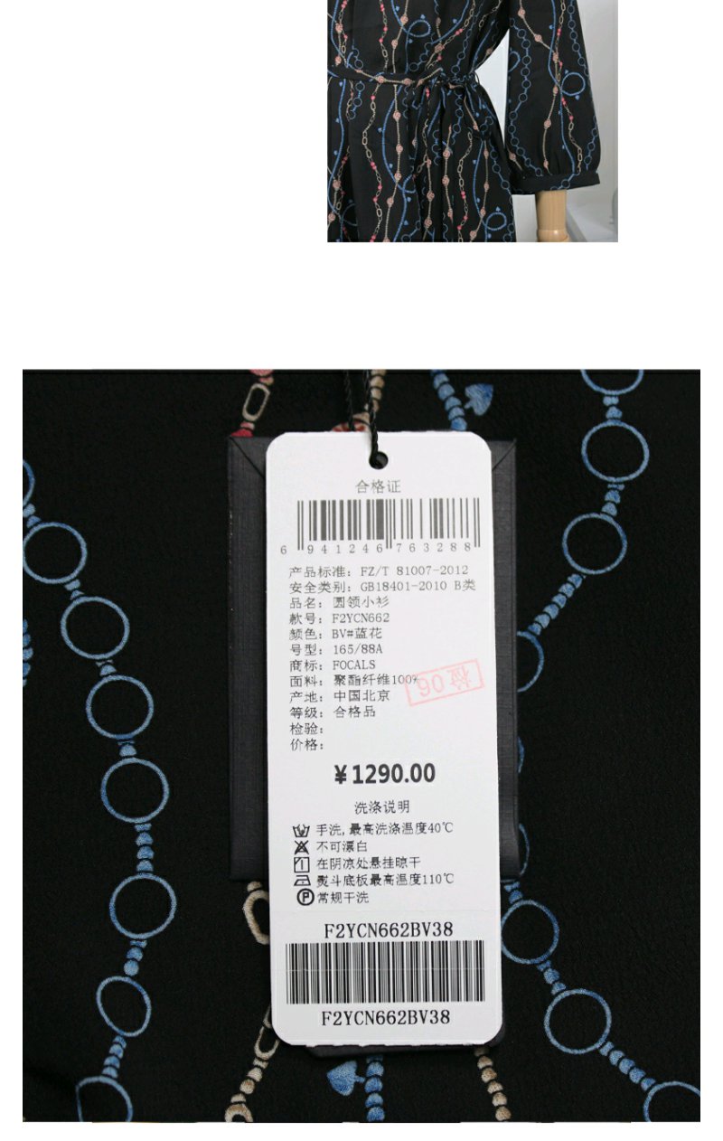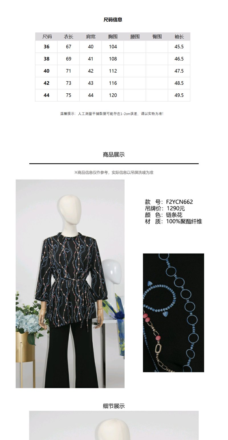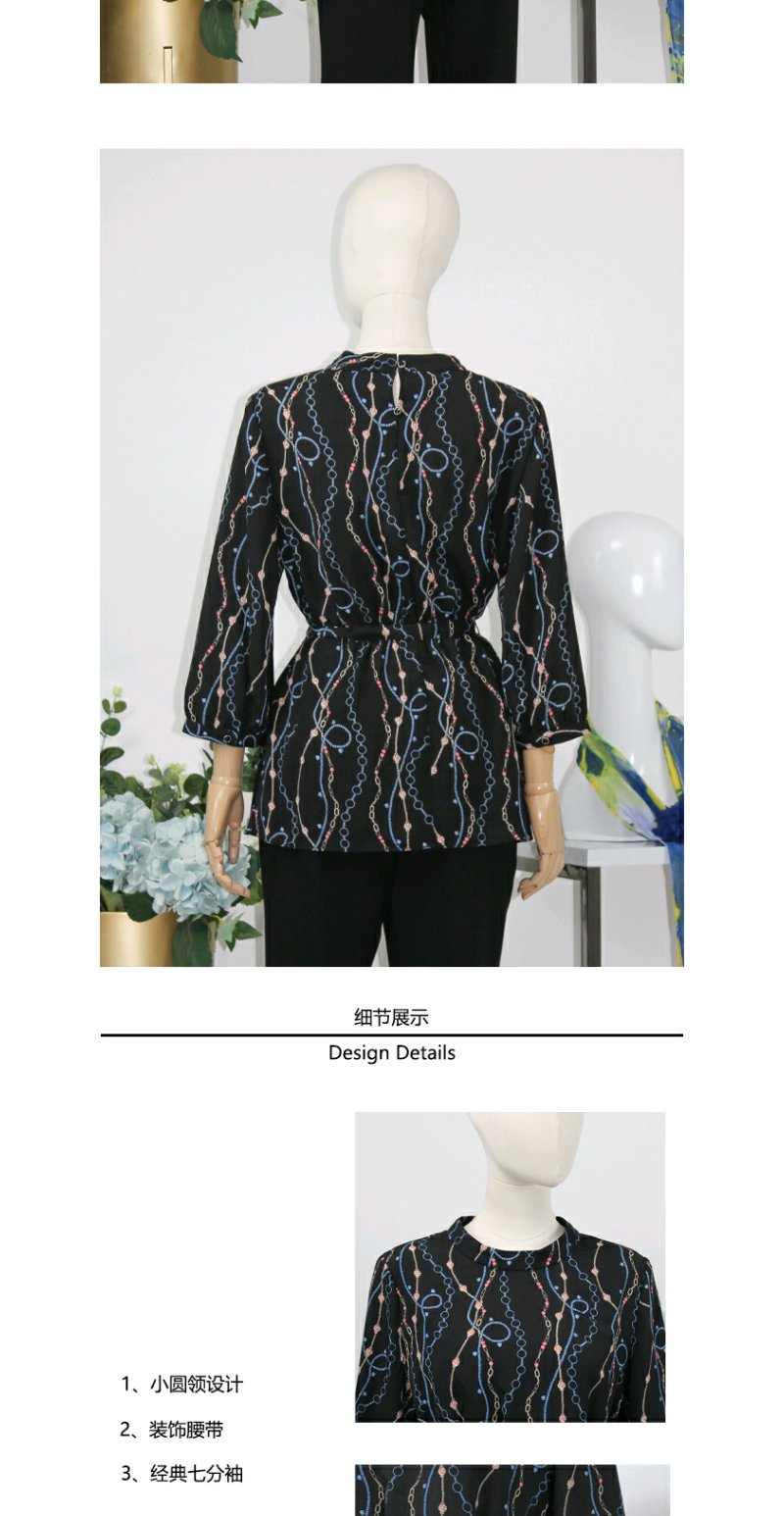 FOCALS女装秋季新款圆领七分袖中长款通勤印花上衣F2YCN662BV