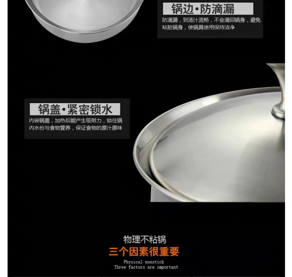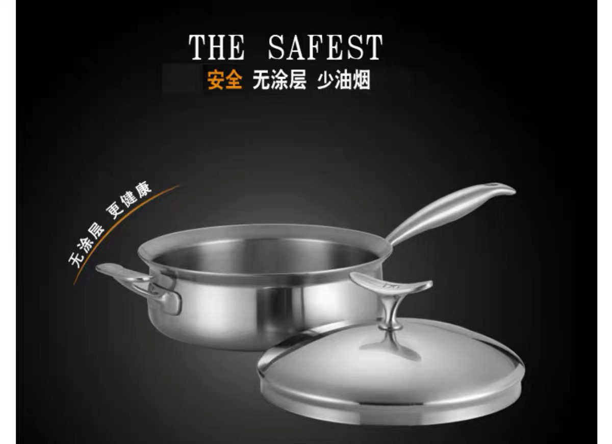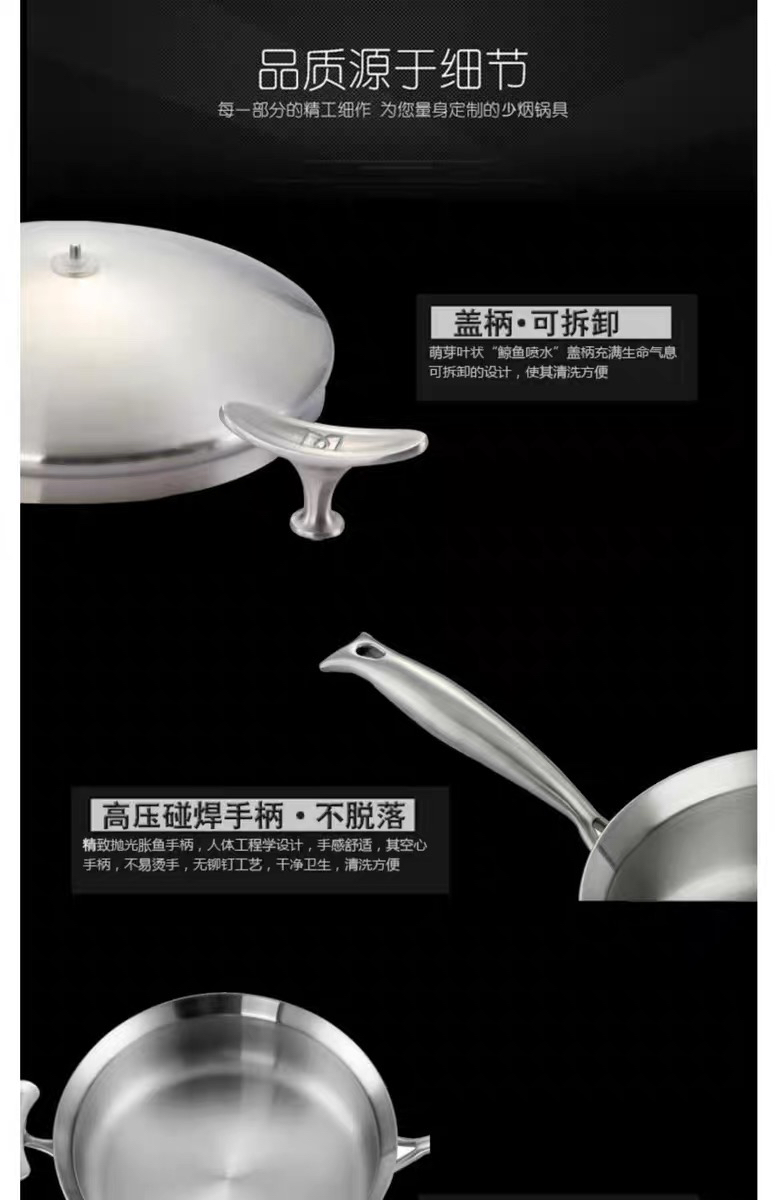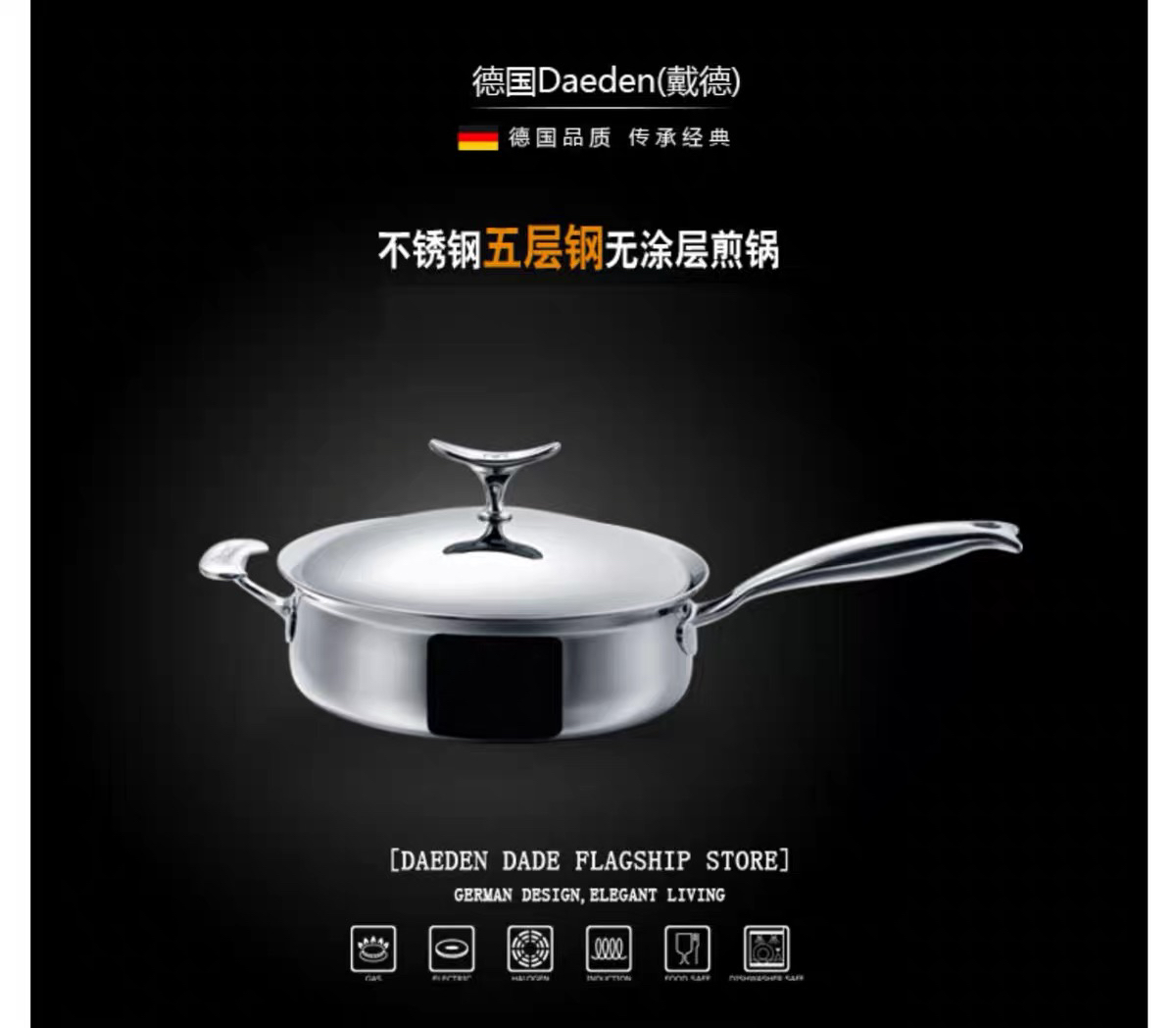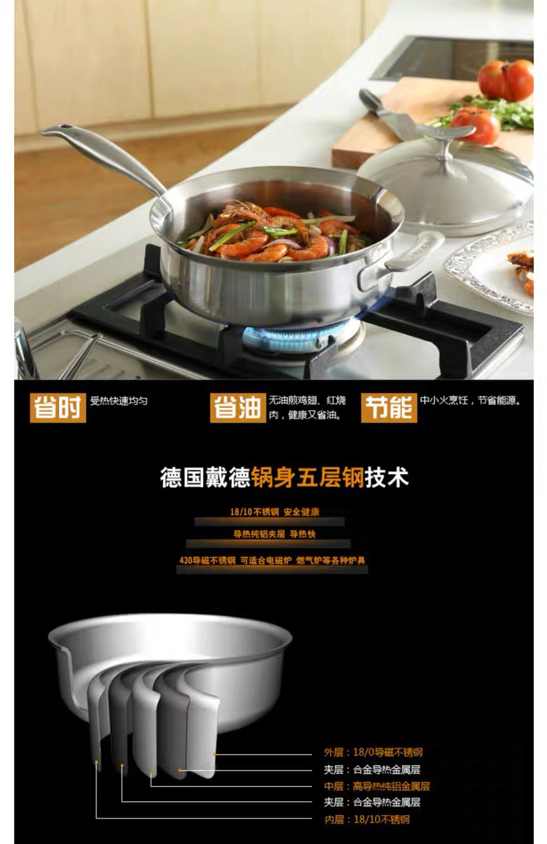 德国戴德 18/10不锈钢单柄煎锅五层钢少油烟平底锅24cm