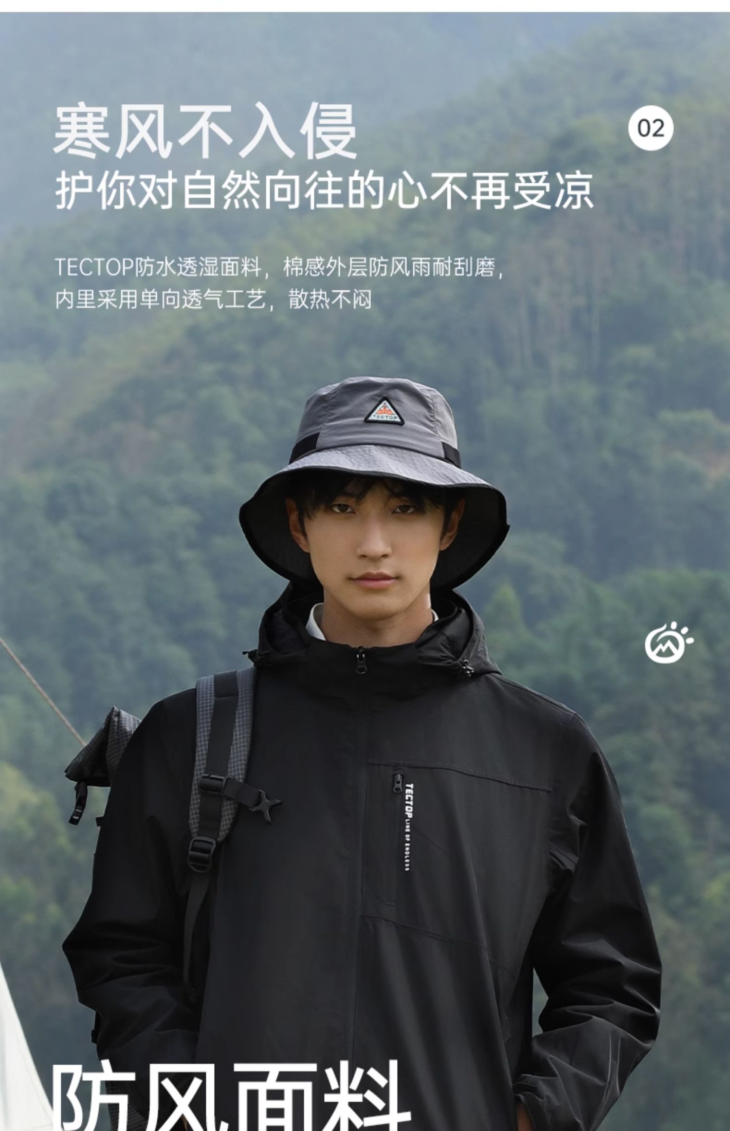 【159秒杀】探拓户外单层冲锋衣男抓绒保暖外套防水防风薄款透气登山户外服女