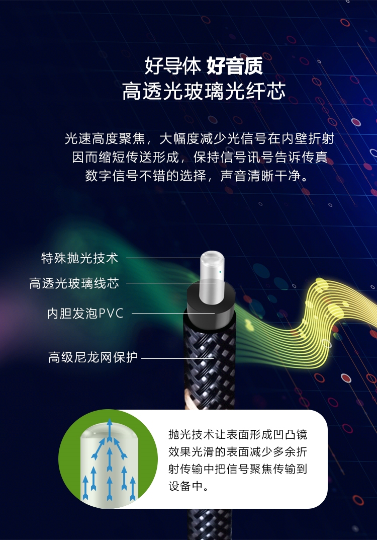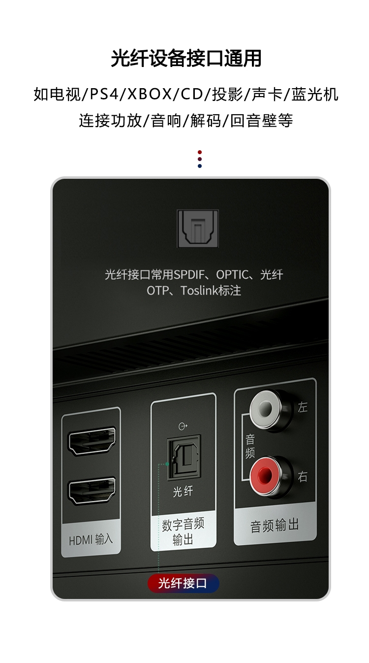 数字光纤音频线 电视DVD投影仪接功放机顶盒家庭影院音频线 spdif多声道音响连接线HiFi级光纤音频线,PS4/XBox连接音响/回音壁,拒绝电流杂音,带卡扣和保护帽设计,插拔顺畅,线身柔韧耐弯折