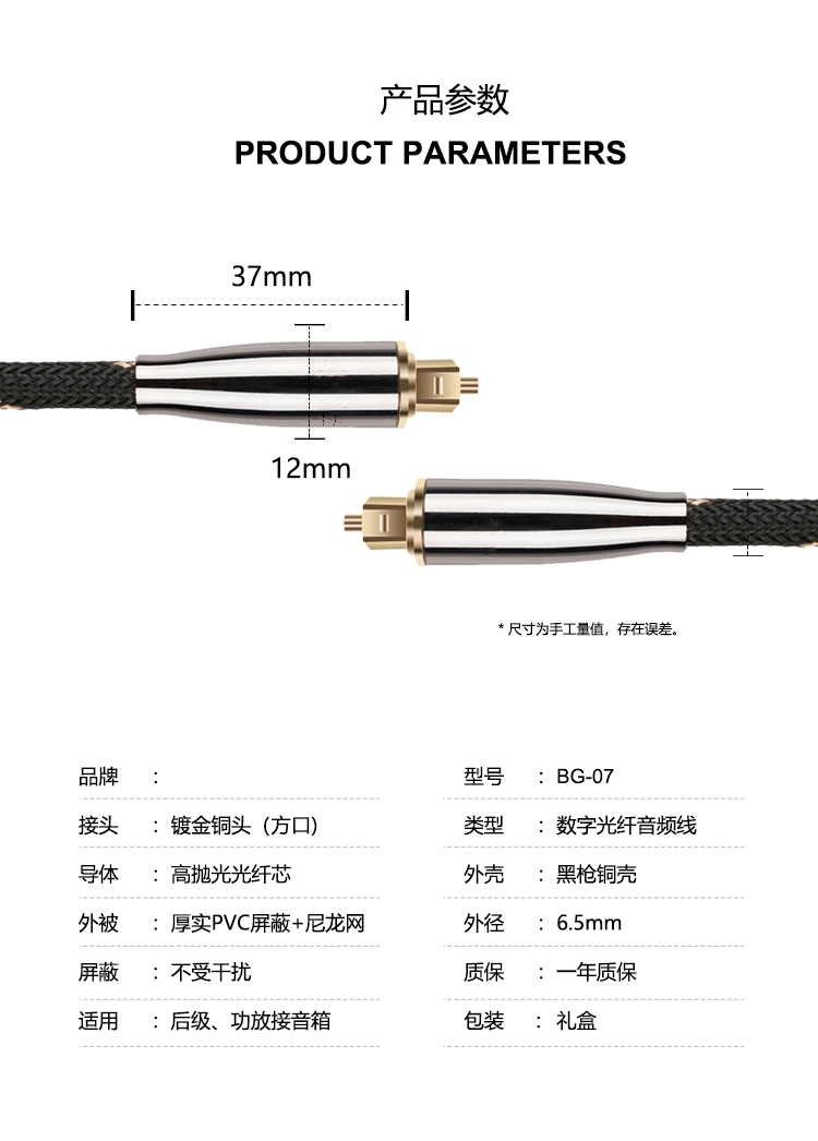商品名称:Hi-Fi级 数字光纤音频线 方口 5.1多声道 Optcial 声卡CD功放解码音箱响连接线