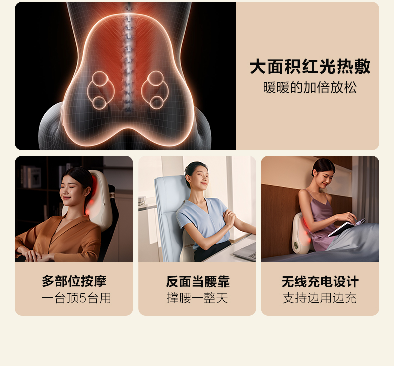 skg腰部按摩仪T5-2豪华款 腰靠垫肩颈背部全身按摩器仿人手红光热敷护腰神器