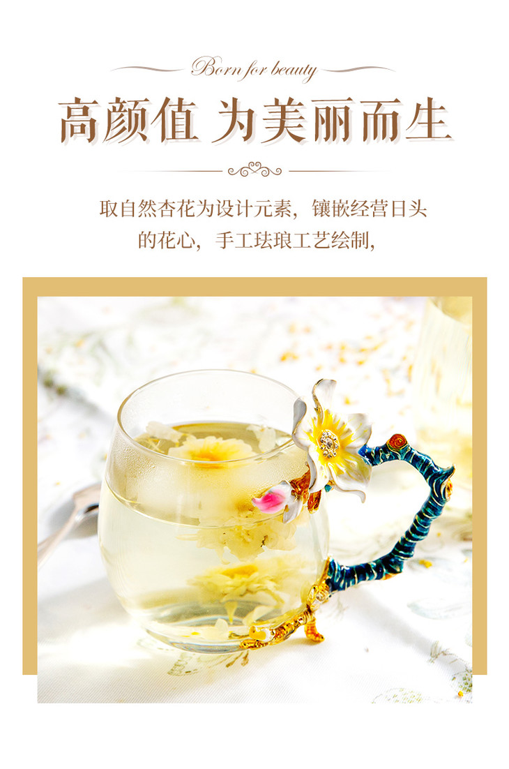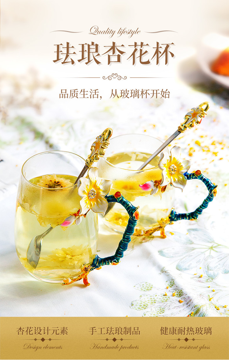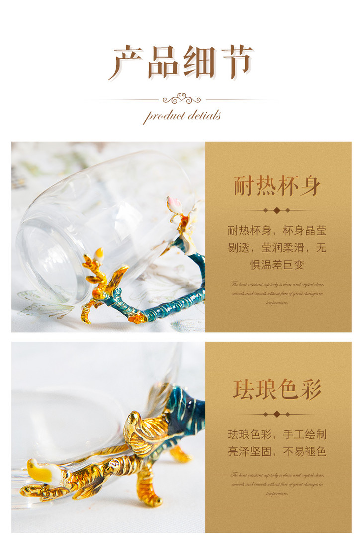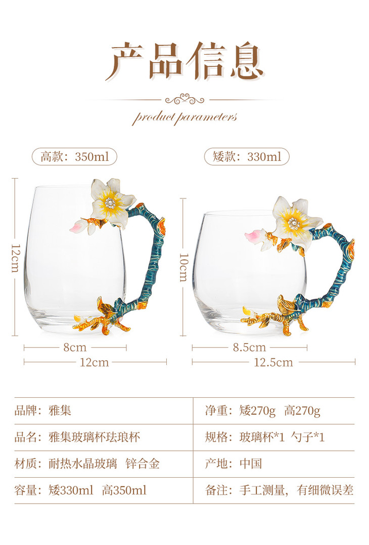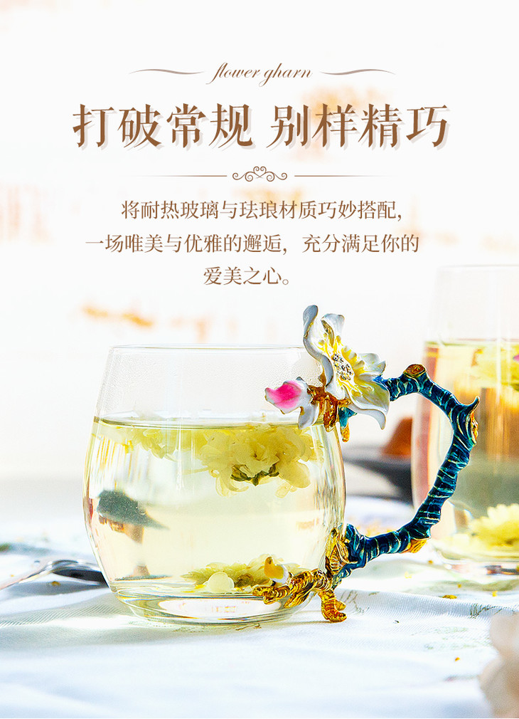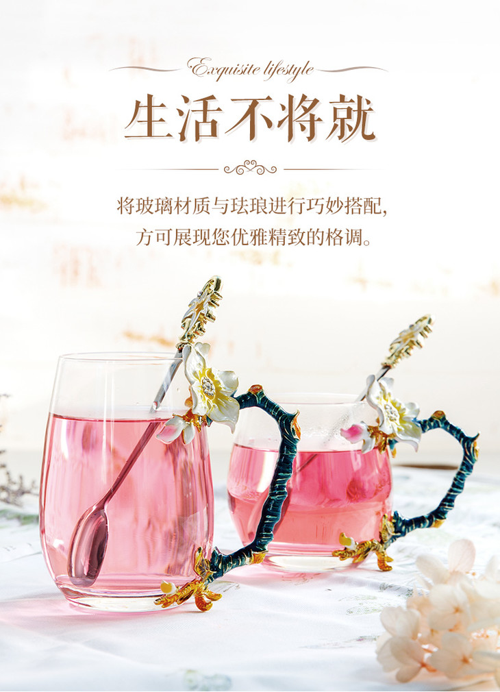 雅集 珐琅杯少女水杯花茶杯软妹水杯宫廷耐热玻璃杯家用珐琅彩水杯