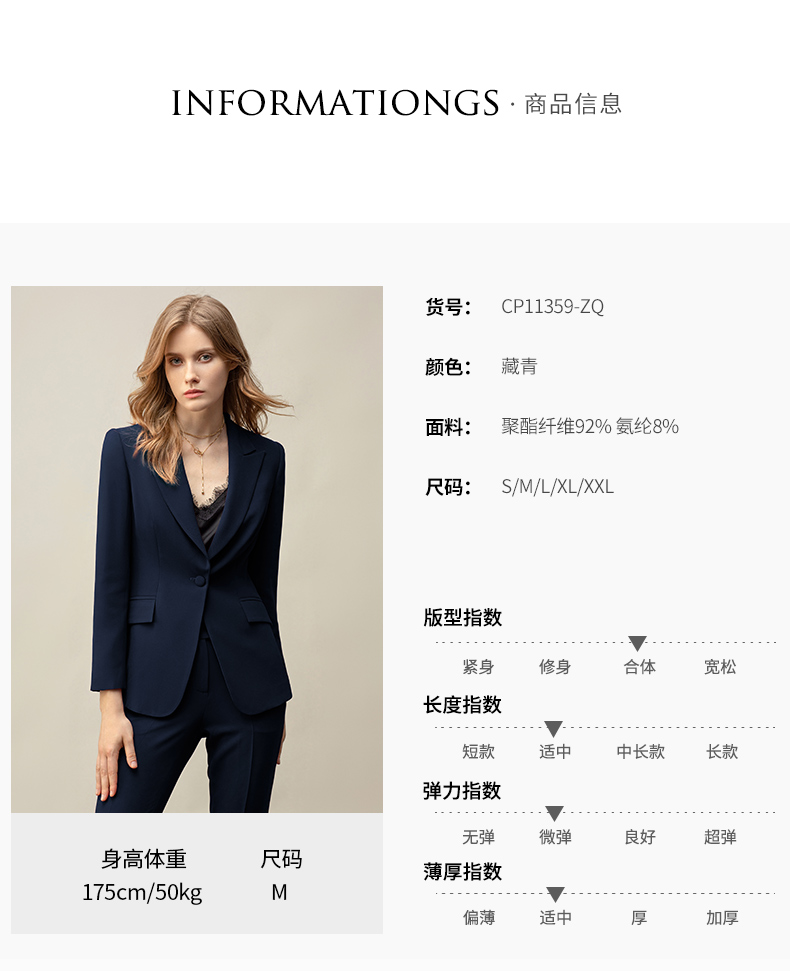 IWY/藏青色单粒扣都市时尚职业女士西服套装西装白领工作服CP11359-ZQ