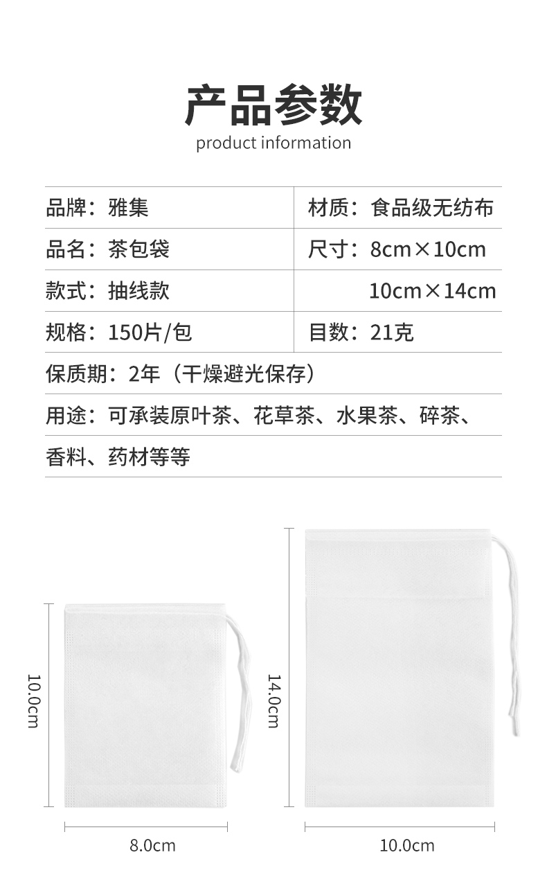 雅集无纺布茶包袋(明线款10*14cm-150个)