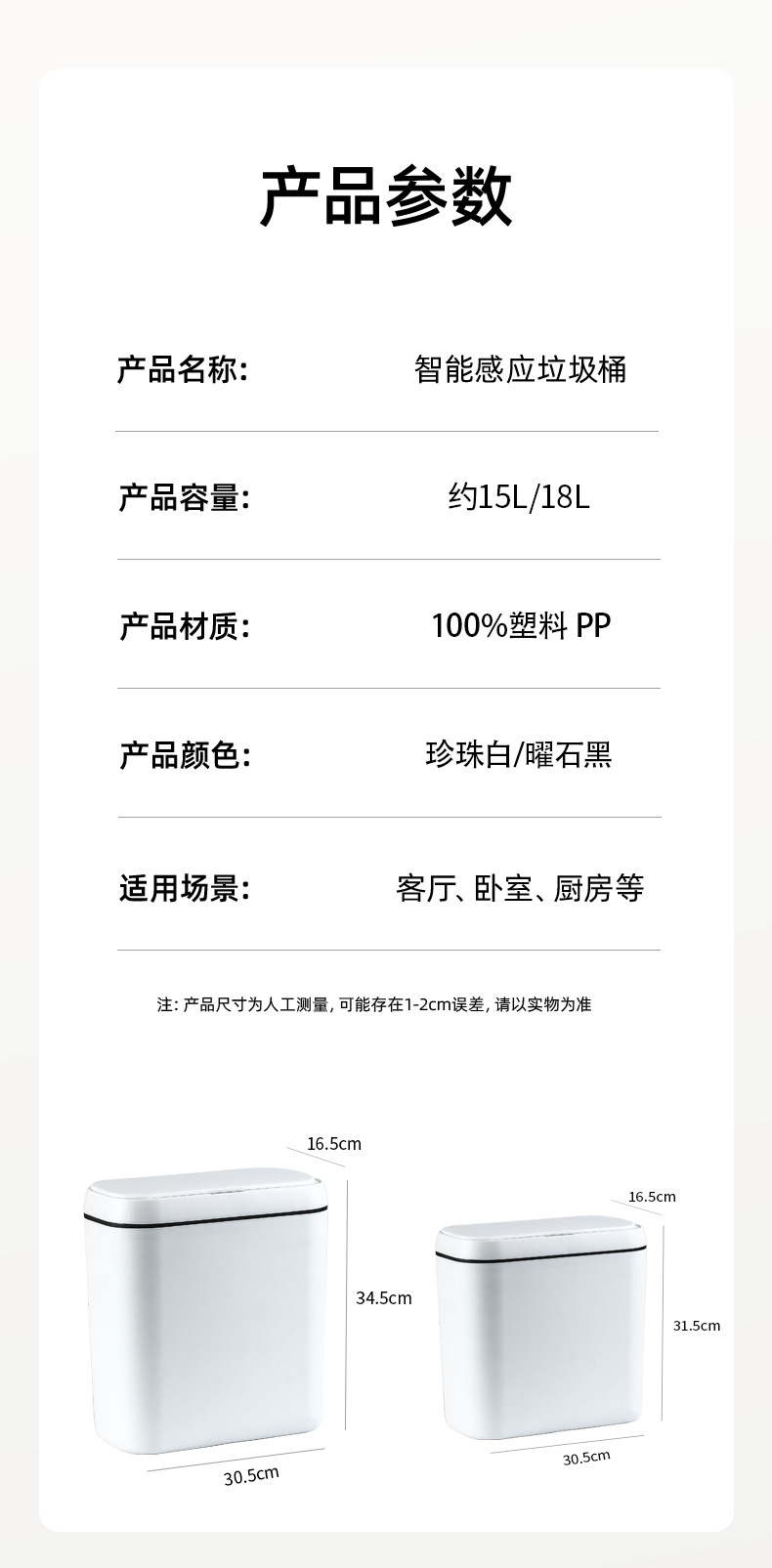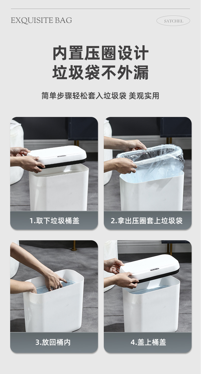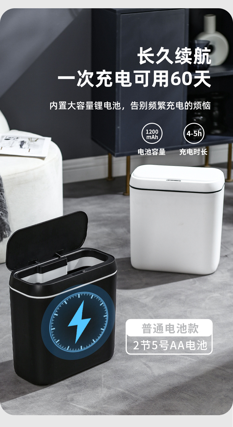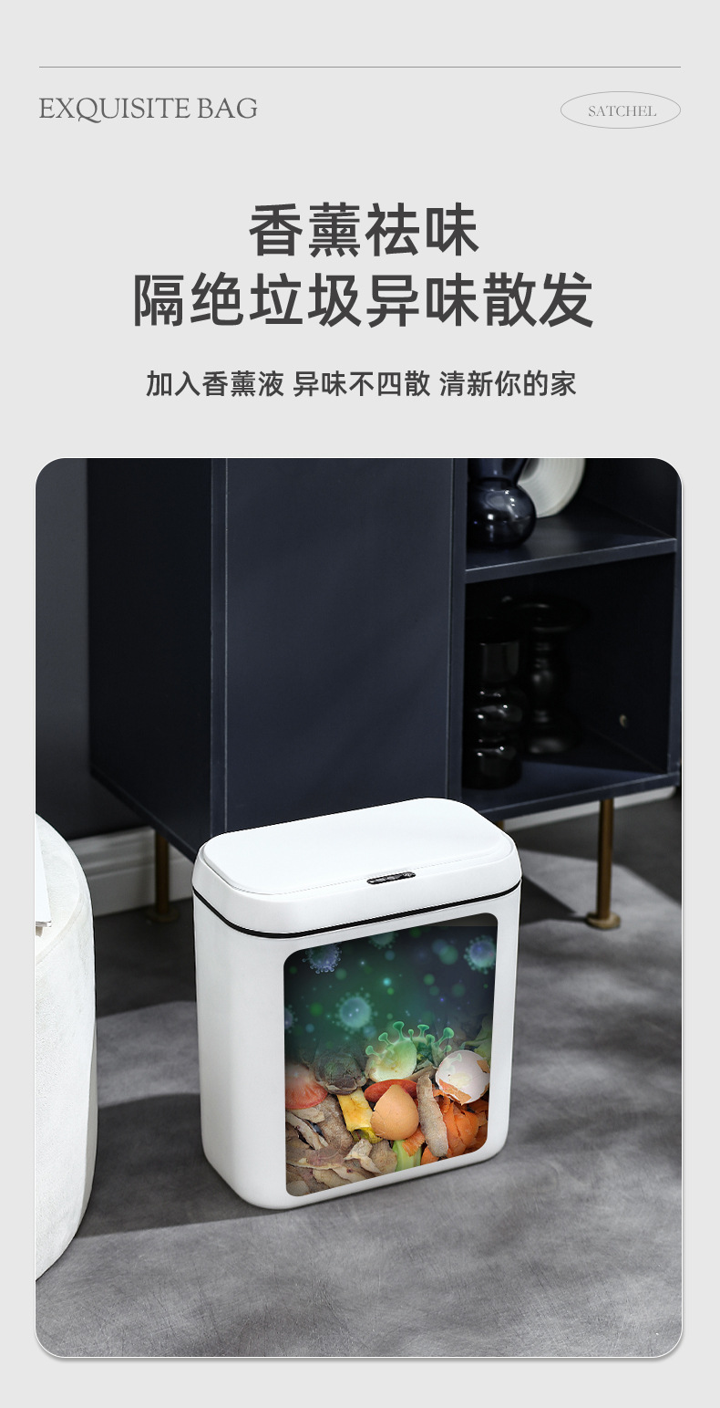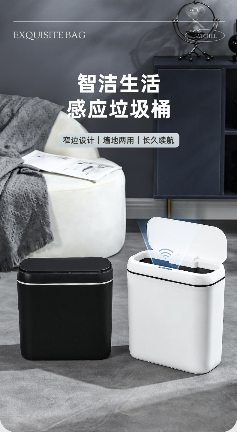 【简约智能感应垃圾桶】家用卧室静音收纳桶 卫生间防臭纸桶客厅踢踢桶