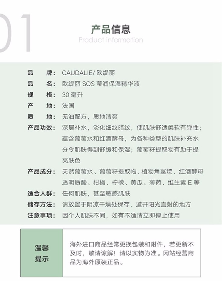 【保税仓】Caudalie/欧缇丽 葡萄源舒缓保湿SOS精华液30 ml