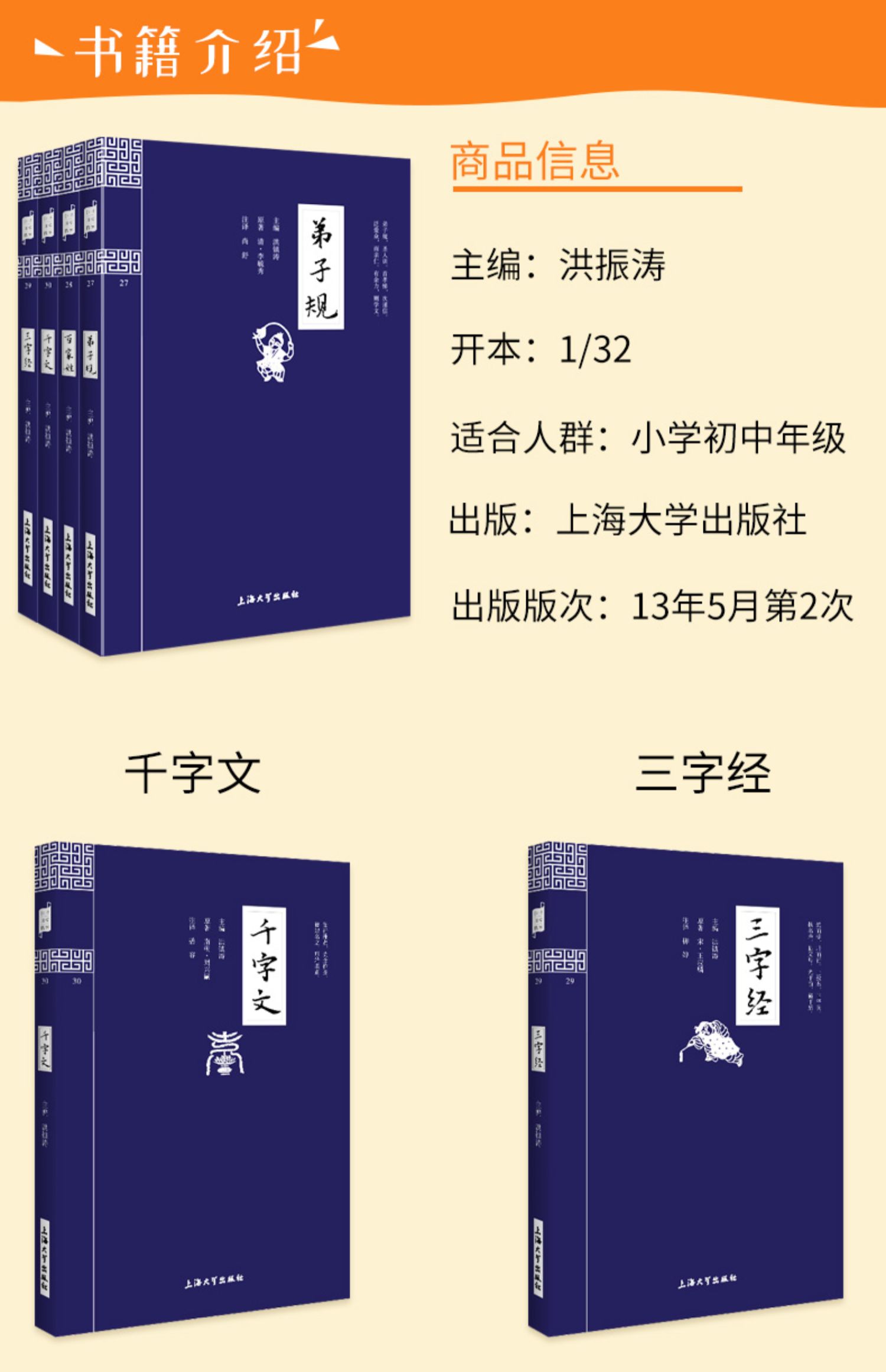 正版 三字经+弟子规+百家姓+千字文 全集4册 钟书国学精粹 上海大学出版社