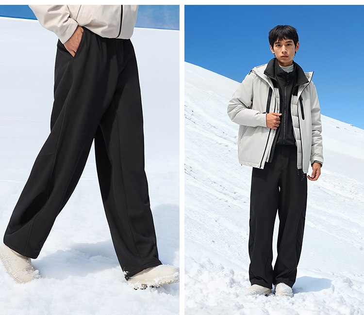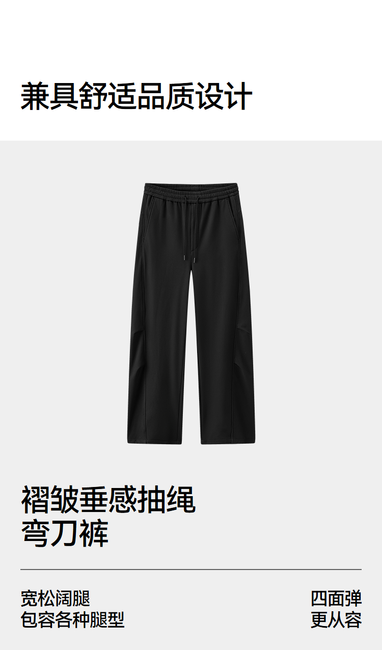 森马休闲裤男冬季宽松阔腿裤2025新款褶皱垂感弯刀裤潮流抽绳裤子