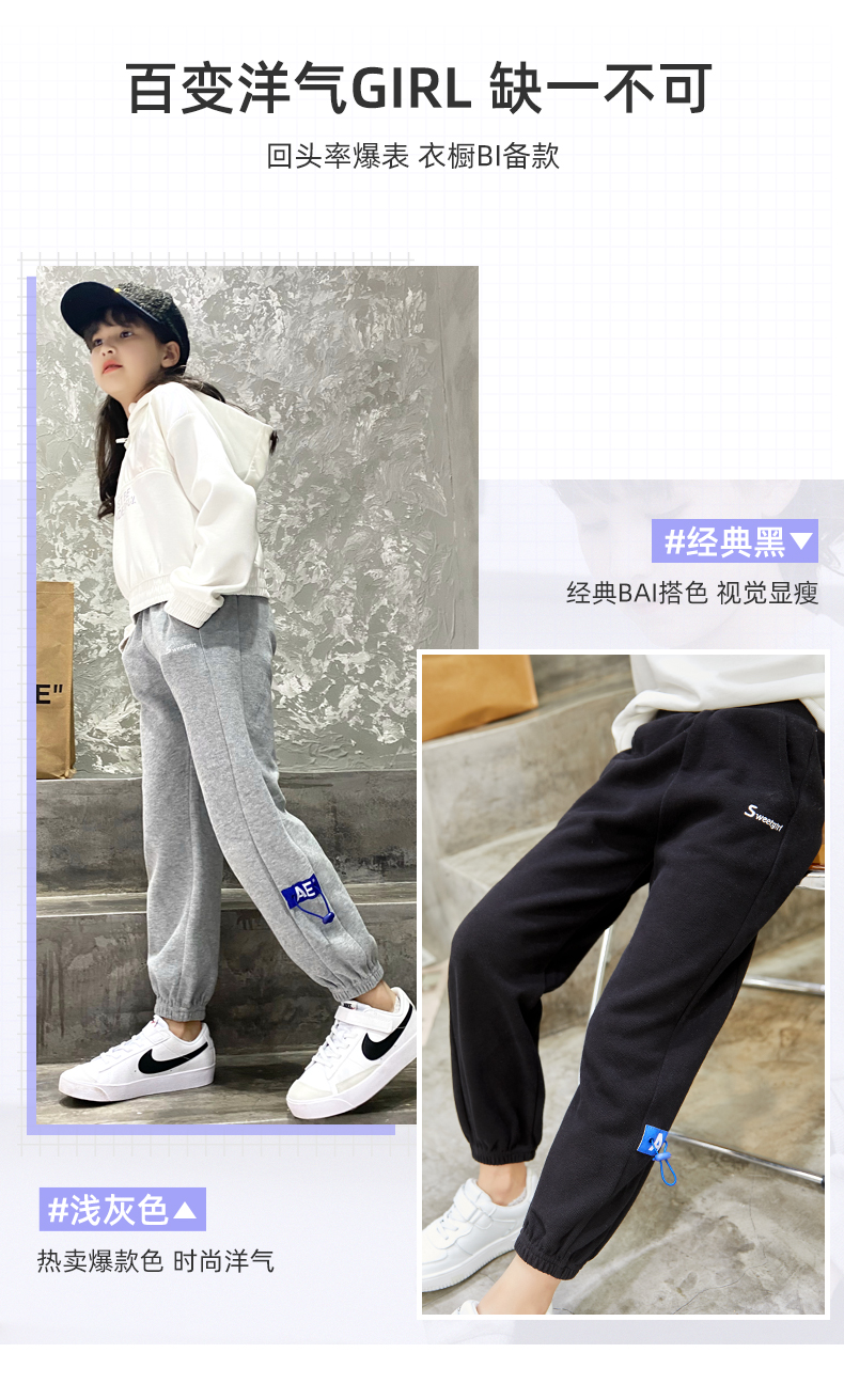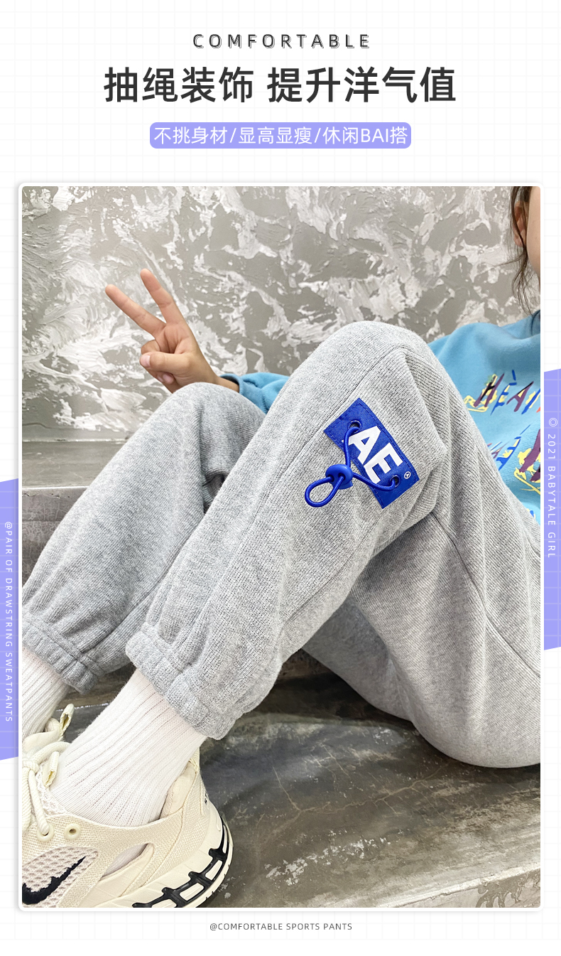 B72女童运动裤休闲外穿秋季儿童秋装裤子2021新款女大童薄款春秋