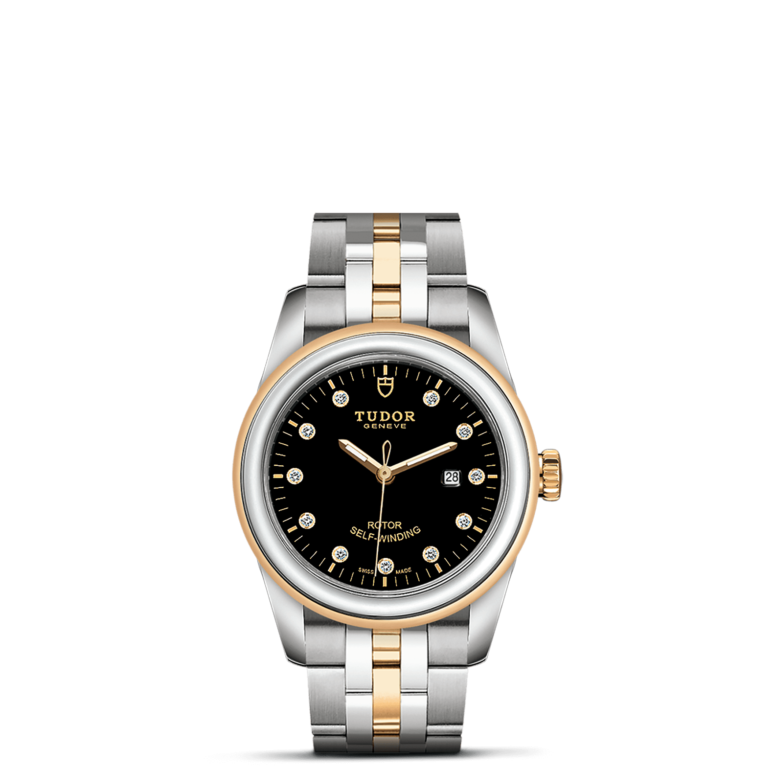旋入式上链錶冠,饰以帝舵表标志;精钢覆有0.1毫米18K黄金薄层