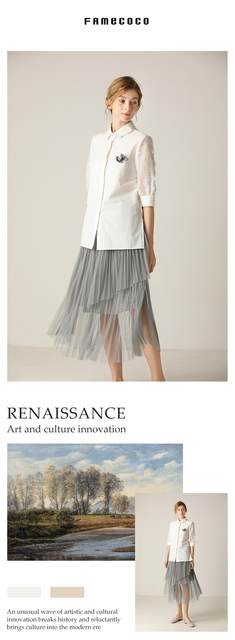 - Famecoco作为中国本土设计师品牌之一的她,创建于美丽的时尚花都广州,自2013年创立以来,一直致力于打造优雅、知性、文艺的穿着理念。
