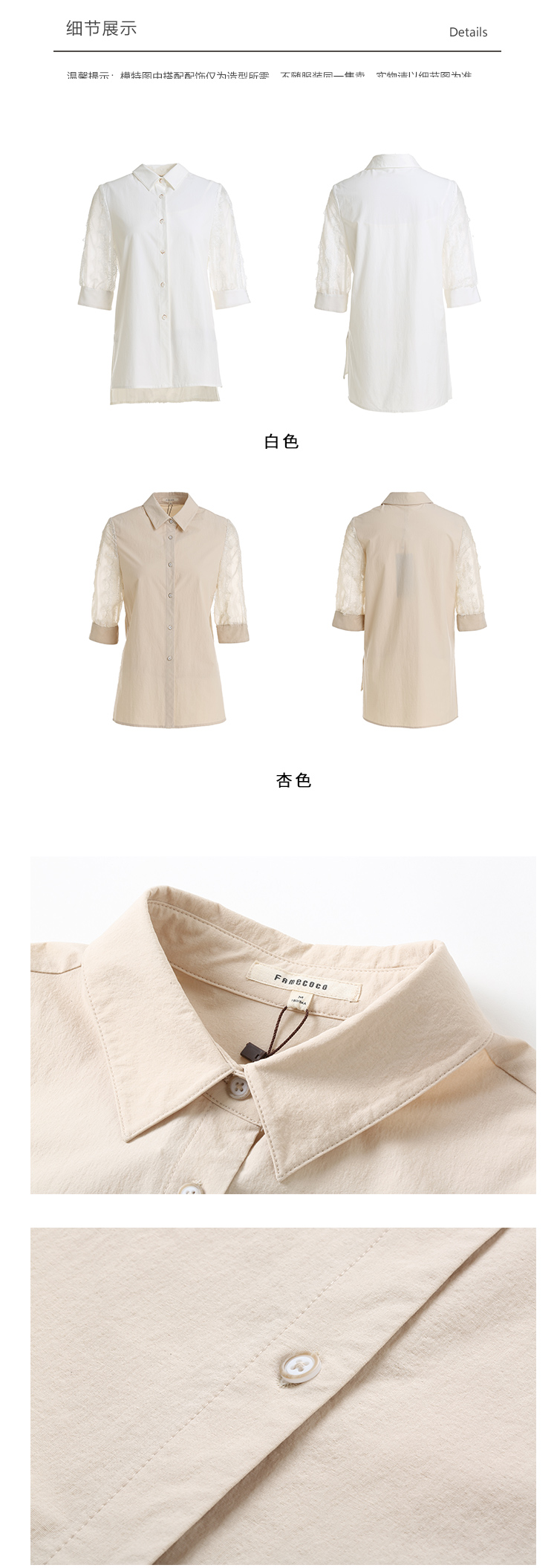 famecoco范可儿夏季法式复古五分袖衬衫F203BA041