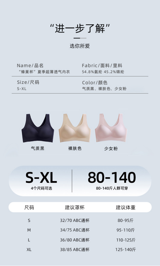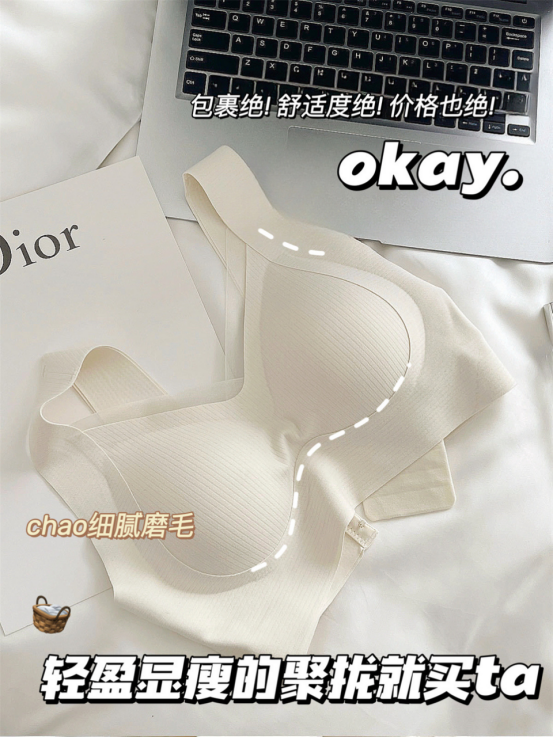 “解放身体 只为悦己” 拿到手整件就很有质感!! 无钢圈无痕又舒适圆滚滚杯型上身瞬间凹凸有致!