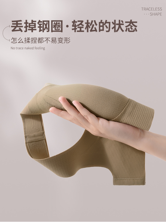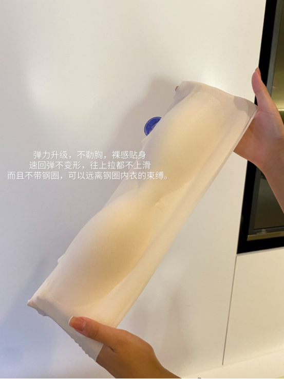 弹力升级,不勒胸,裸感贴身 速回弹不变形,往上拉都不上滑 而且不带钢圈,可以远离钢圈内衣的束缚。