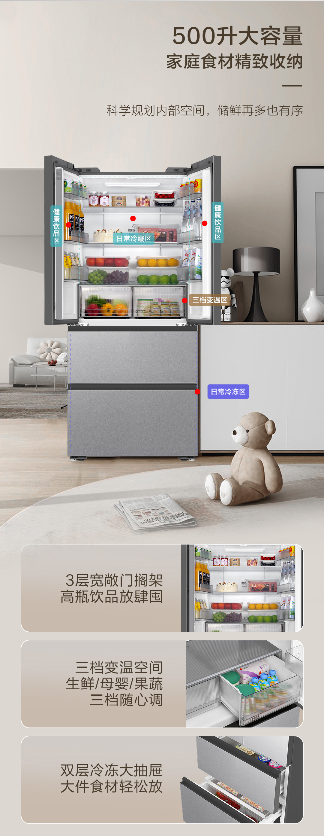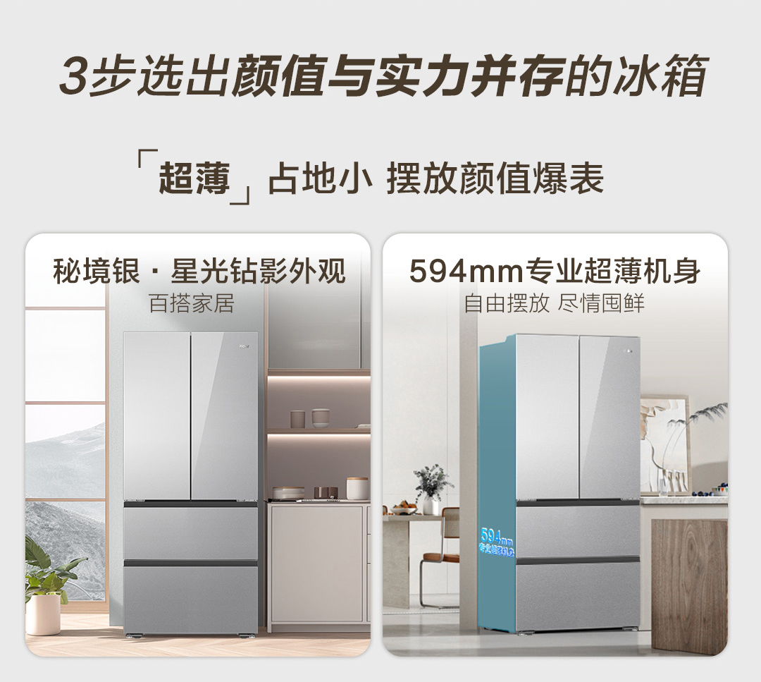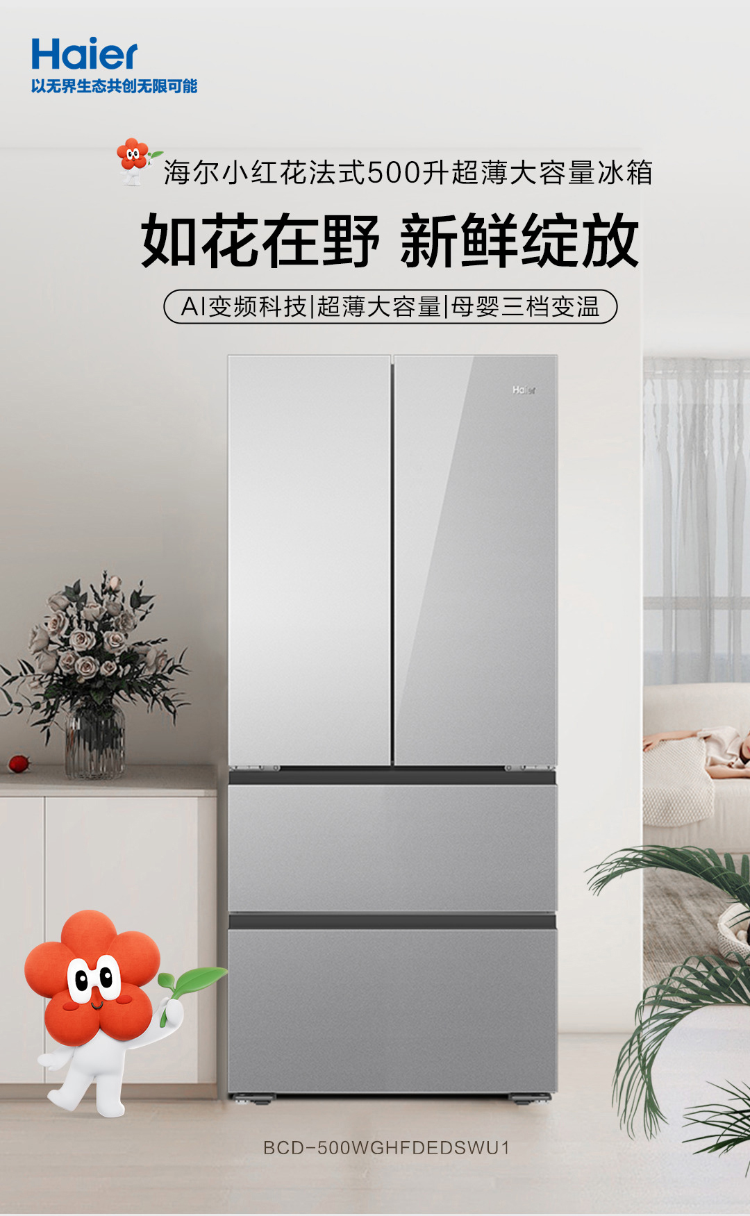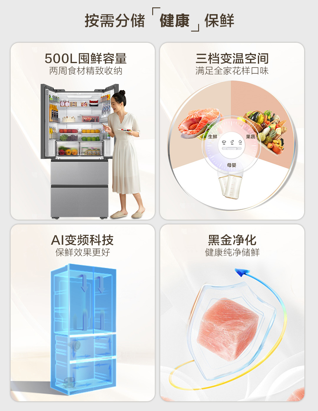 海尔冰箱BCD-500WGHFDEDSWU1 整机超薄500L+黑金净化冷藏三挡变温(珍品、母 婴、零度)智能WIFI互联