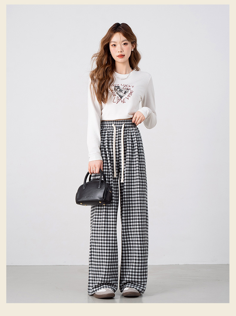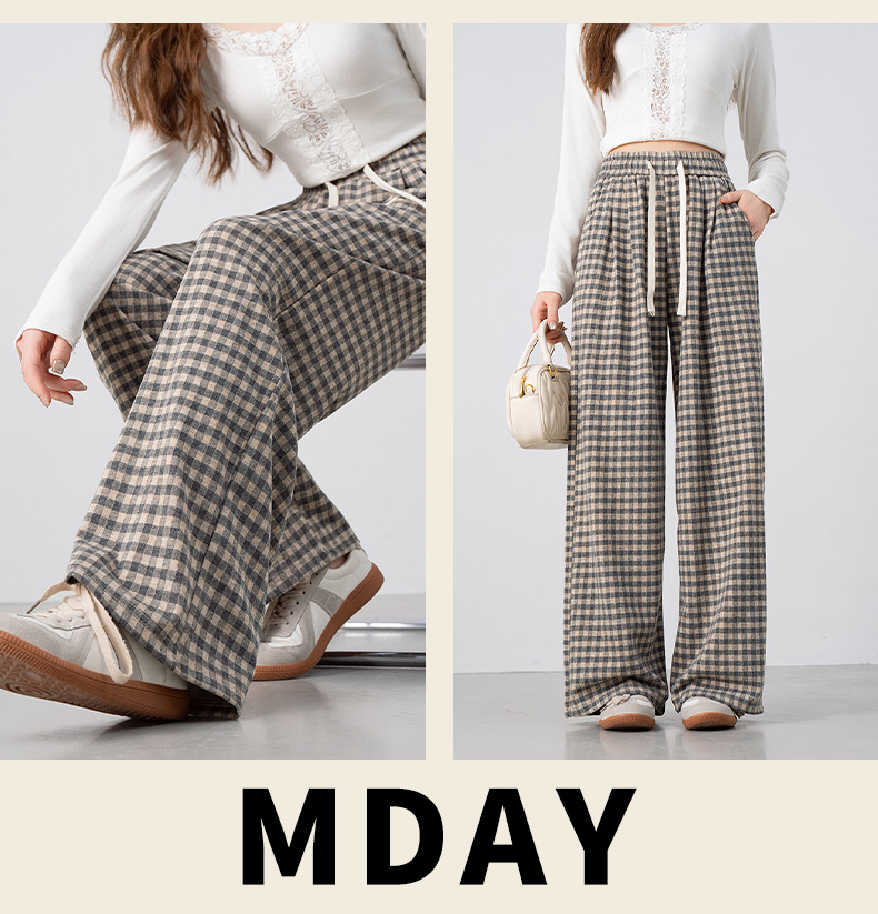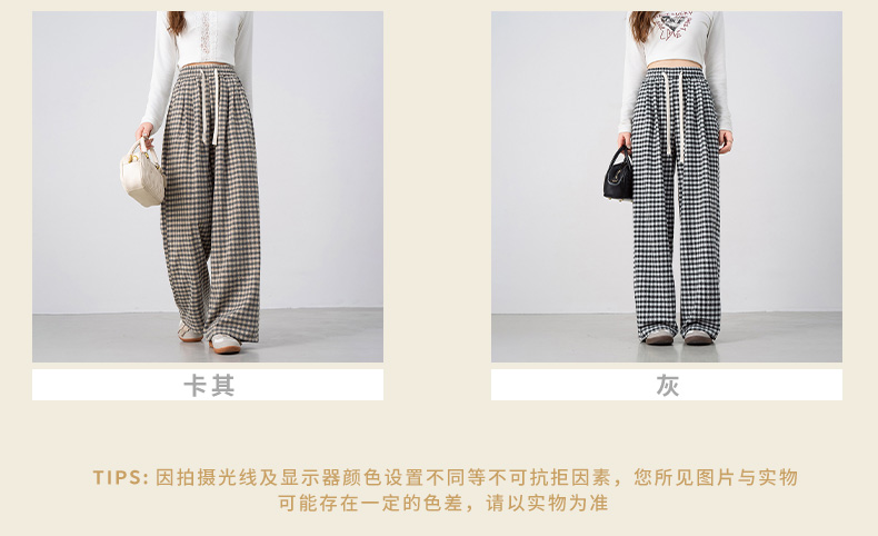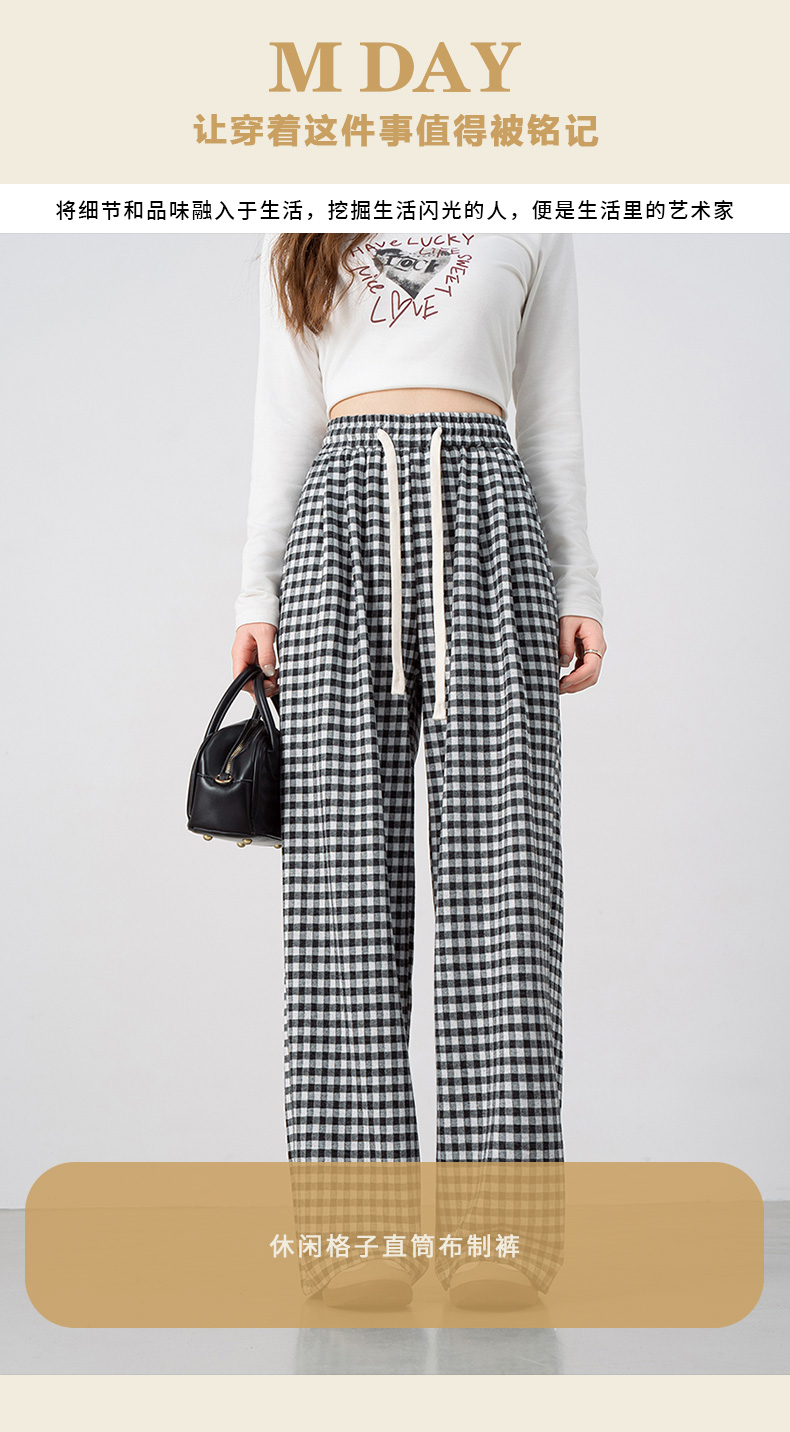休闲格子直筒布制裤-纪念日百货门店同款165143780