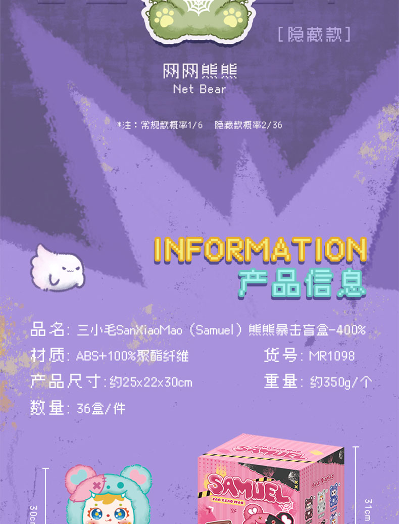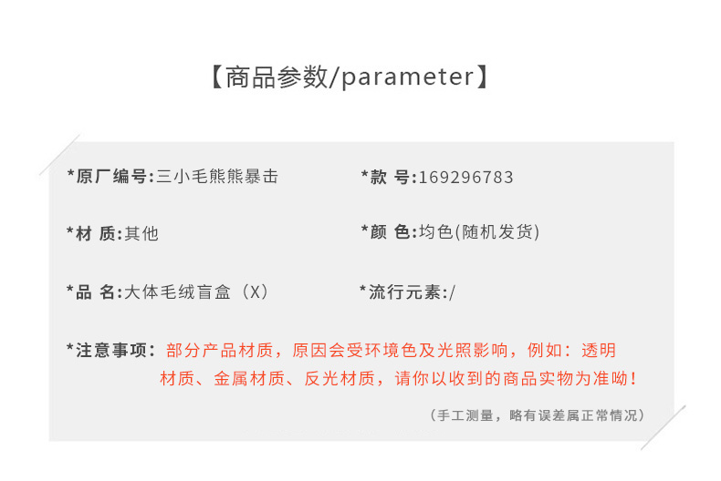 三小毛熊熊暴击大体毛绒盲盒-纪念日百货门店同款169296783