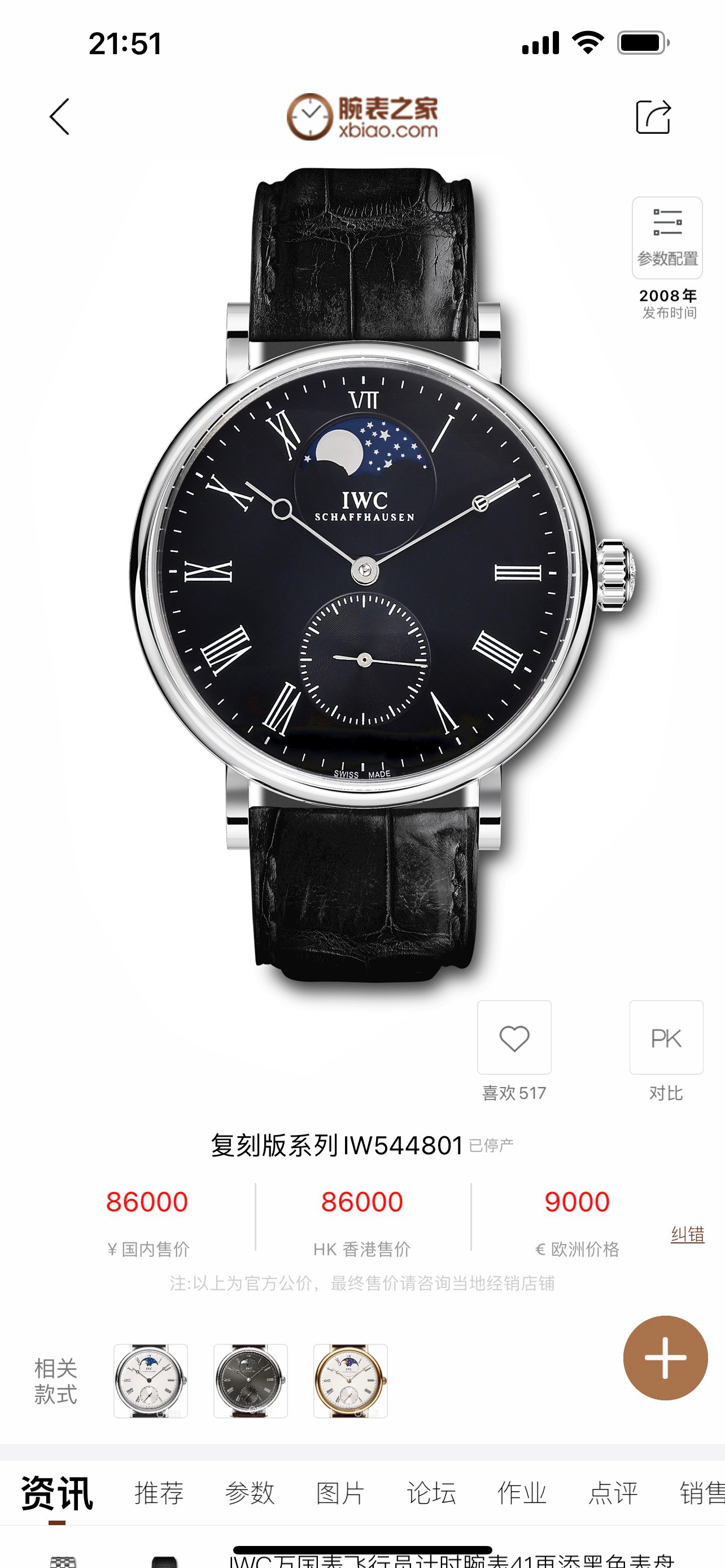 IWC旗下耀眼的明星,万国长动能月相专家。
