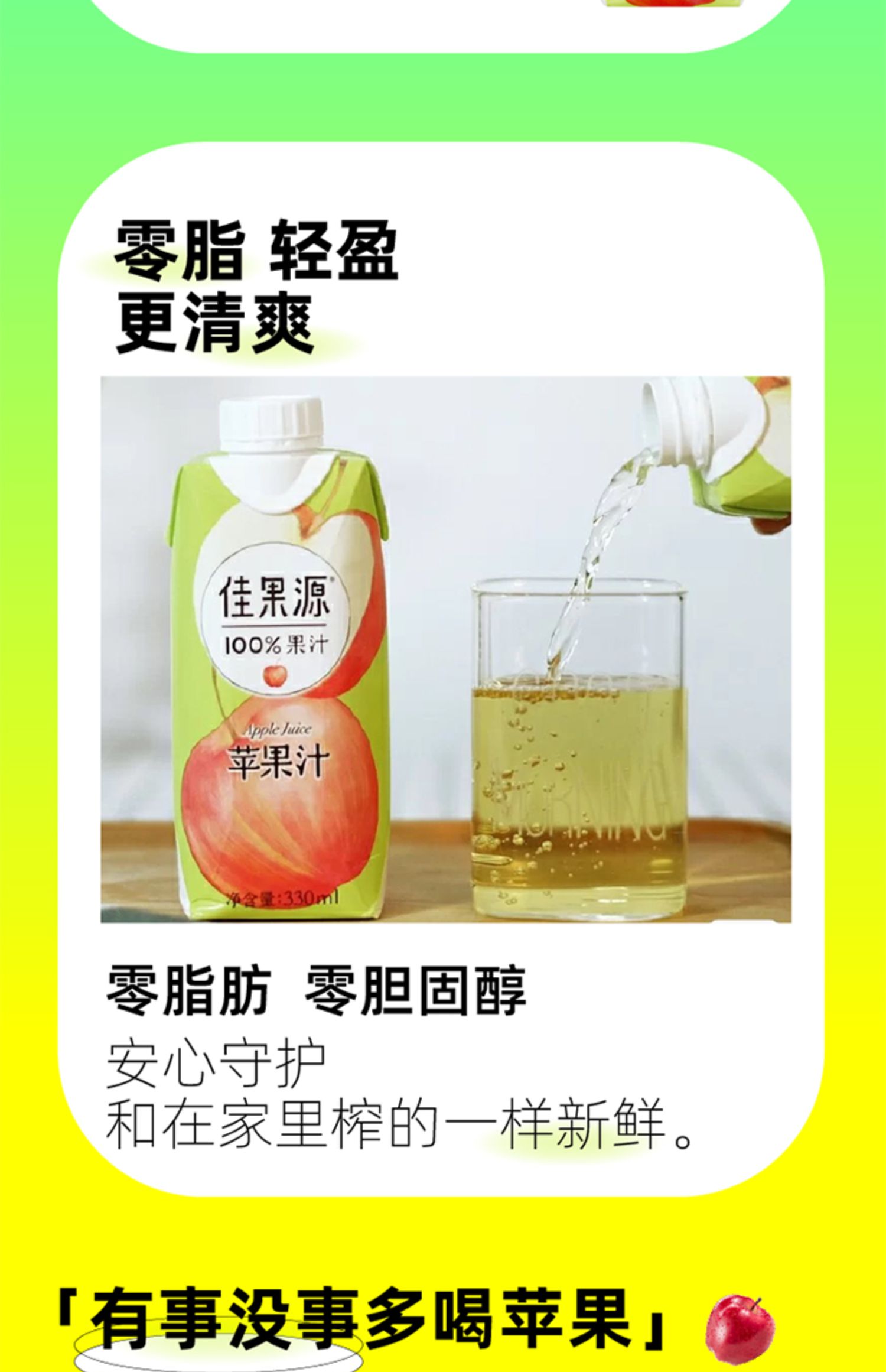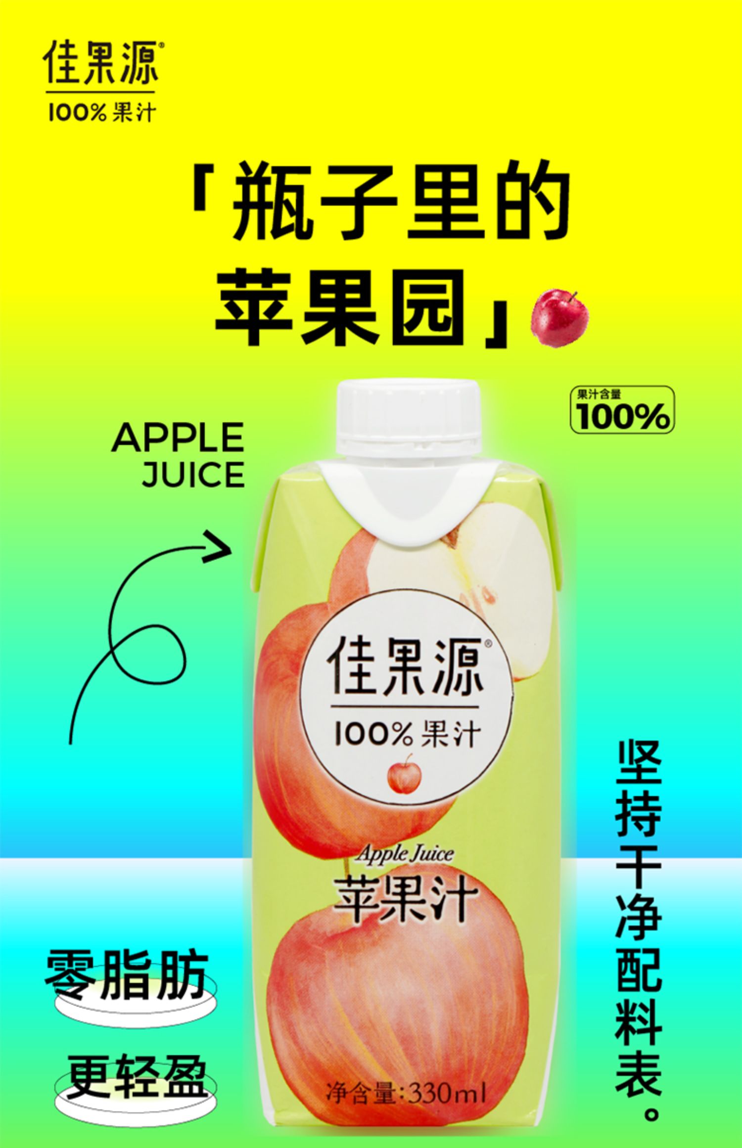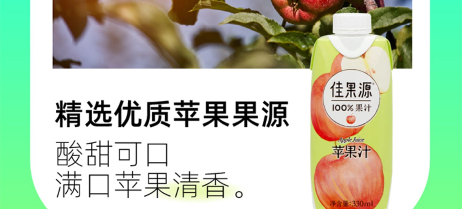 佳果源佳农100%苹果汁饮品浓缩果汁还原0脂饮料整箱330ml*12瓶