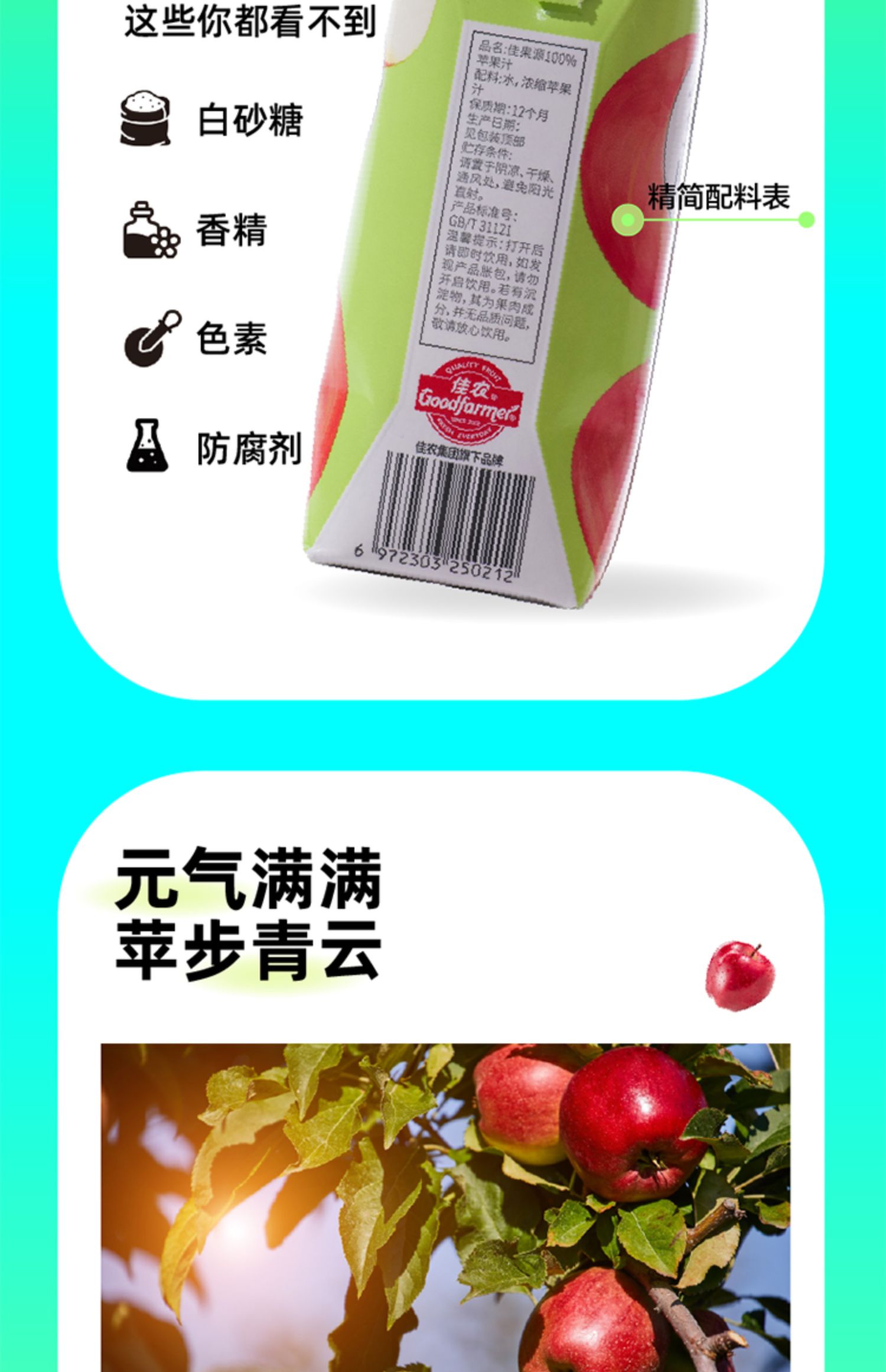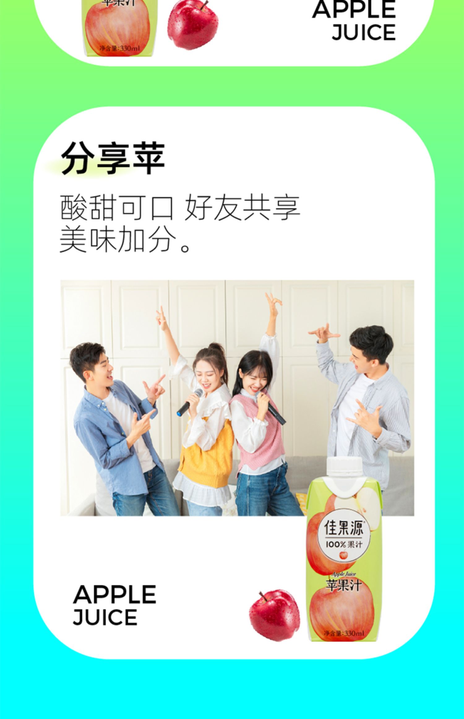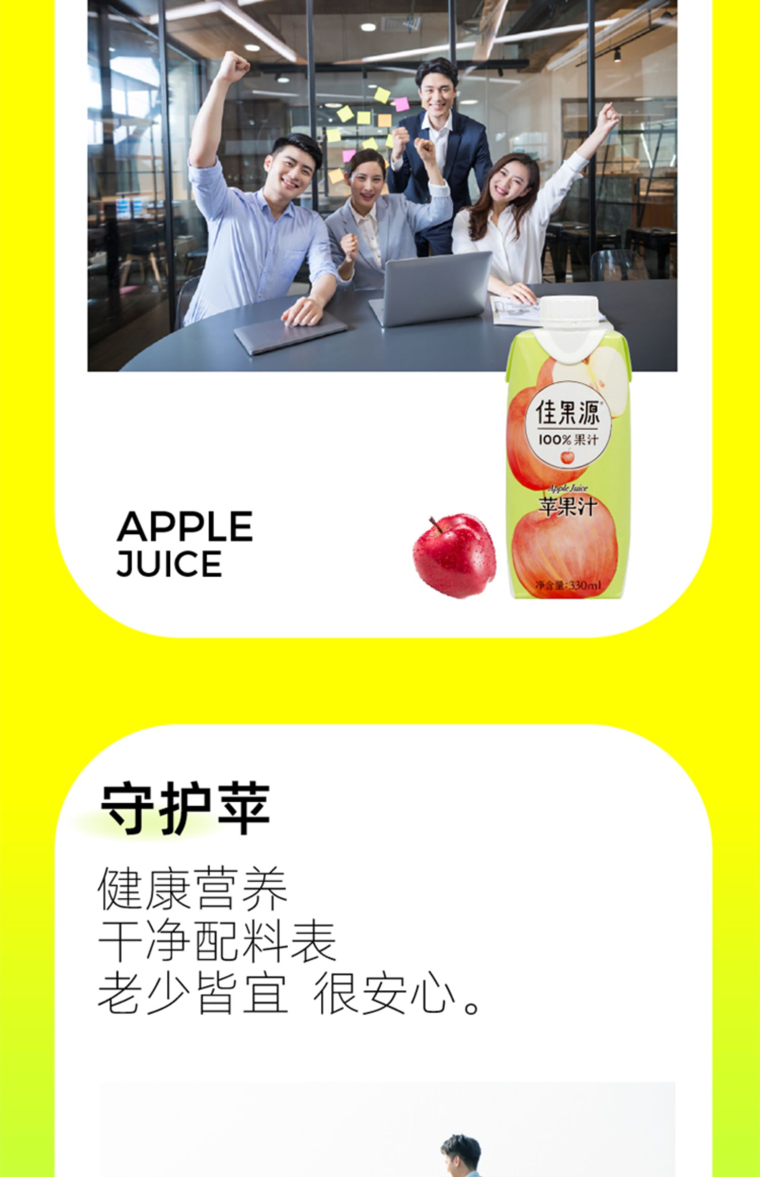 佳果源佳农100%苹果汁饮品浓缩果汁还原0脂饮料整箱330ml*12瓶