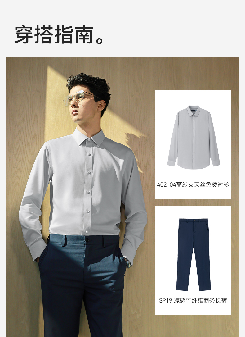 十如仕100支高支纱八字领提花免烫长袖衬衫-元龙39系列-501-01