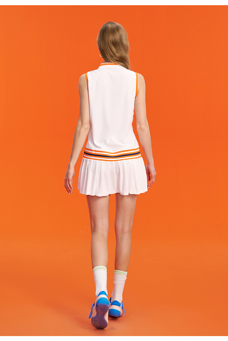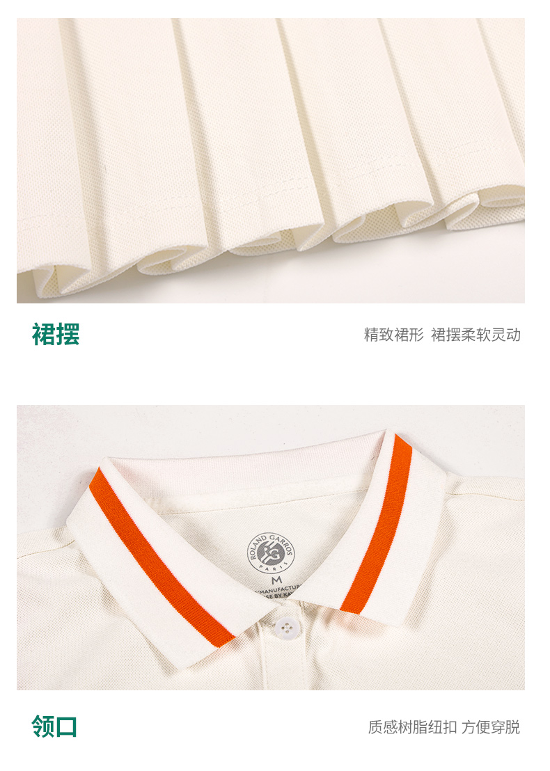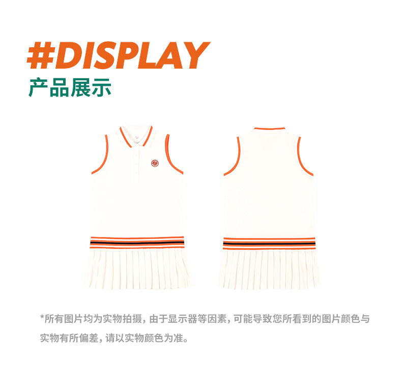 罗兰加洛斯女士连衣裙夏季新款polo领无袖网球运动休闲百褶裙