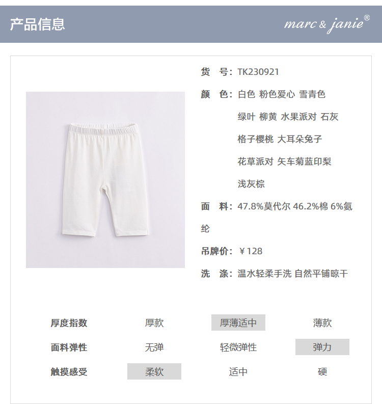 马克珍妮夏装新款 女童透气弹力打底裤薄款 儿童七分裤外穿230921