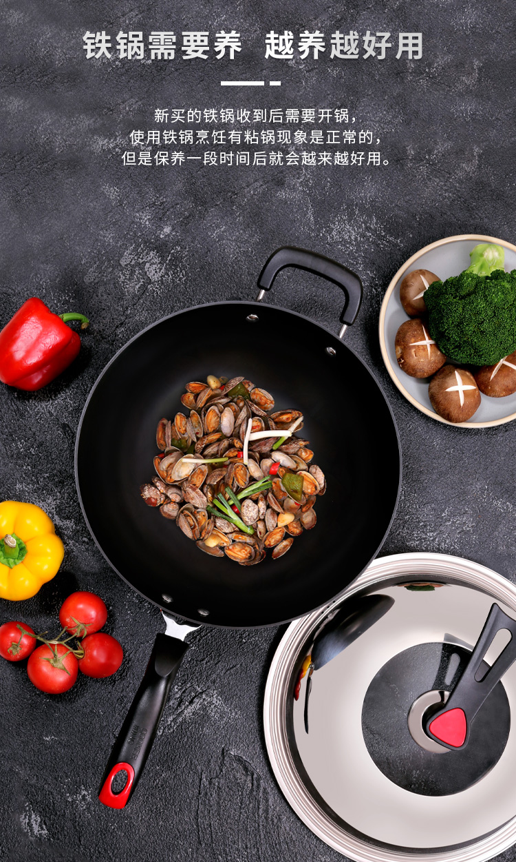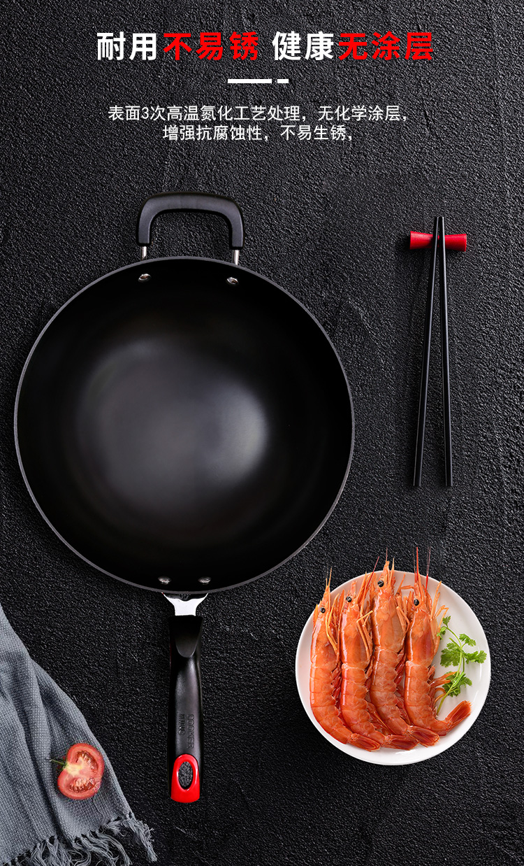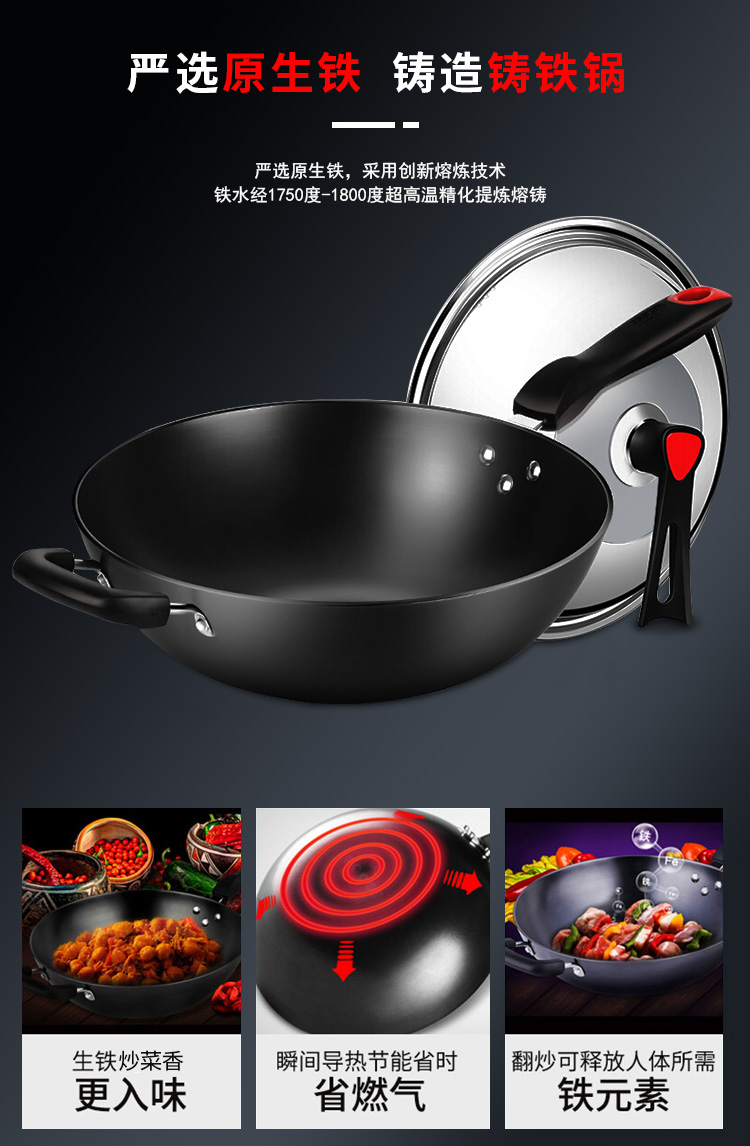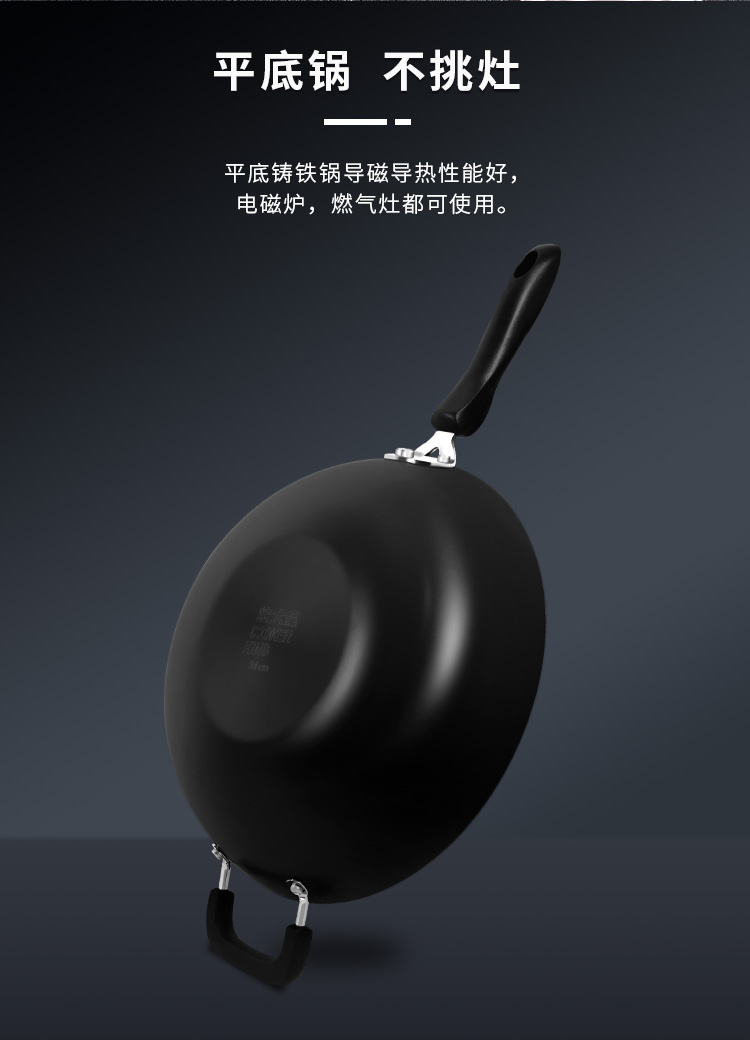 炊大皇炒锅34cm铁锅无涂层烹饪锅具铸铁炒菜锅电磁炉燃气煤气灶明火通用C34D2