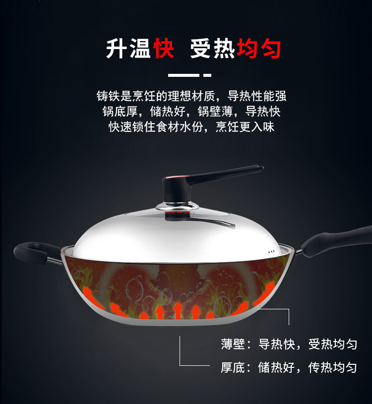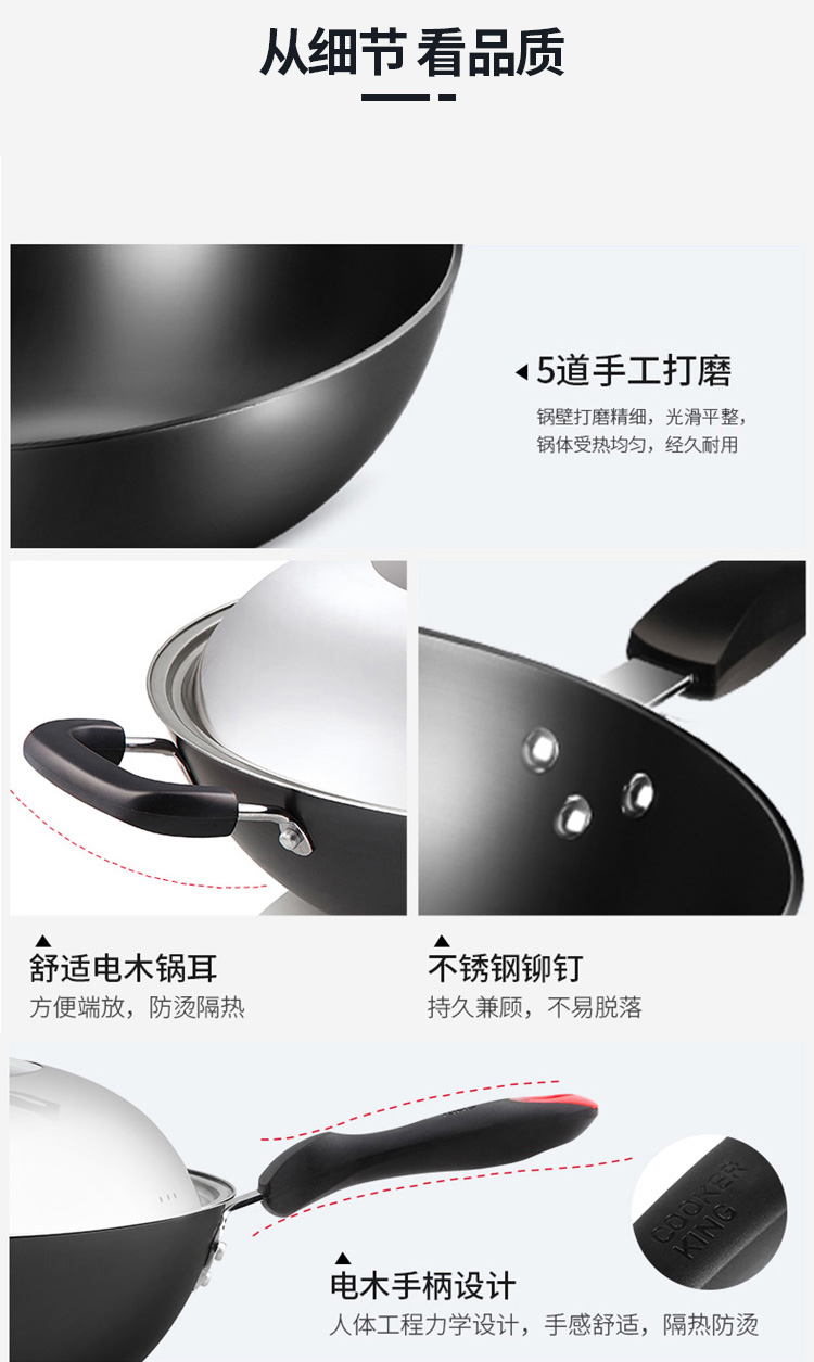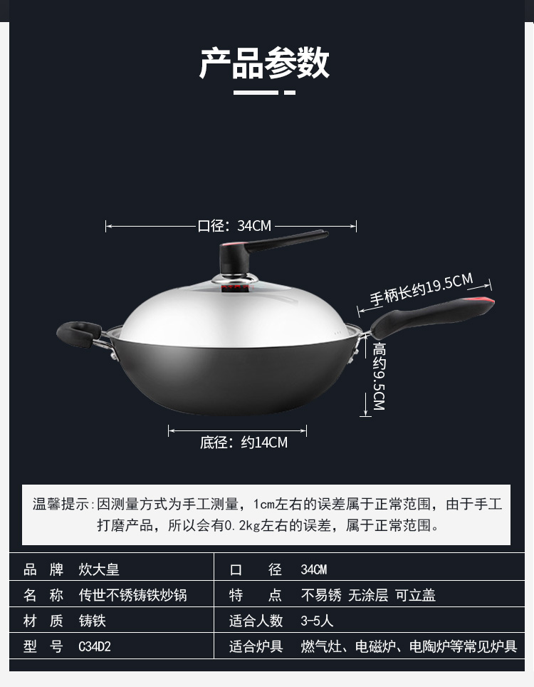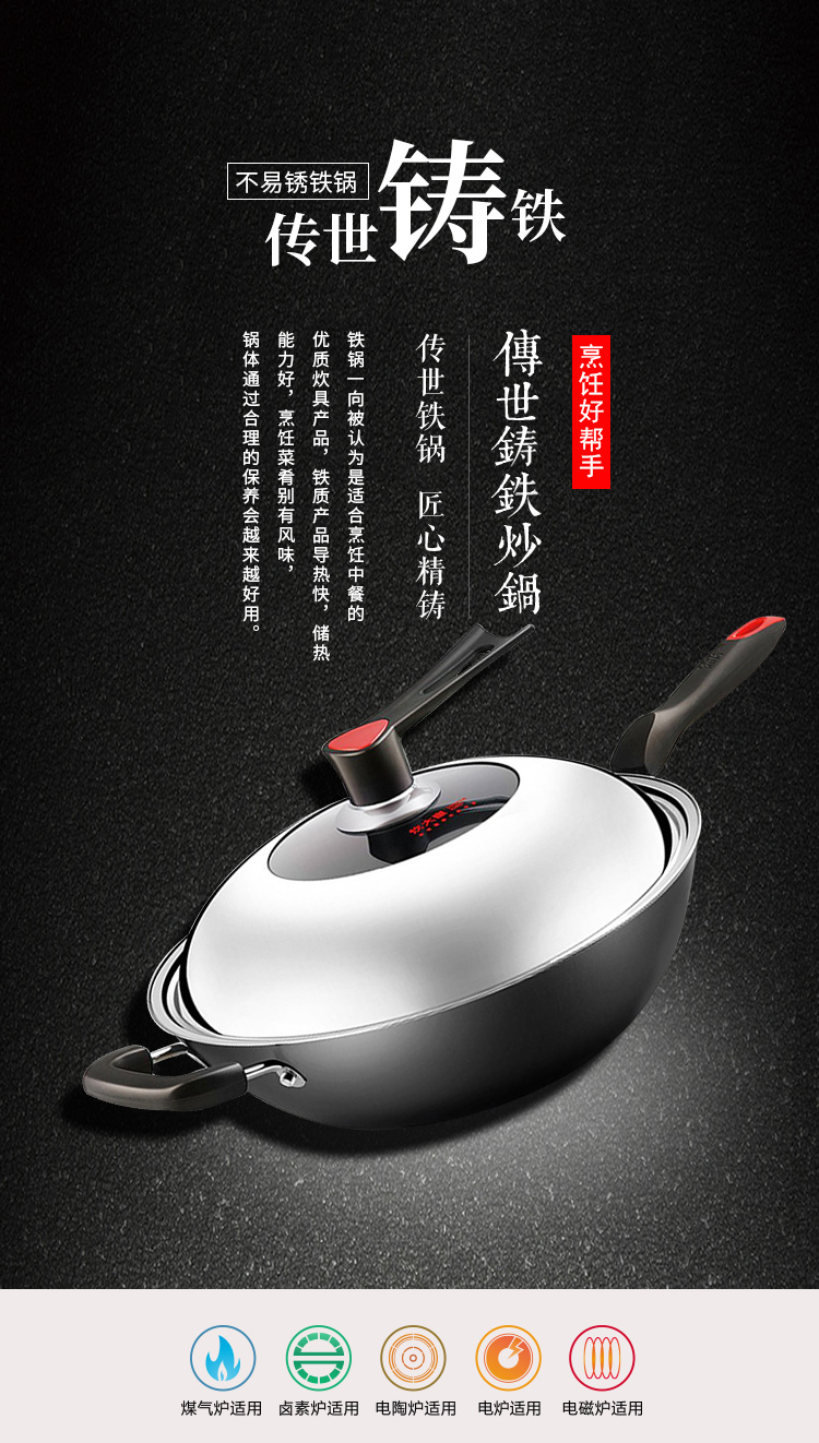 炊大皇炒锅34cm铁锅无涂层烹饪锅具铸铁炒菜锅电磁炉燃气煤气灶明火通用C34D2