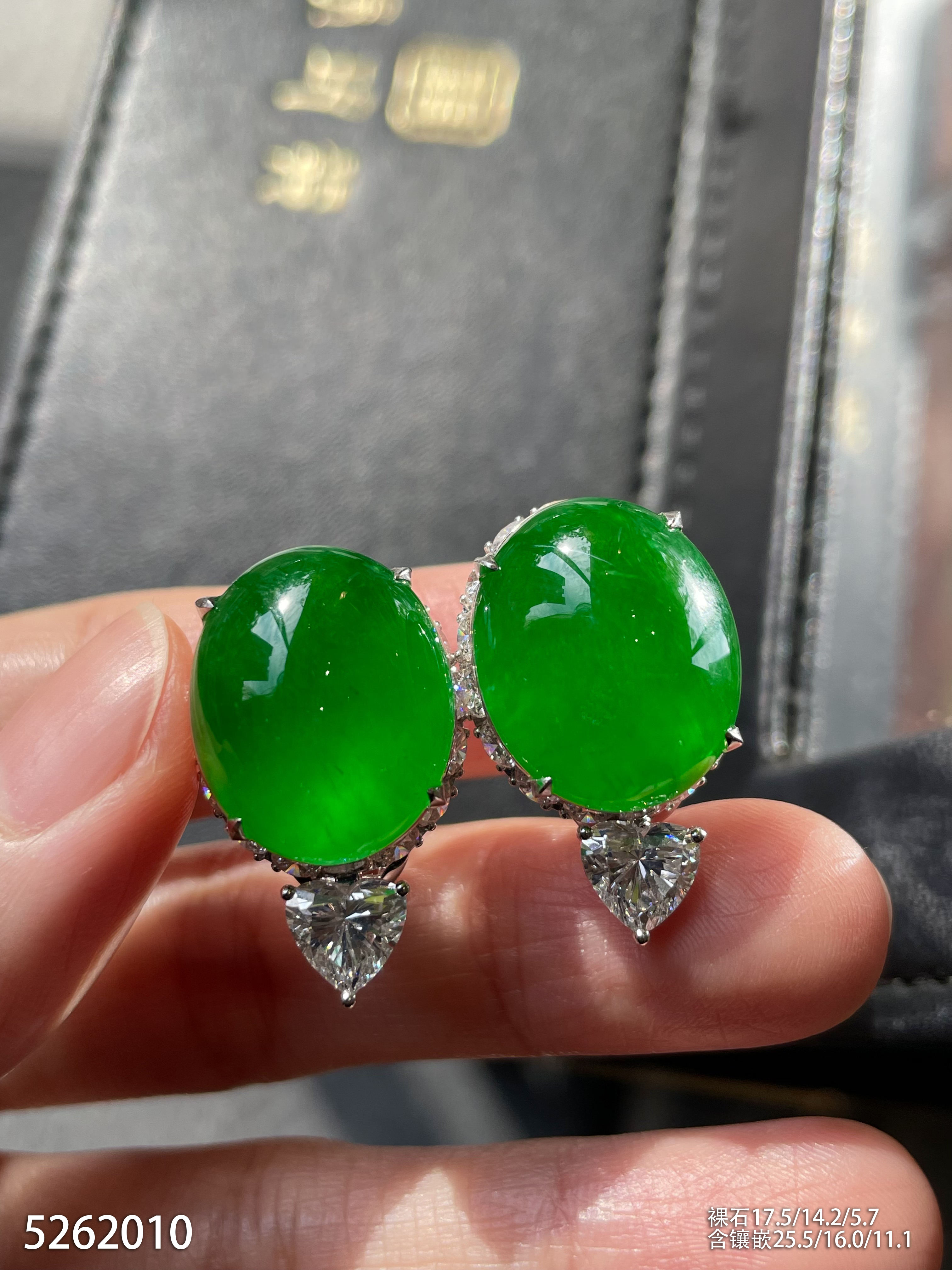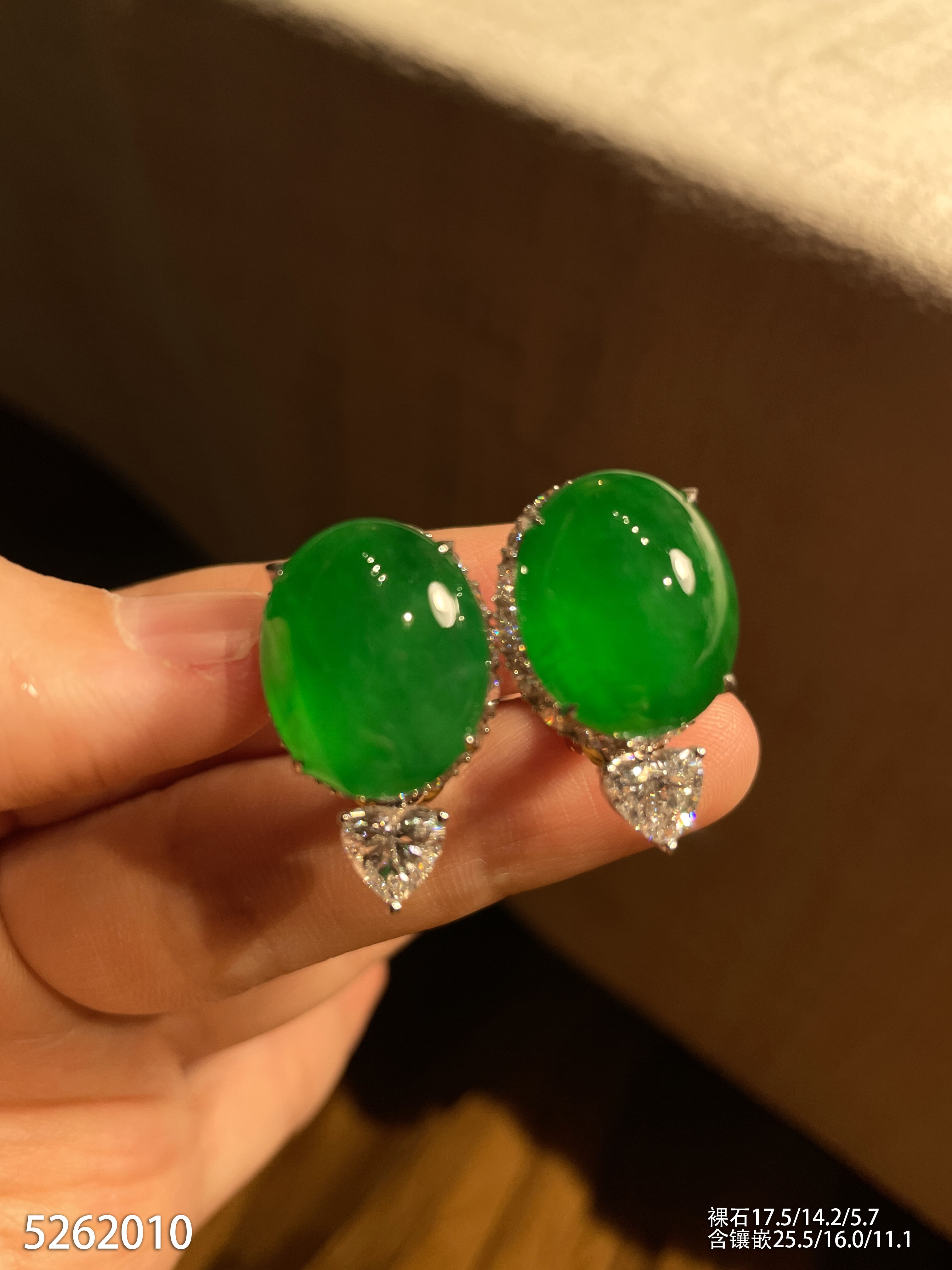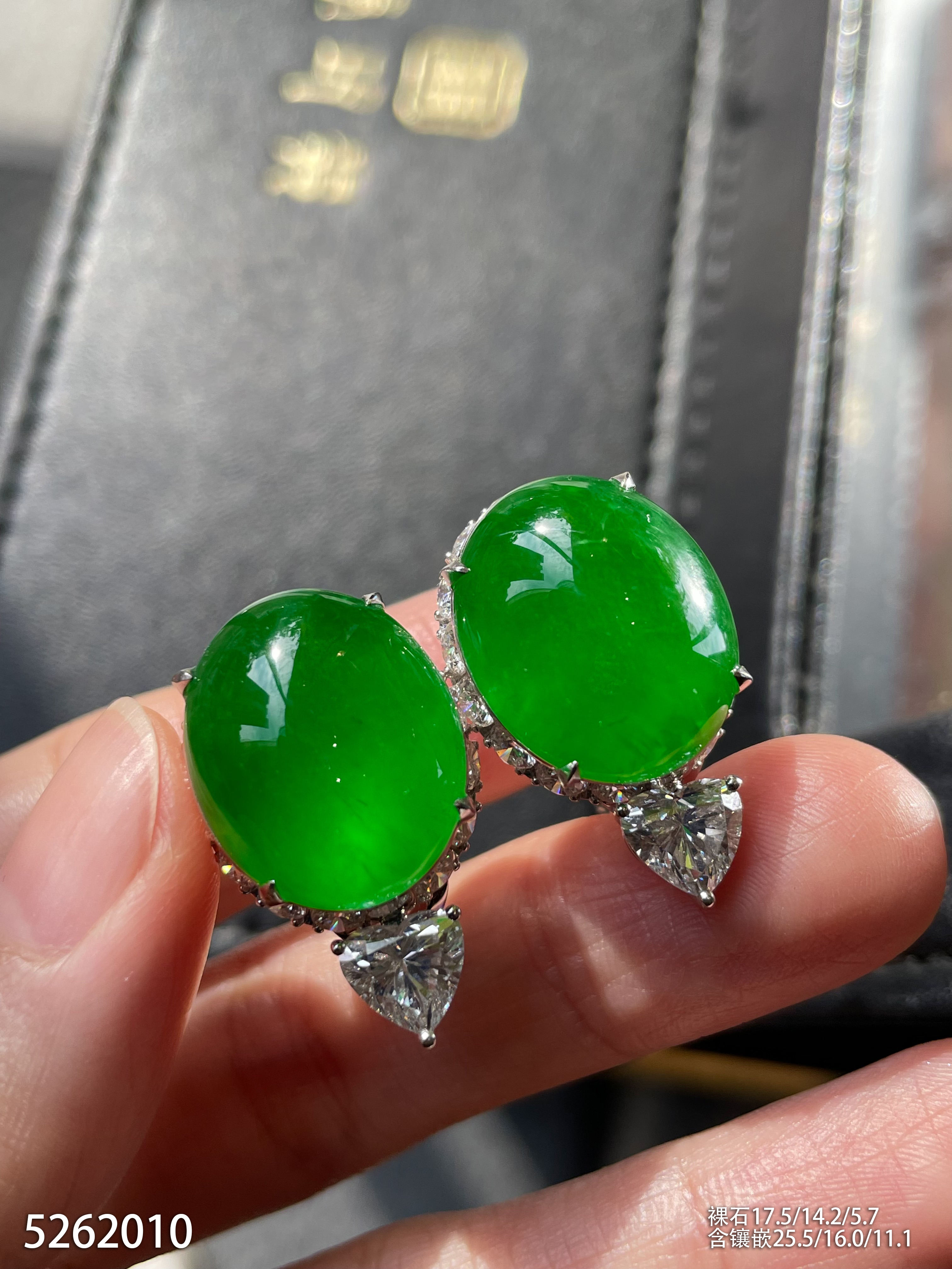老坑艳绿蛋面耳钉【5262010】具体价格微信咨询