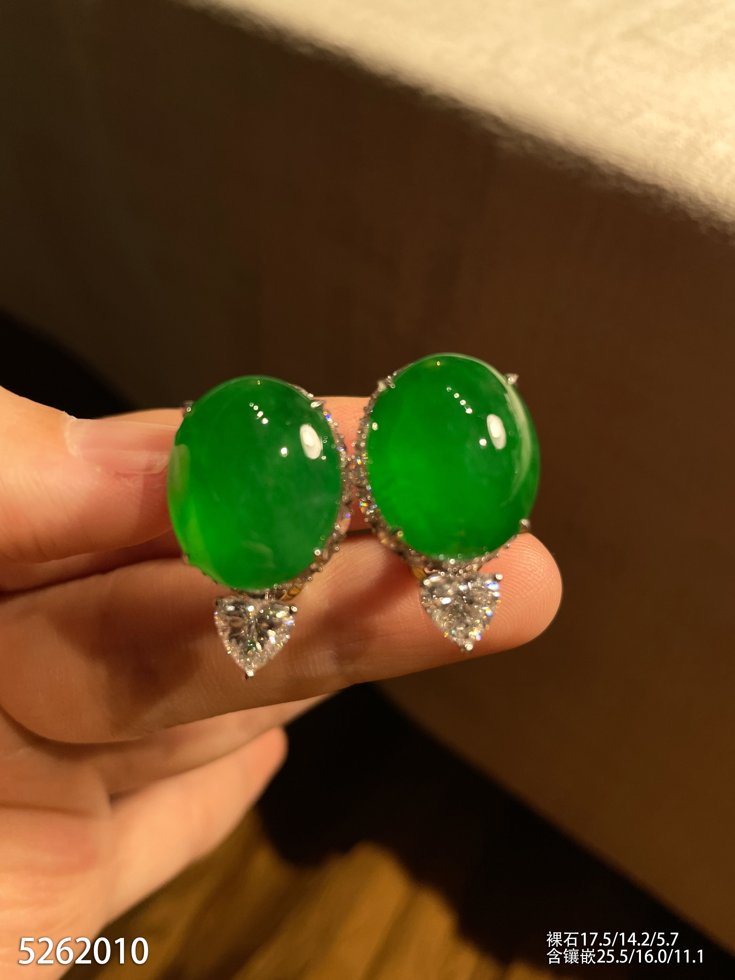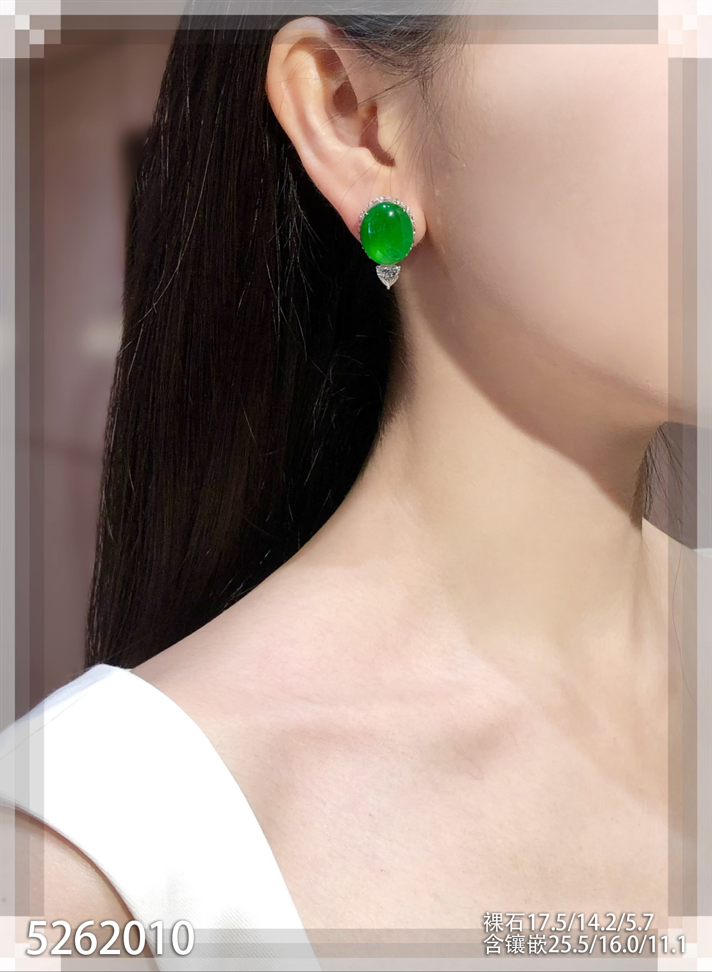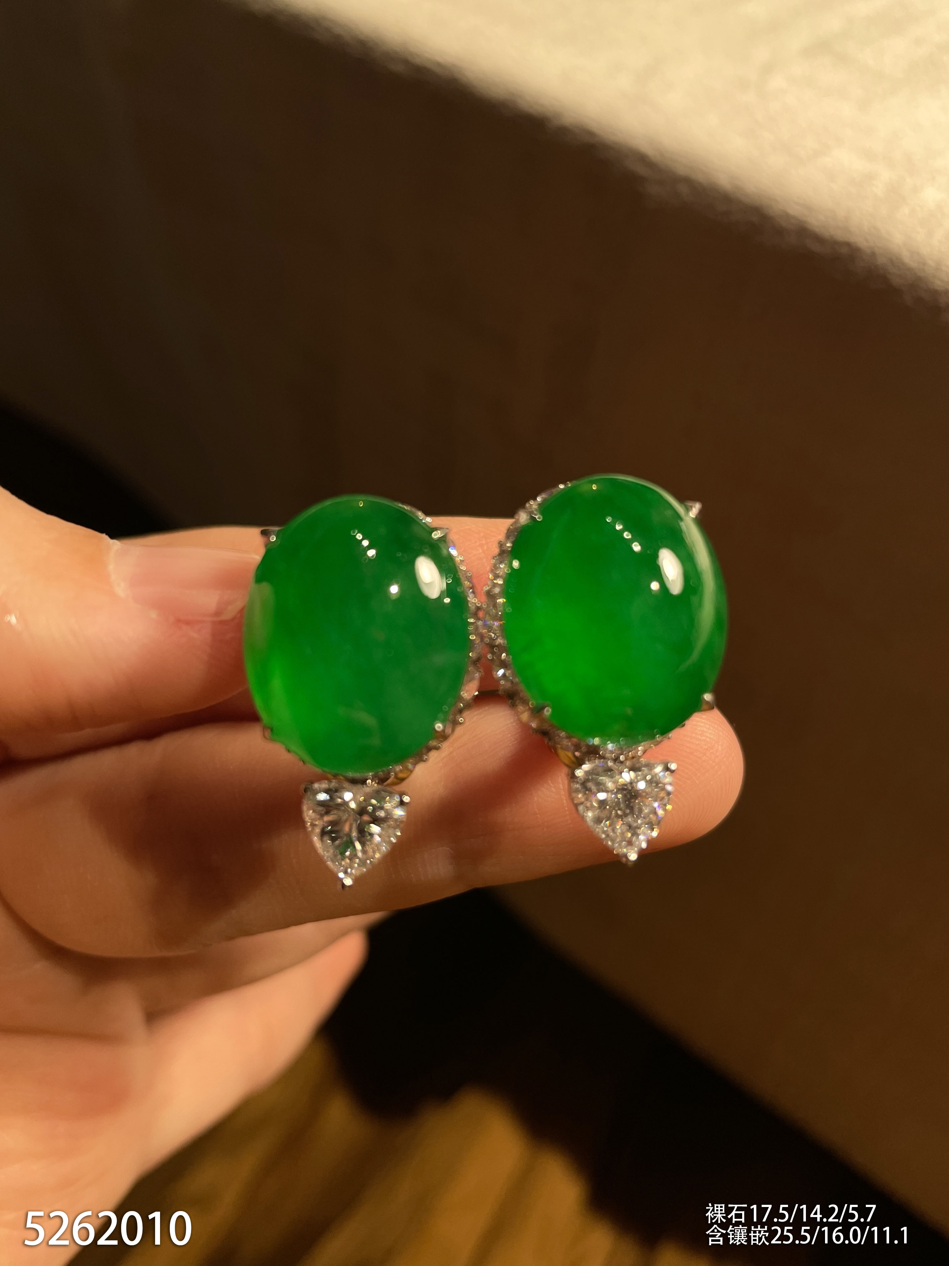 老坑艳绿蛋面耳钉【5262010】具体价格微信咨询