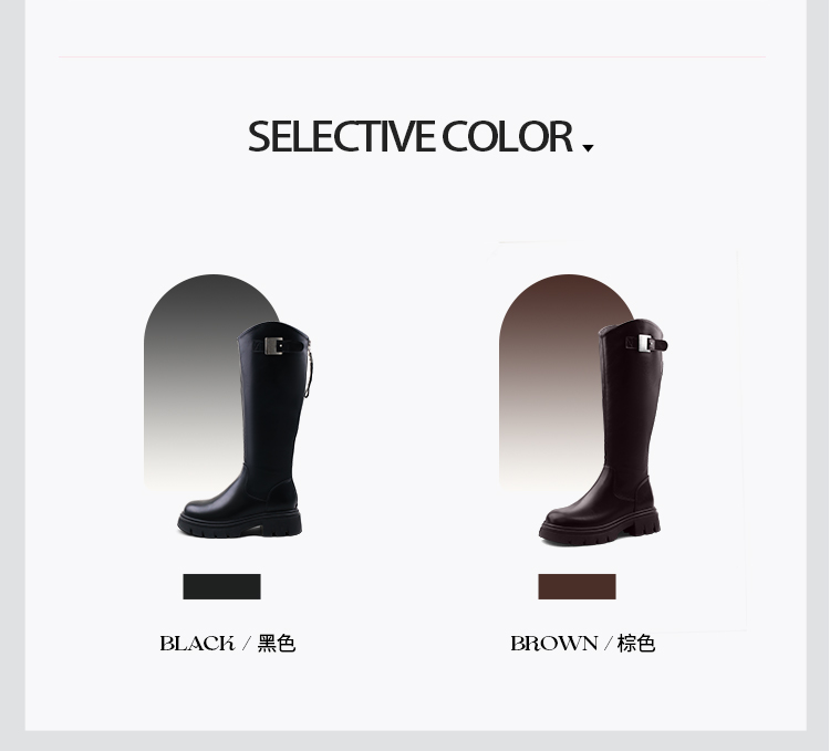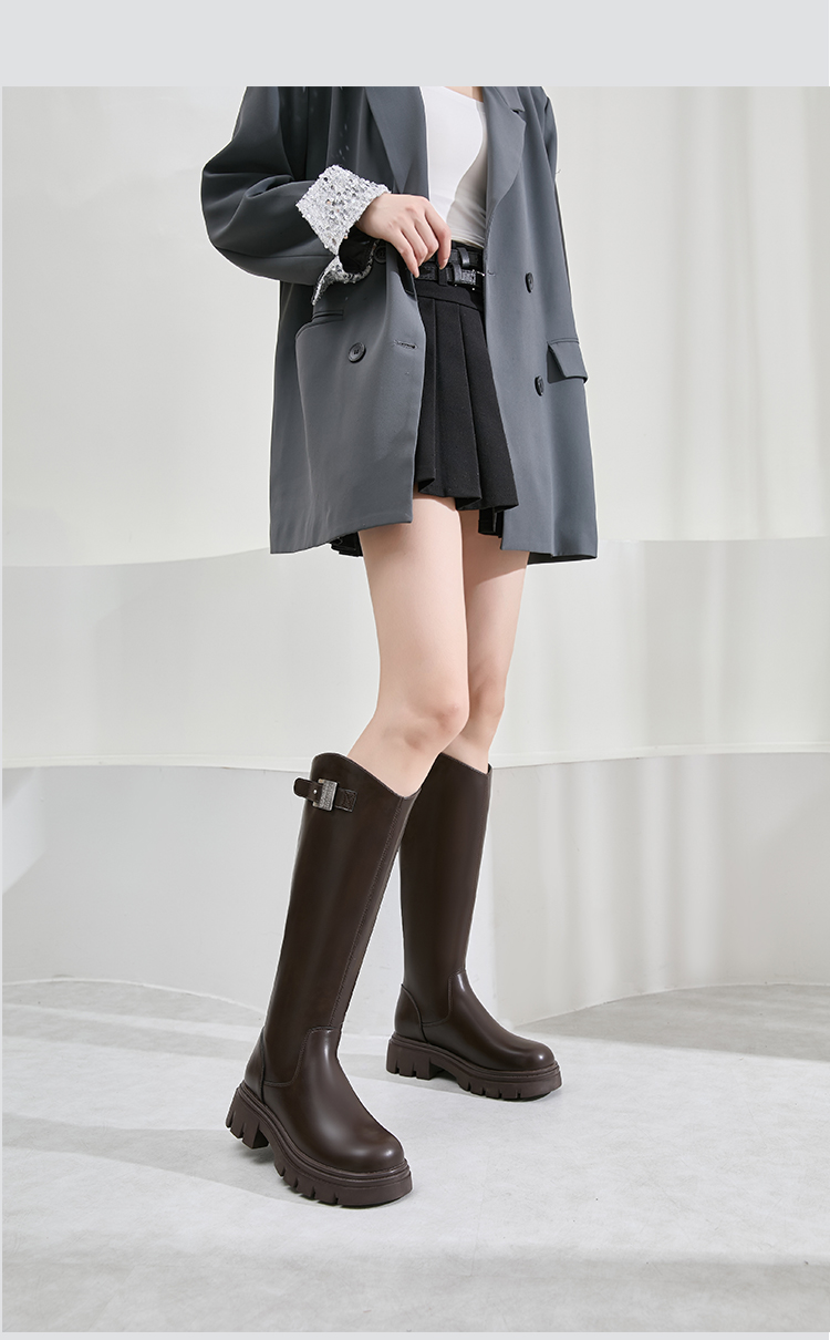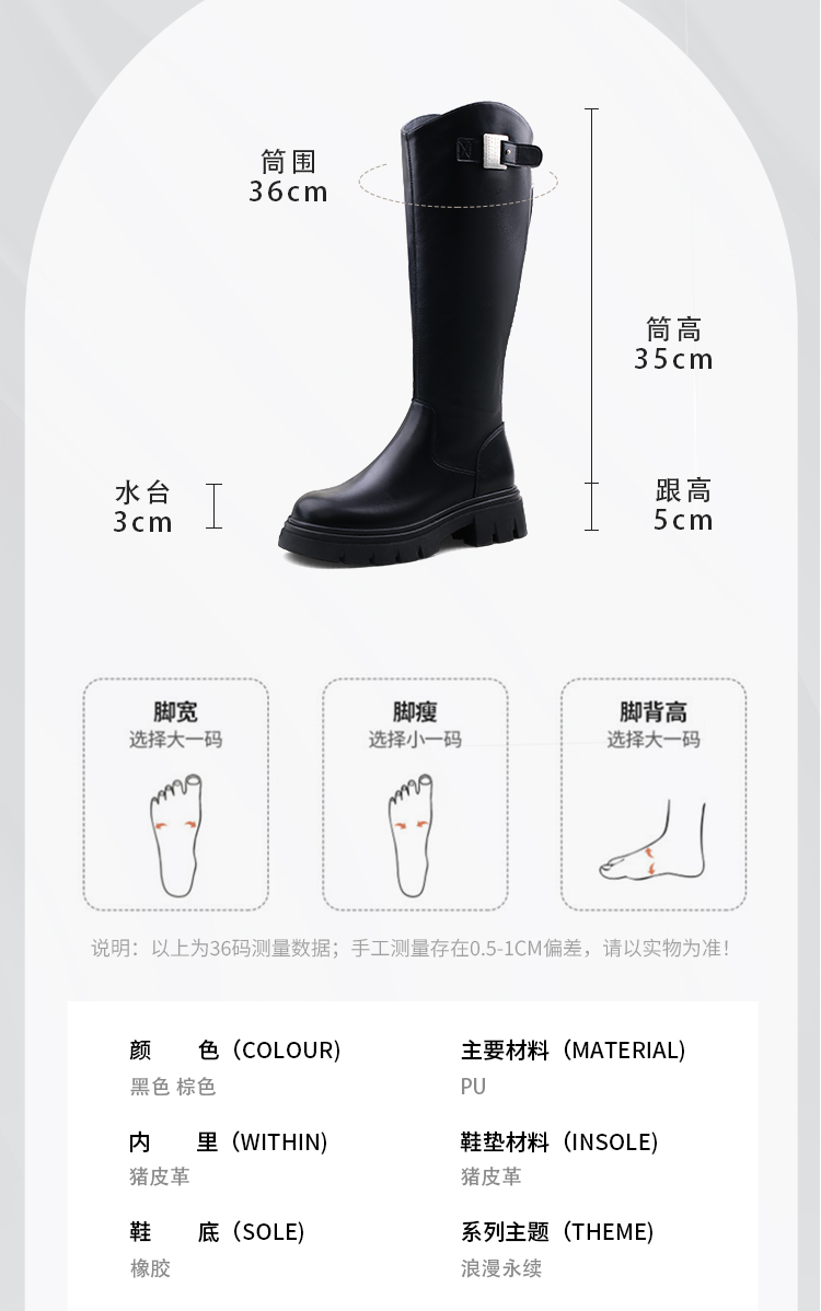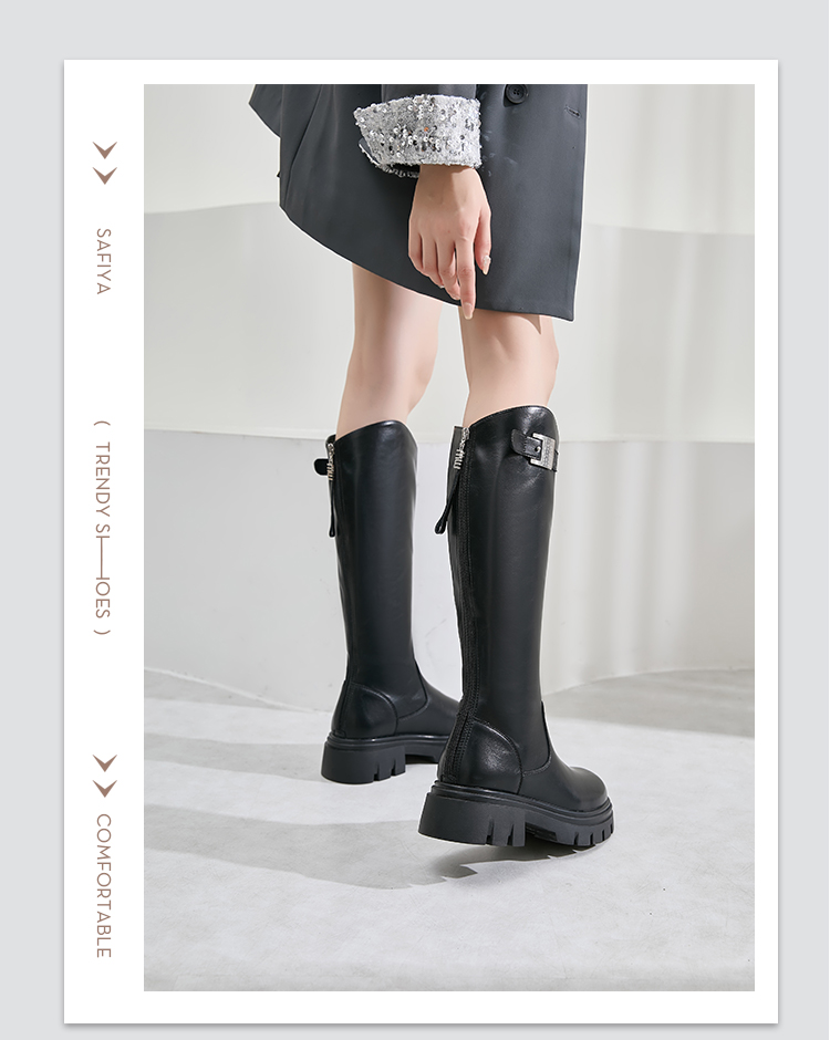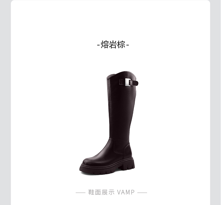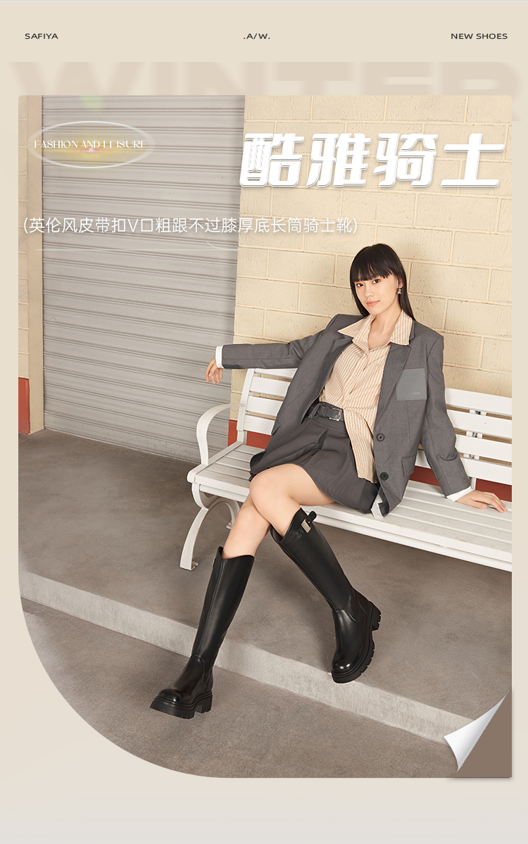 Safiya/索菲娅2024冬英伦风皮带扣V口粗跟不过膝厚底长筒骑士靴 SF44117257