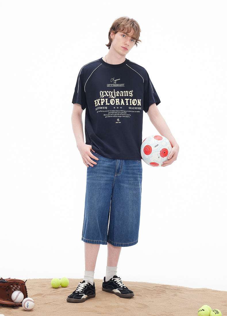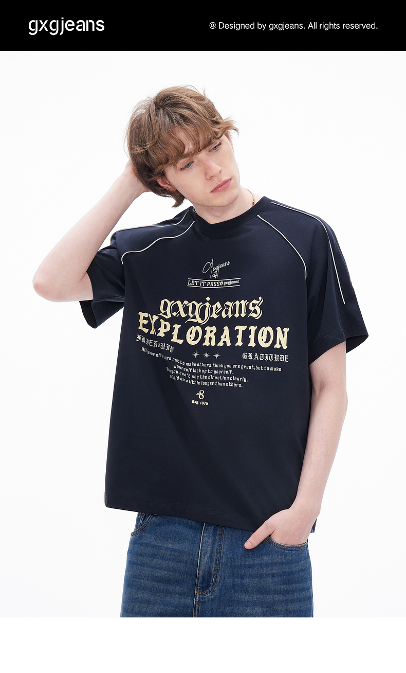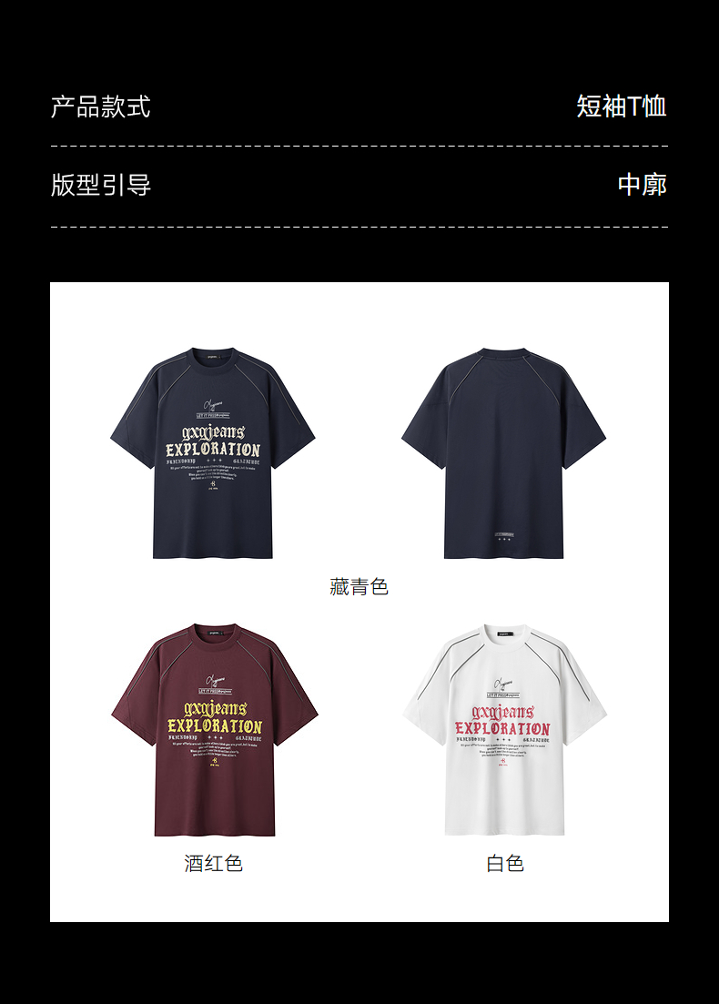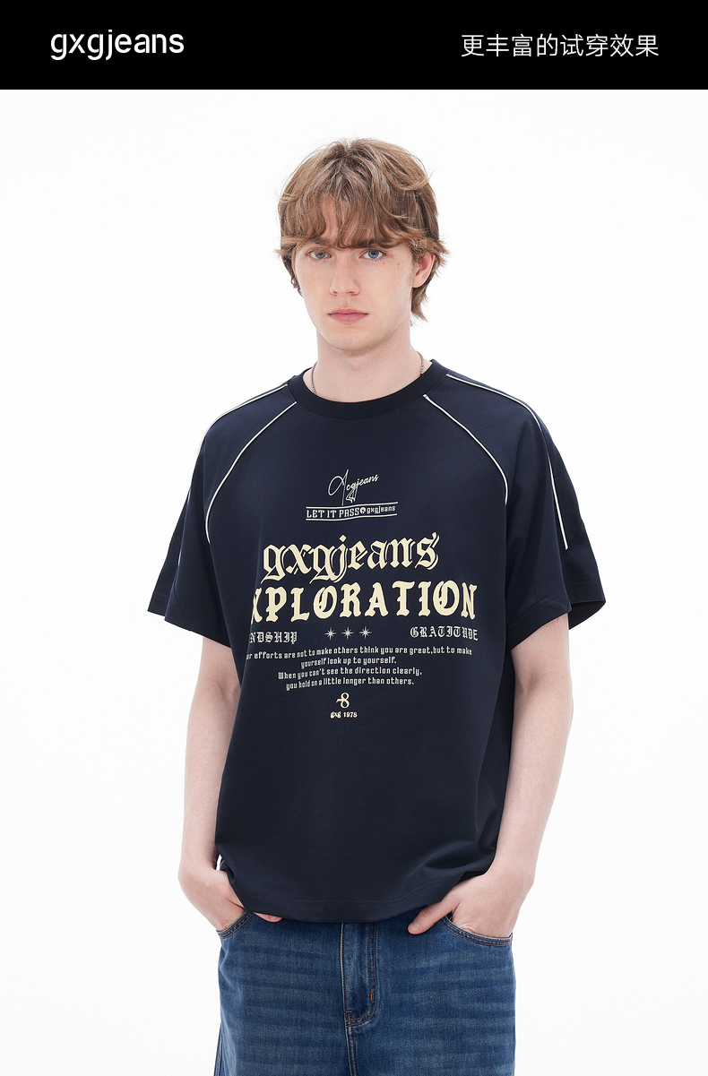 gxgjeans男装 多色线条撞色美式运动圆领短袖T恤男生 26夏新品