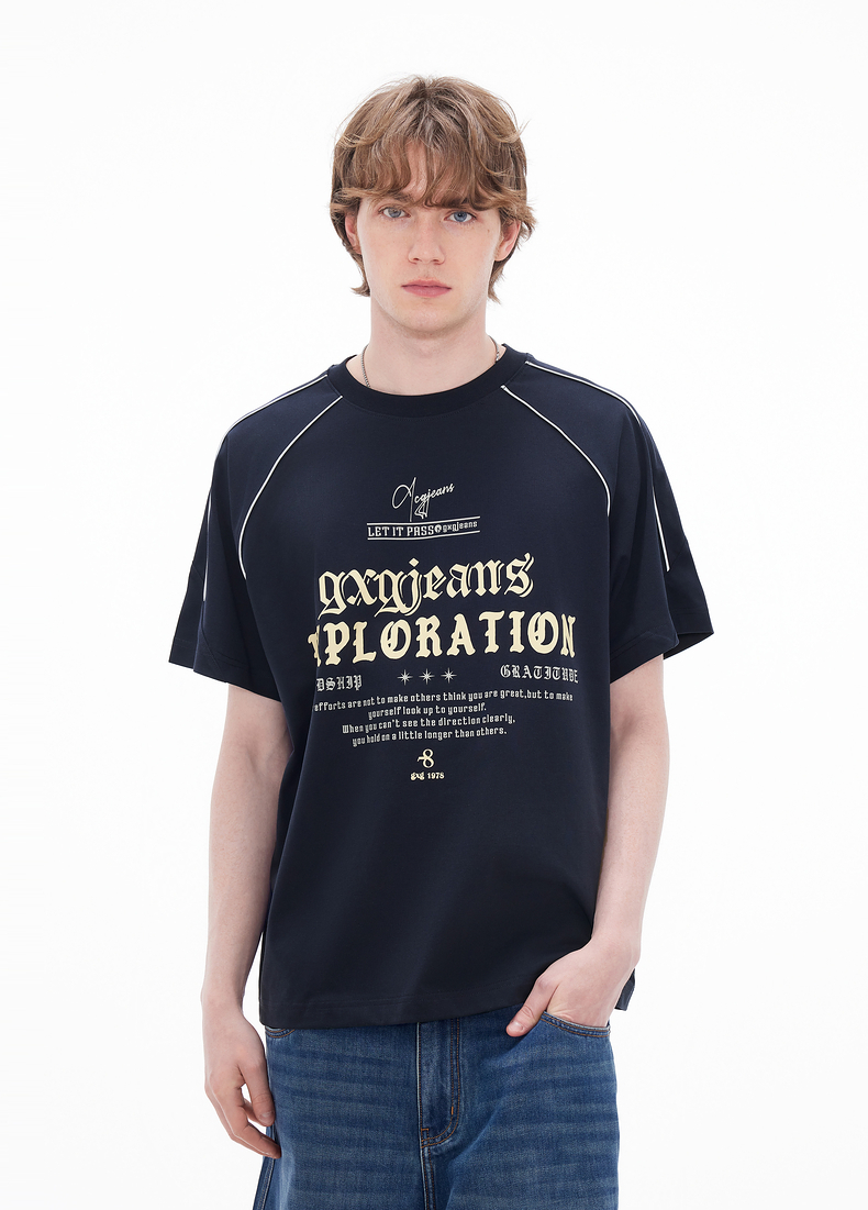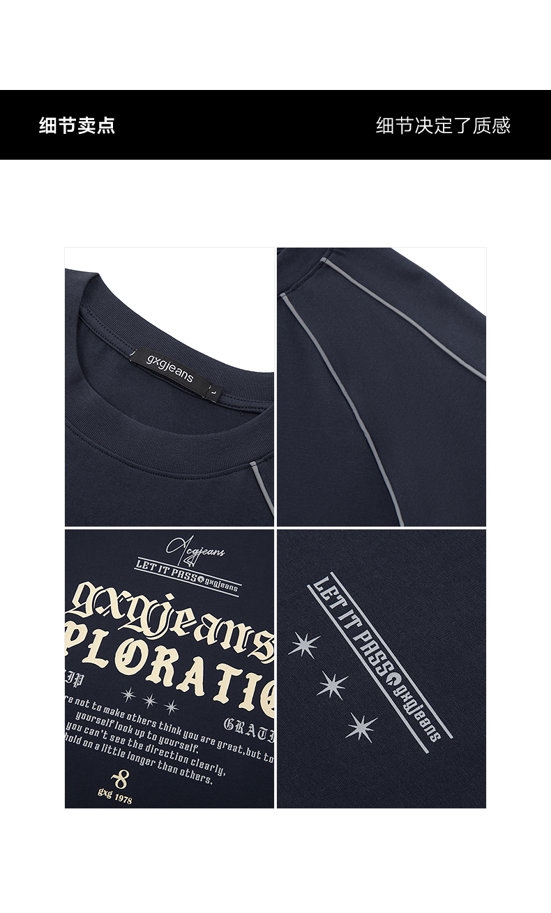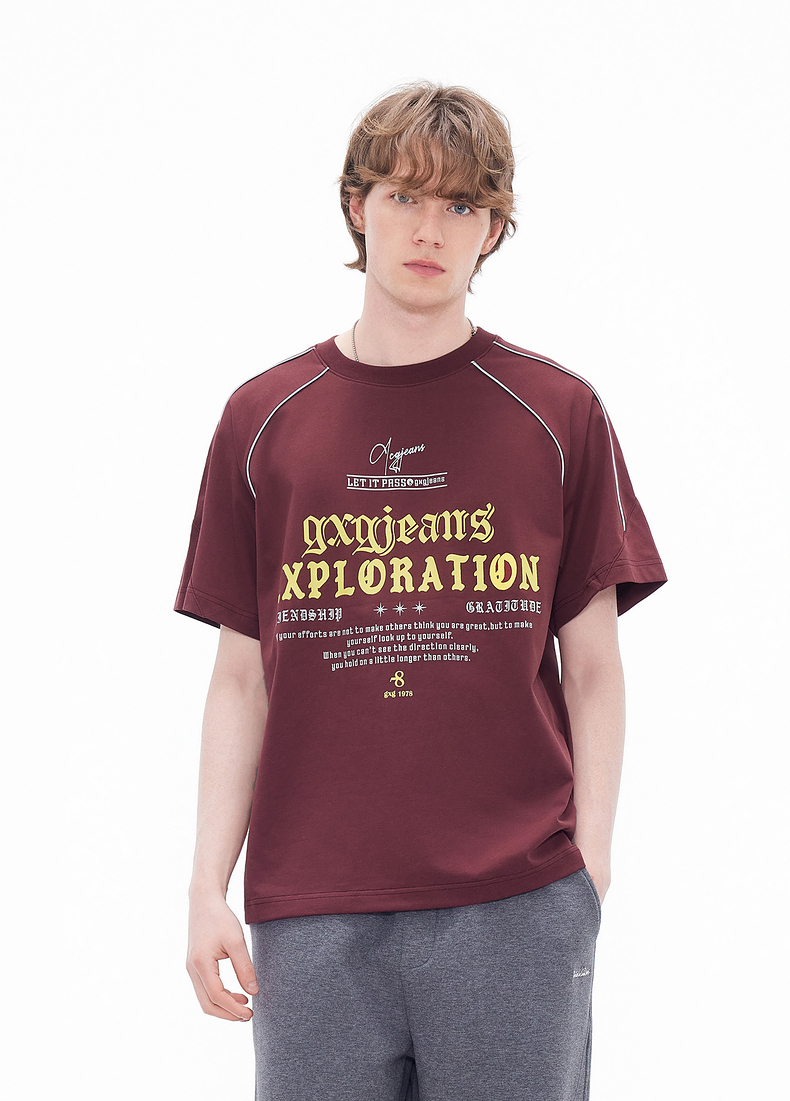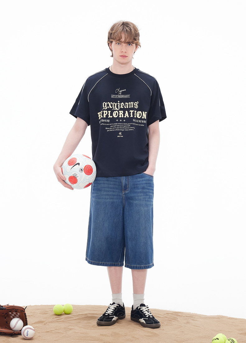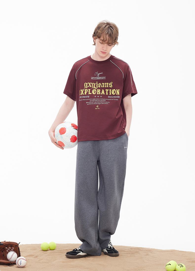gxgjeans男装 多色线条撞色美式运动圆领短袖T恤男生 26夏新品