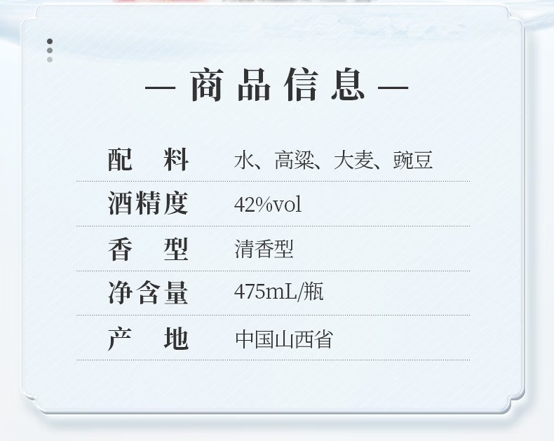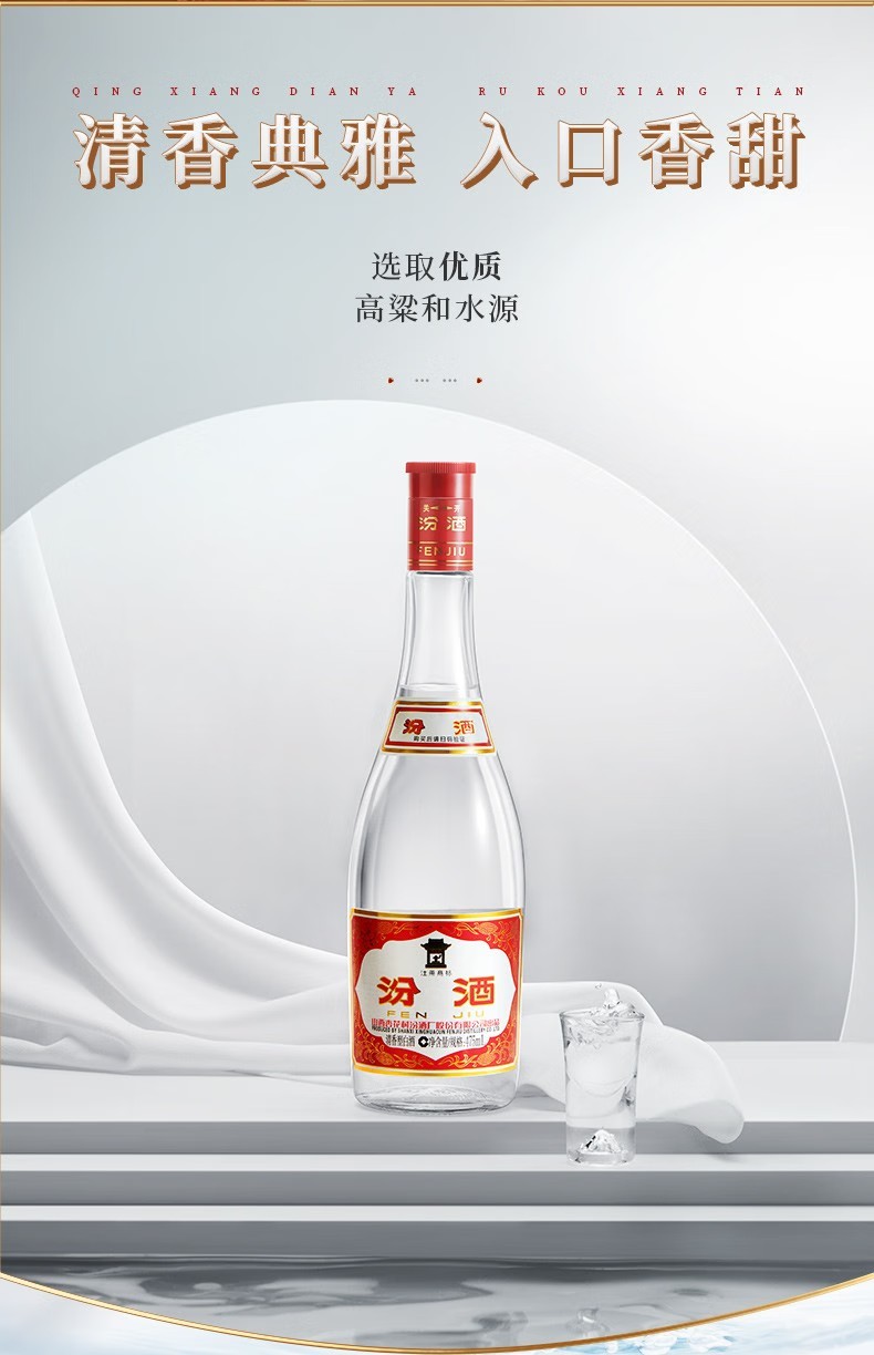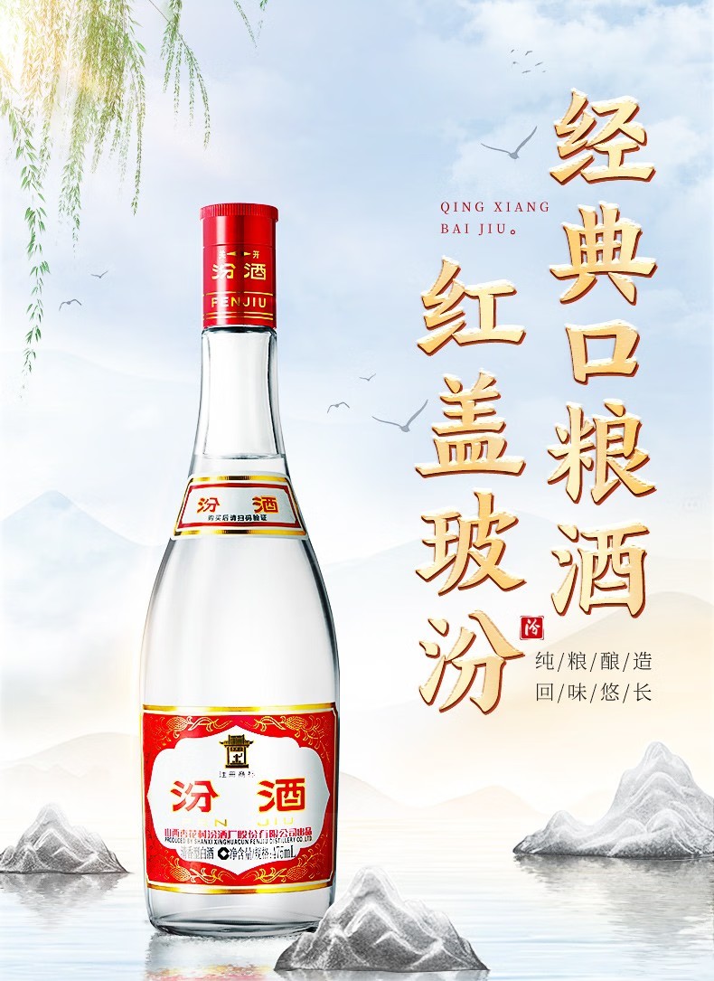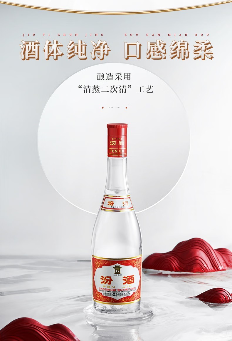 汾酒-红盖玻汾杏花村清香型白酒42度475ml