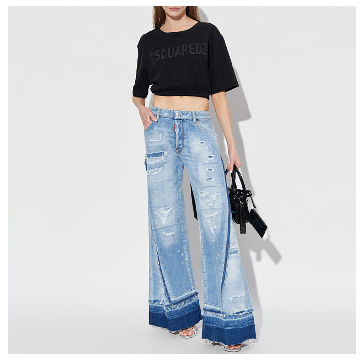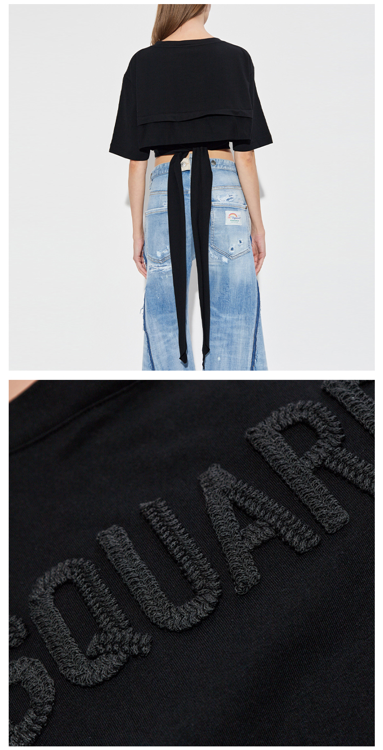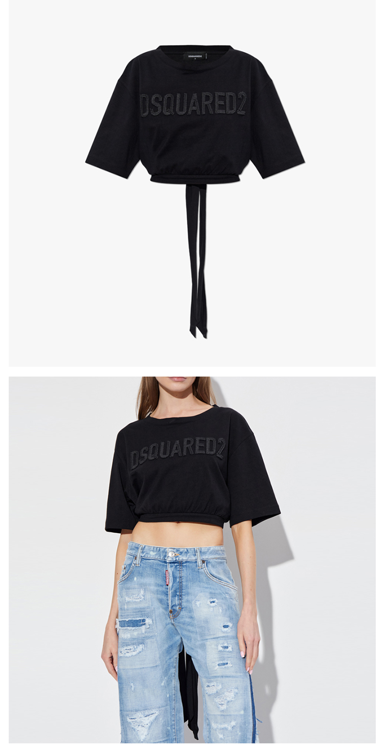 DSQUARED2 女士字母徽标刺绣棉质圆领短袖T恤 黑色 S72GD0583 D20020 900