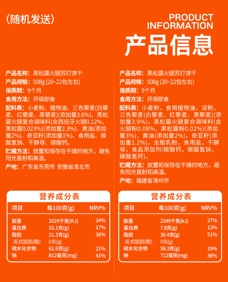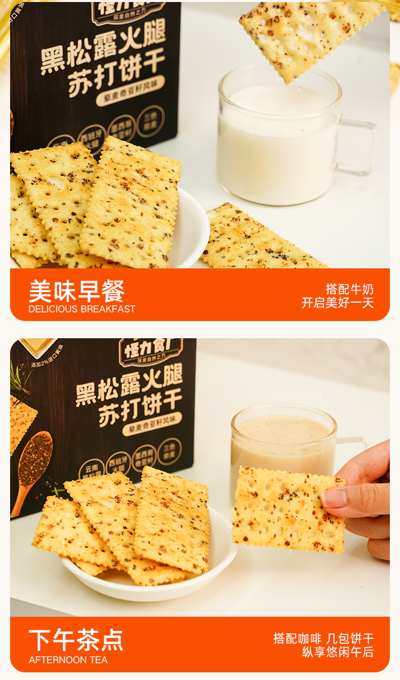 怪力食厂黑松露火腿苏打饼干 添加云南黑松露+西班牙火腿+墨西哥奇亚籽+三色藜麦 508g/箱 饼干界的“天花板”咸香酥脆 健康好吃 送礼首选