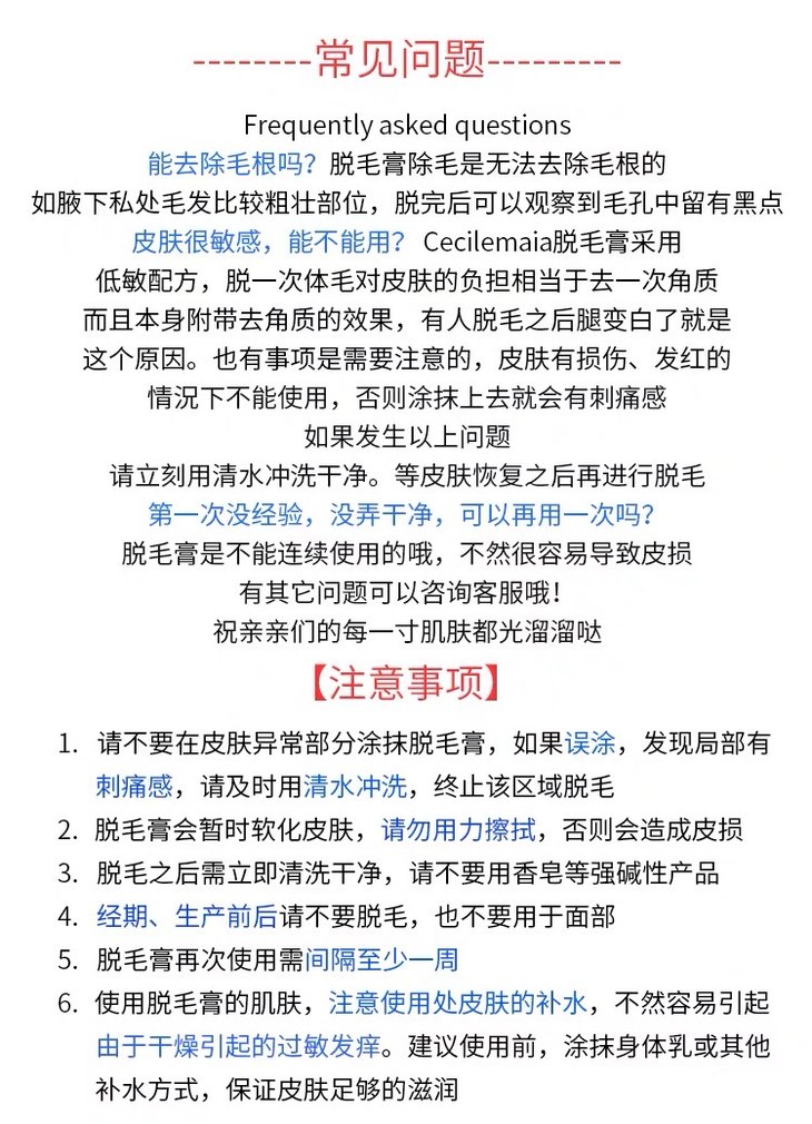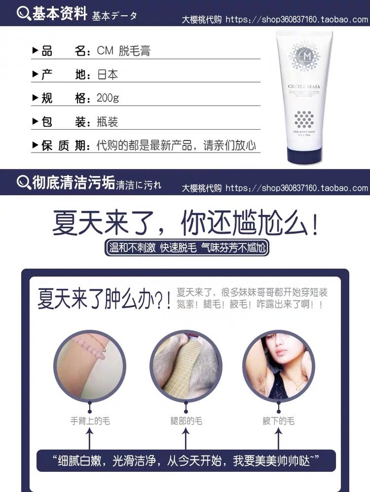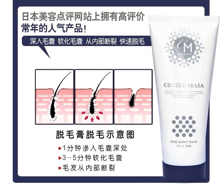 CM脱毛膏温和除毛抑毛日本CecileMaia脱毛膏200g
