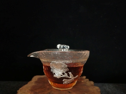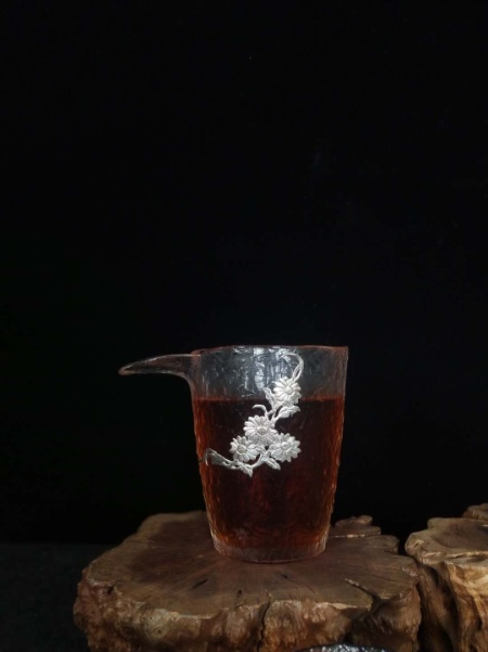 华艺银坊 雅菊四件套 可单选 家用茶具办公会客茶具 人工无铅玻璃杯