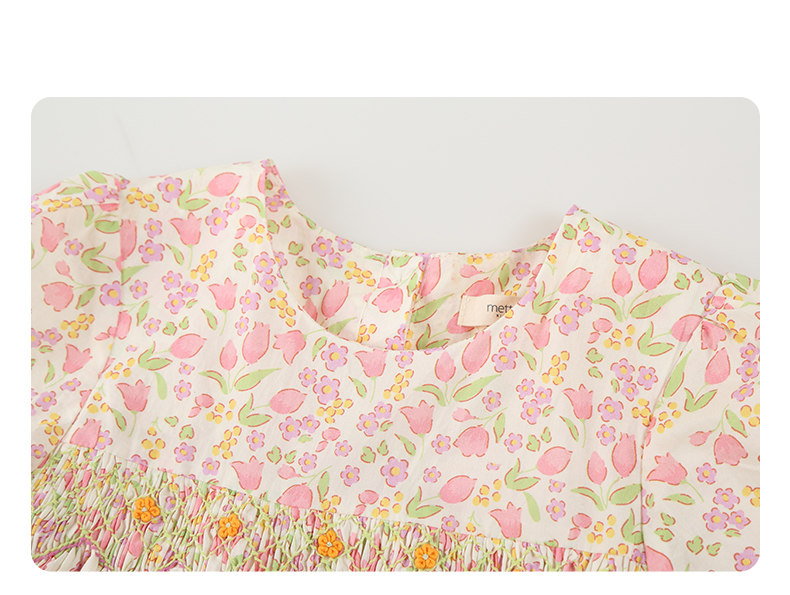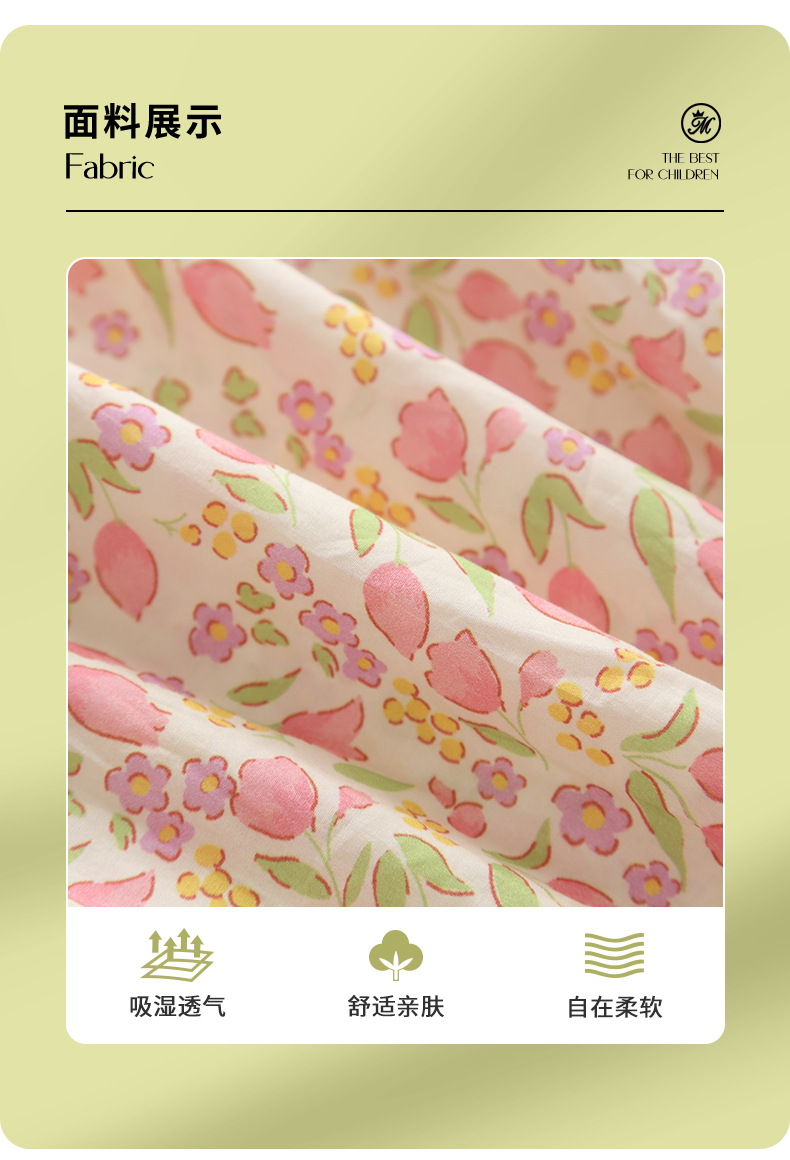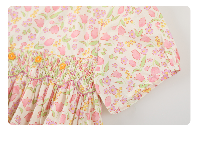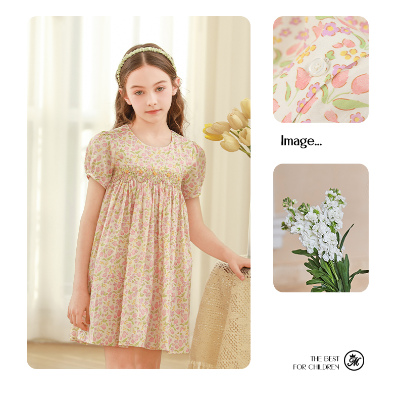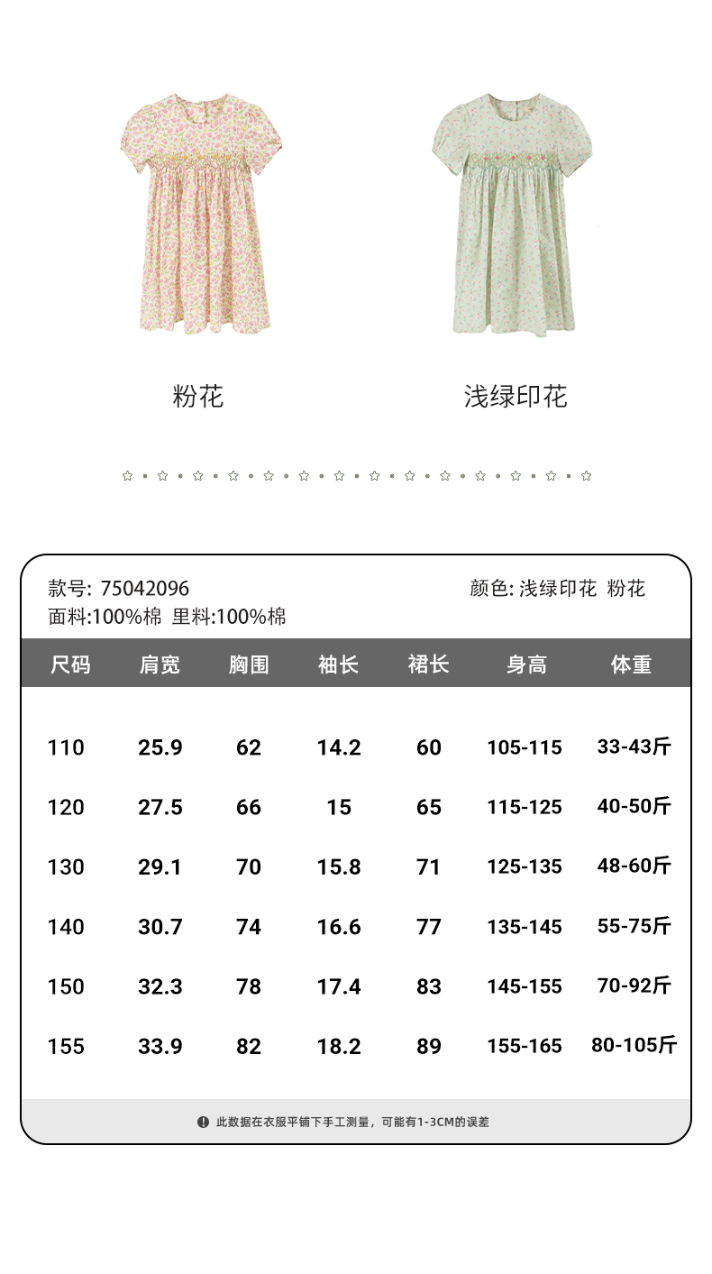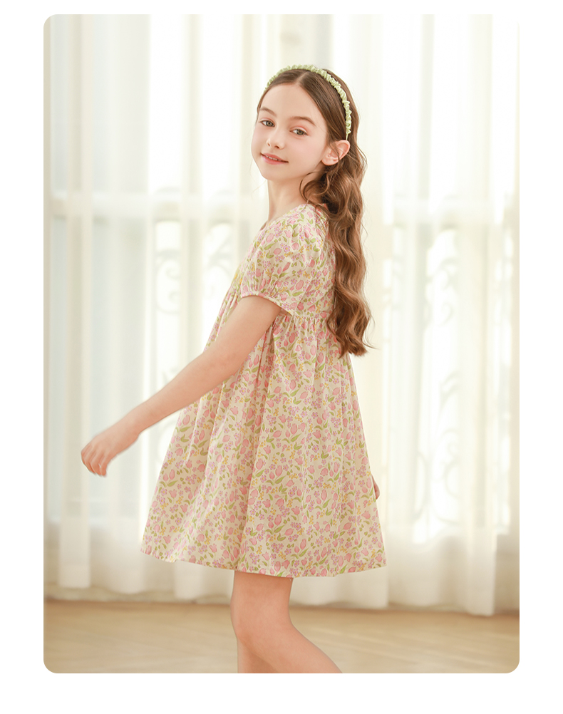 女童连衣裙2024夏季新款儿童绿色绣花纯棉裙子泡泡袖碎花公主裙