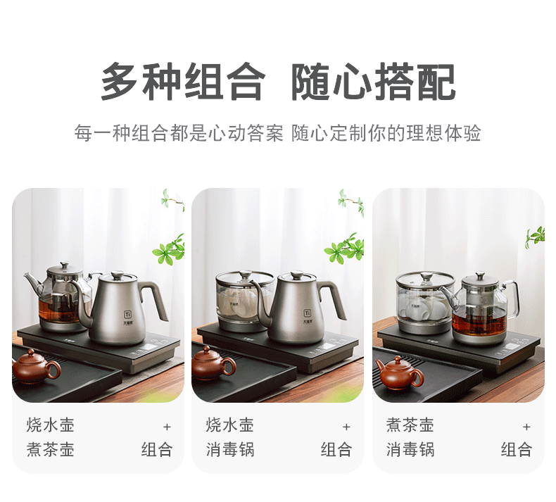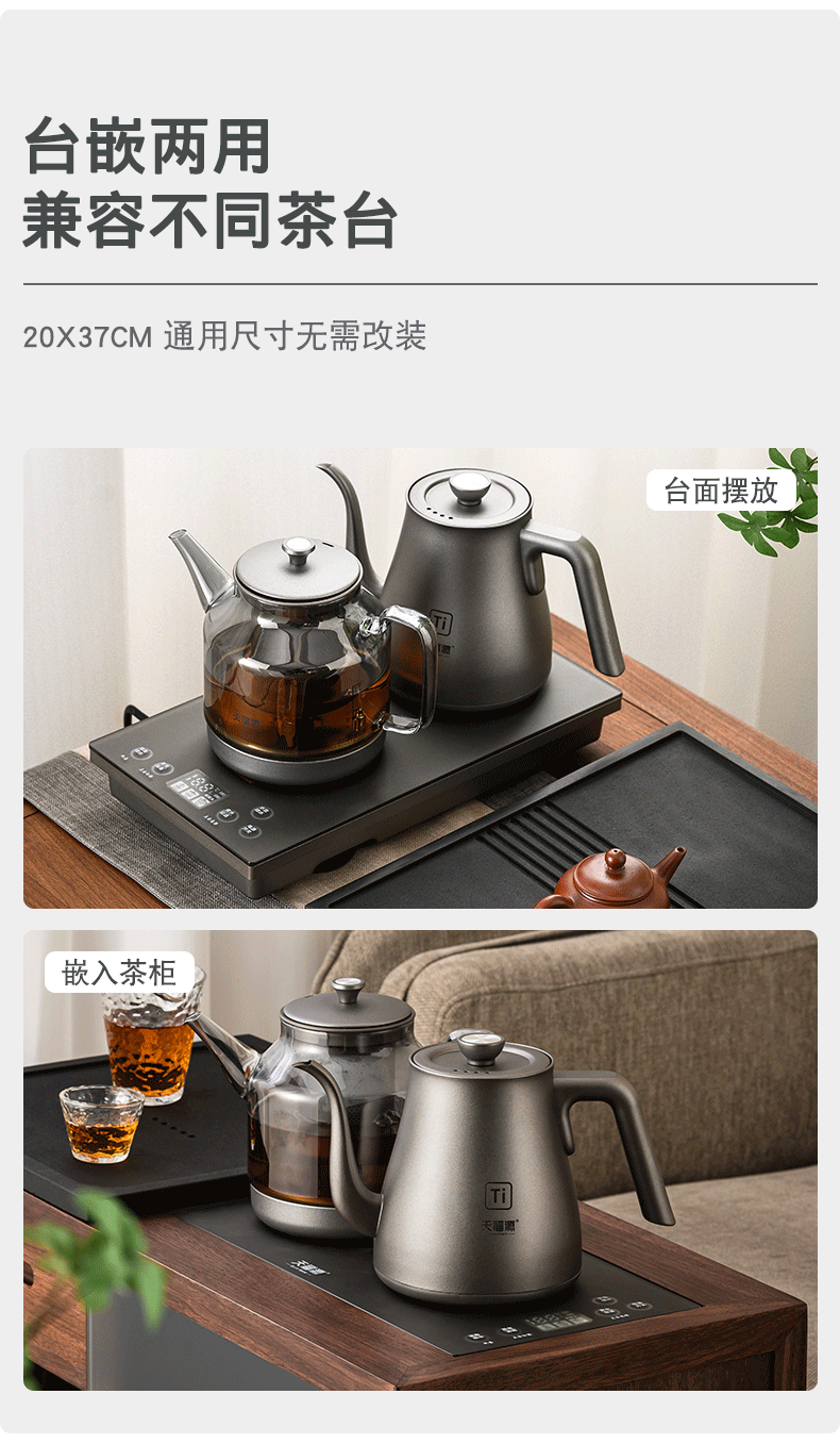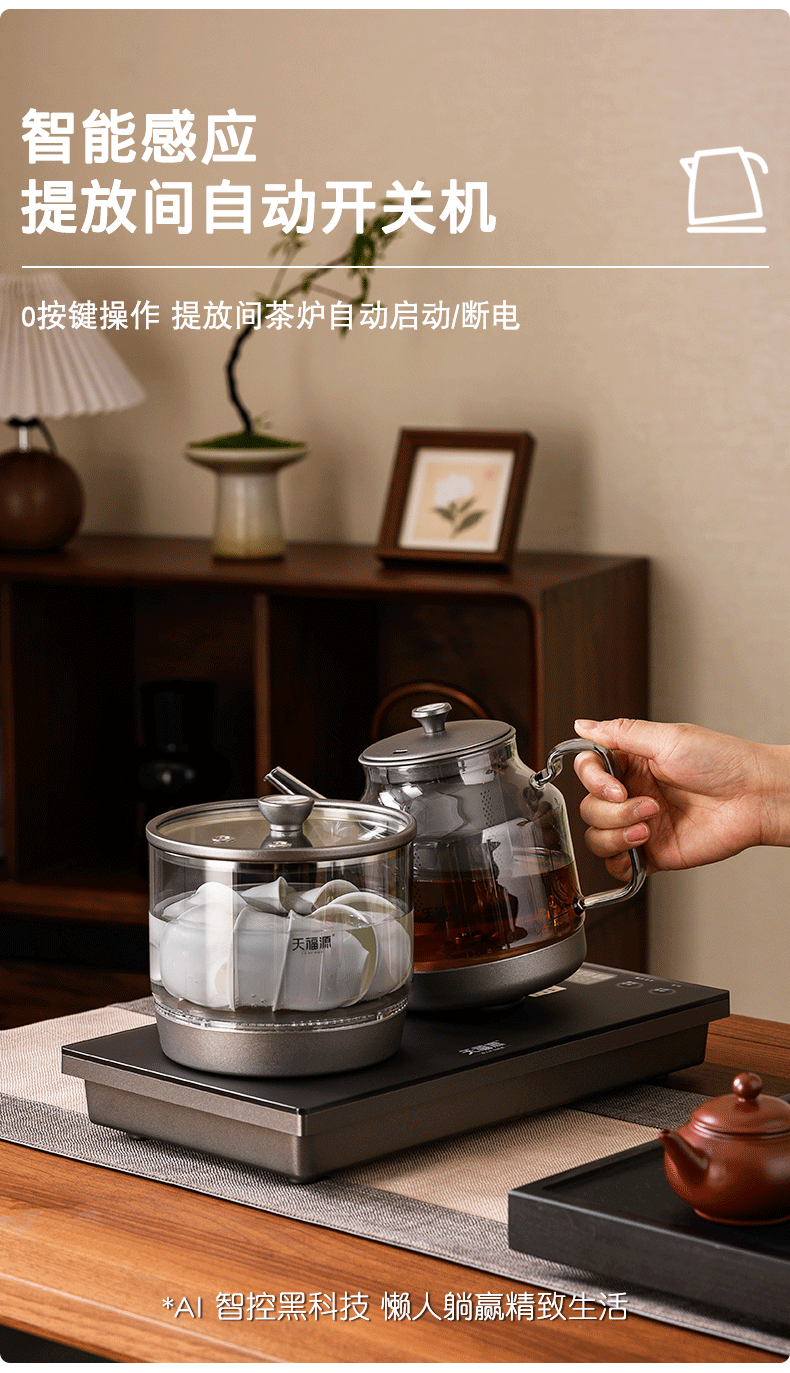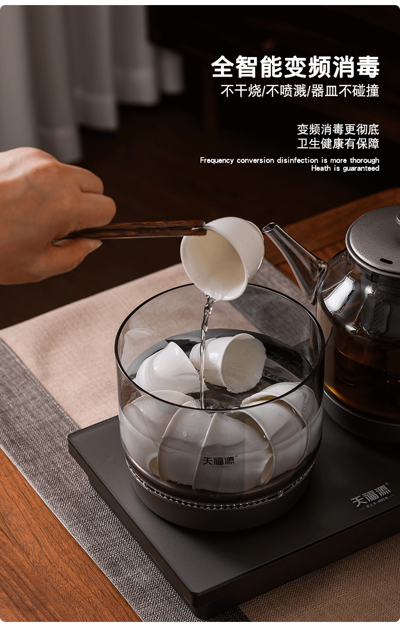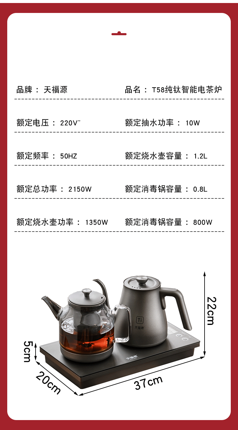 天福源/T58双壶款/T5单炉/钛晶纯钛烧水壶消毒锅双炉自动上水电热茶炉变频恒温煮茶器