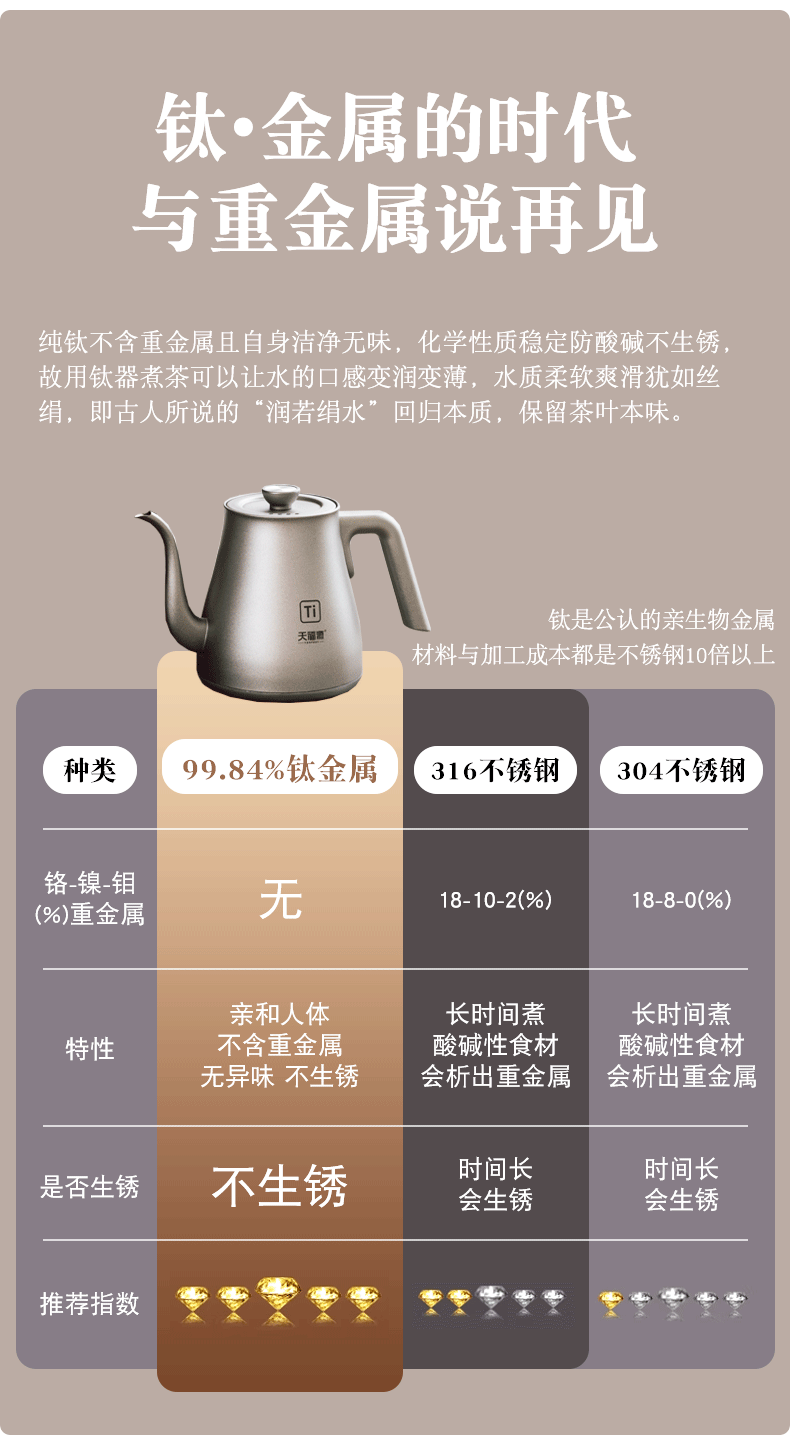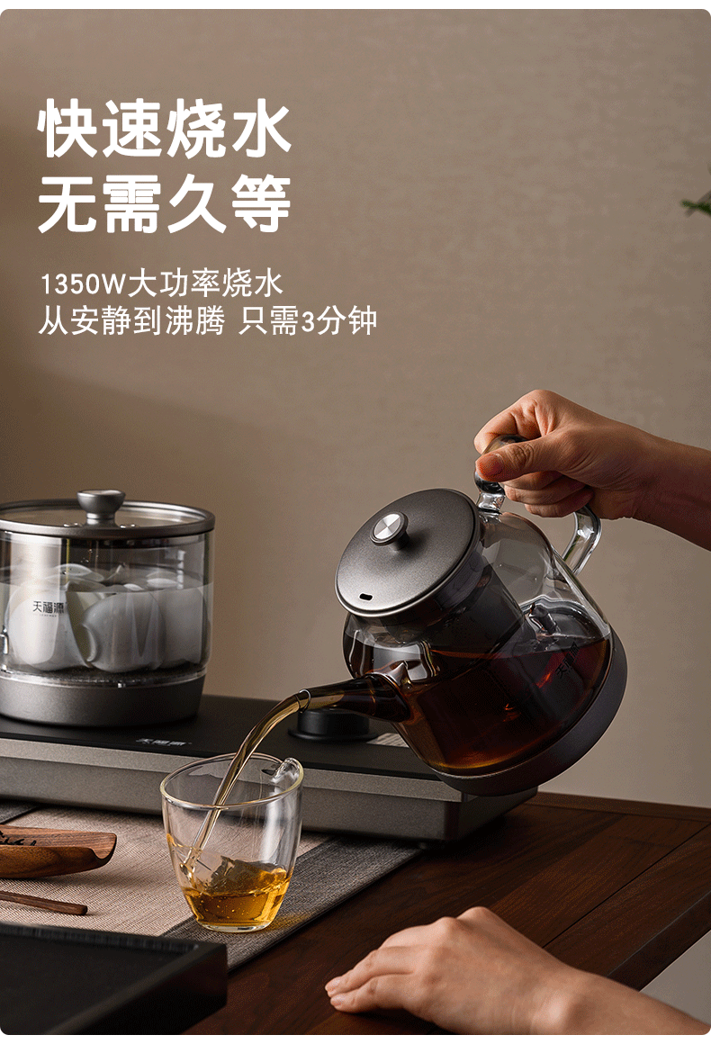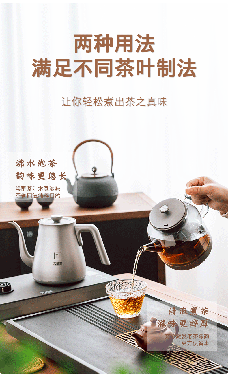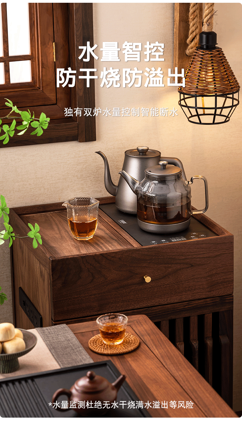 天福源/T58双壶款/T5单炉/钛晶纯钛烧水壶消毒锅双炉自动上水电热茶炉变频恒温煮茶器