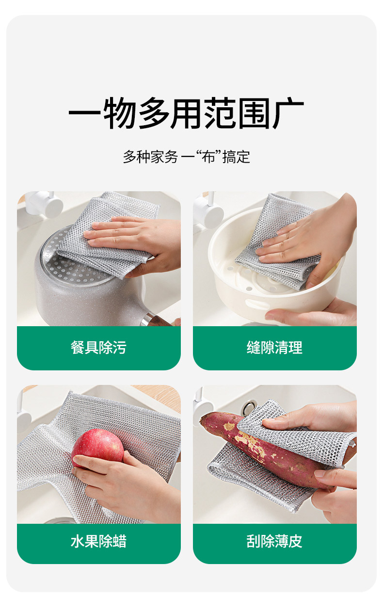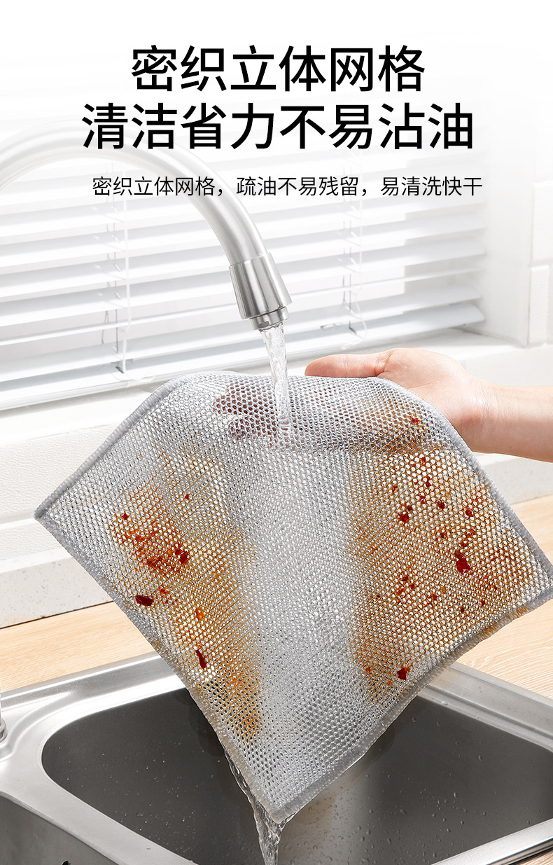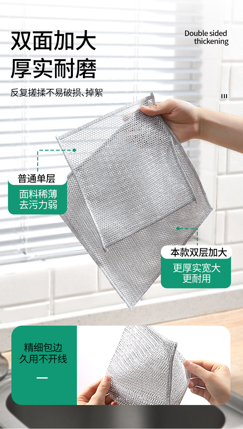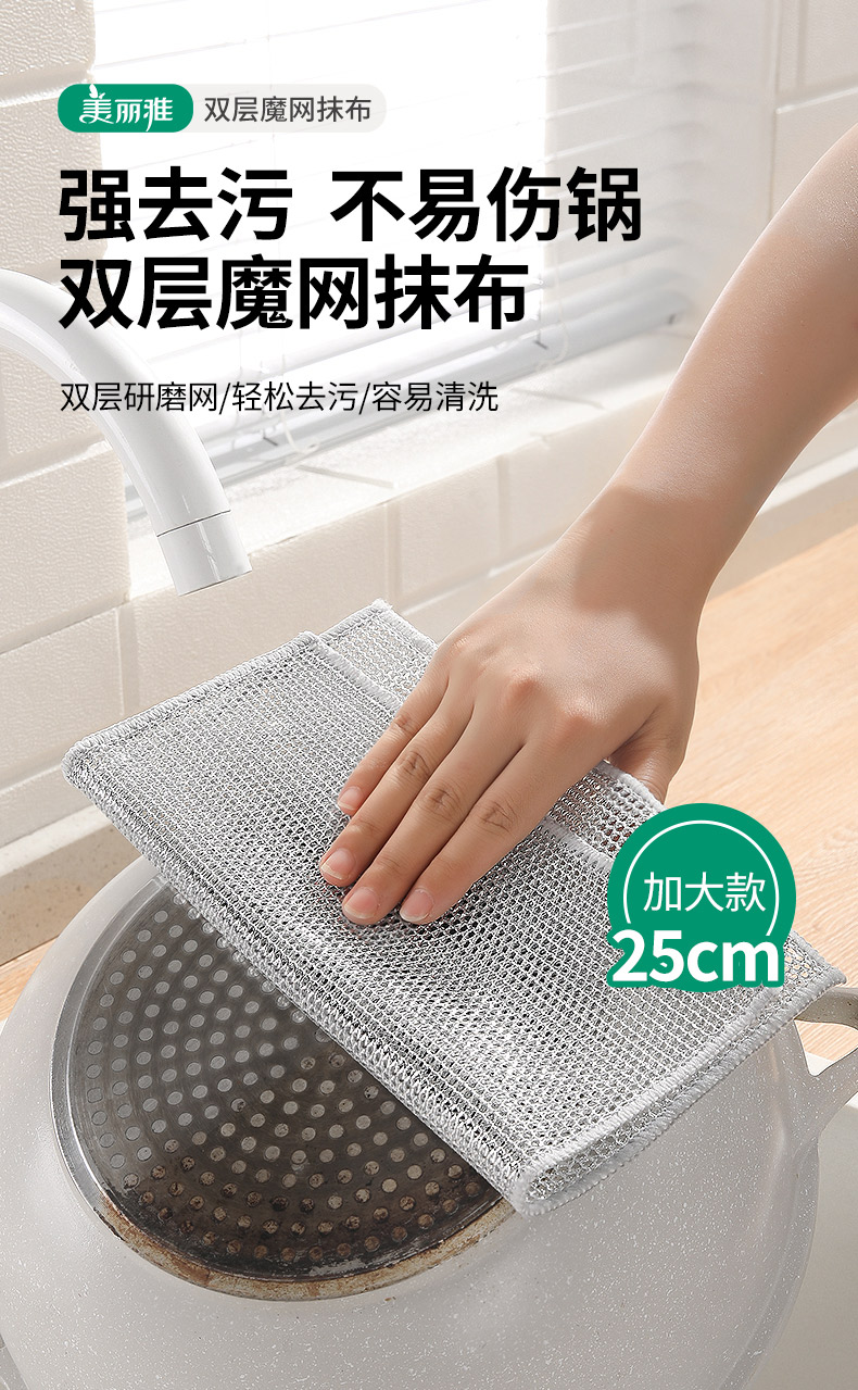 【批发】美丽雅双层加厚厨房银丝抹布刷锅强去污长25宽25 5片/包