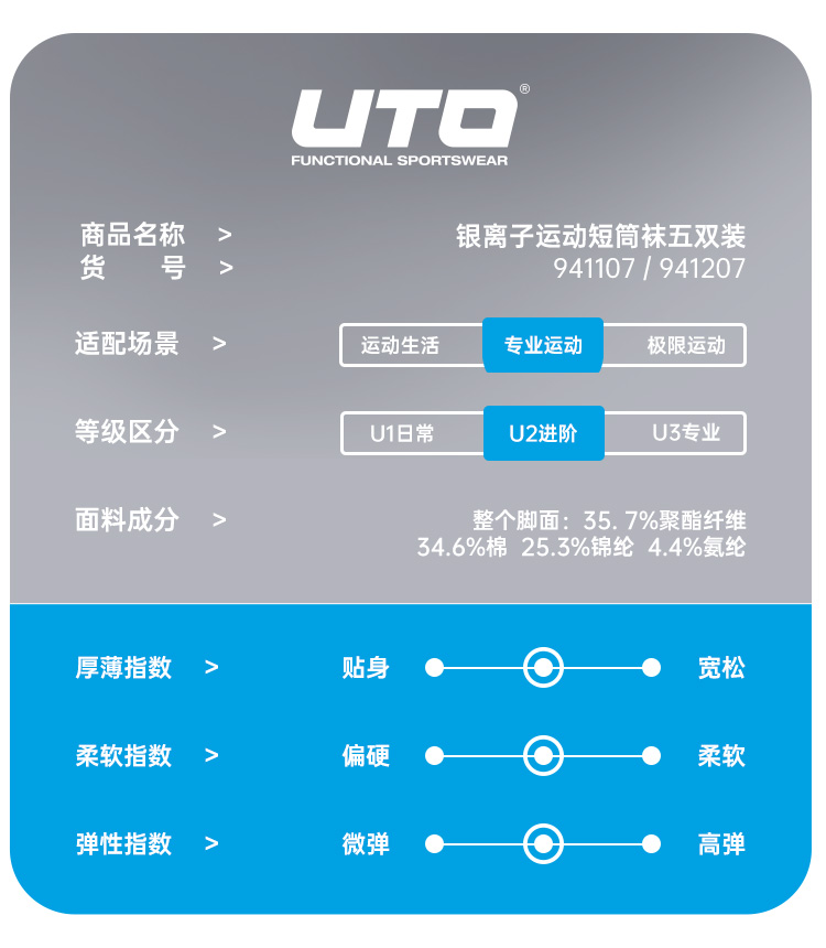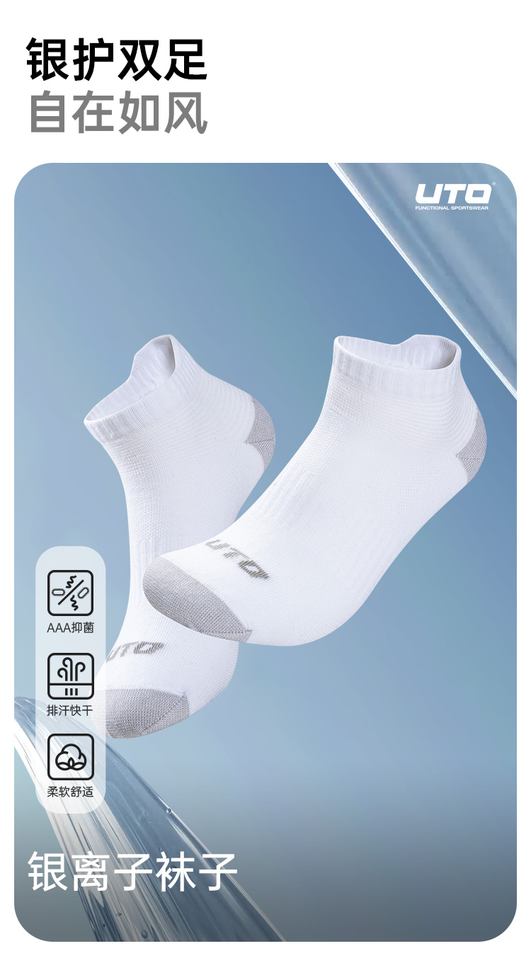 【49元/5双】UTO/悠途运动户外银离子短筒袜五双装春夏透气男女款吸汗跑步袜